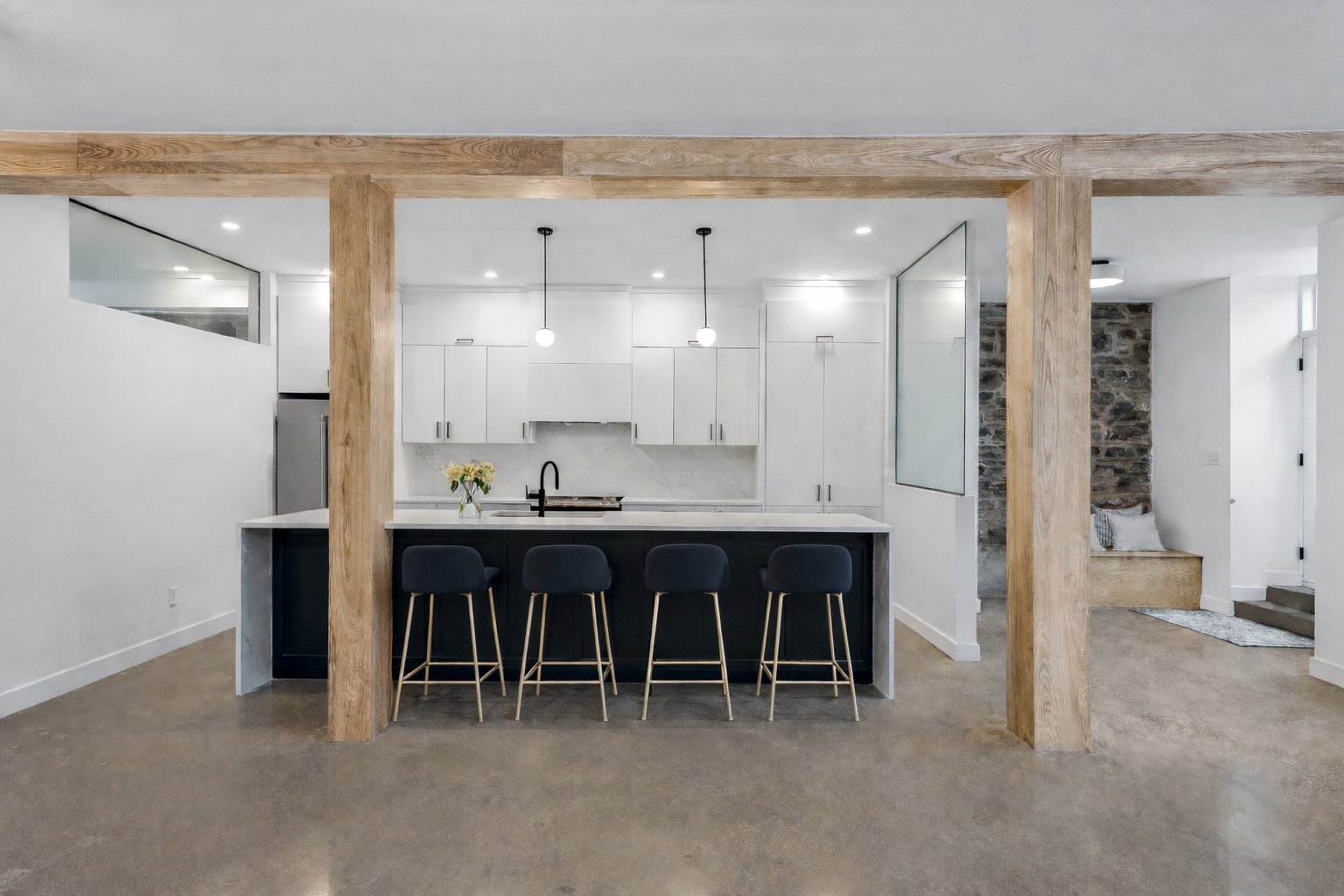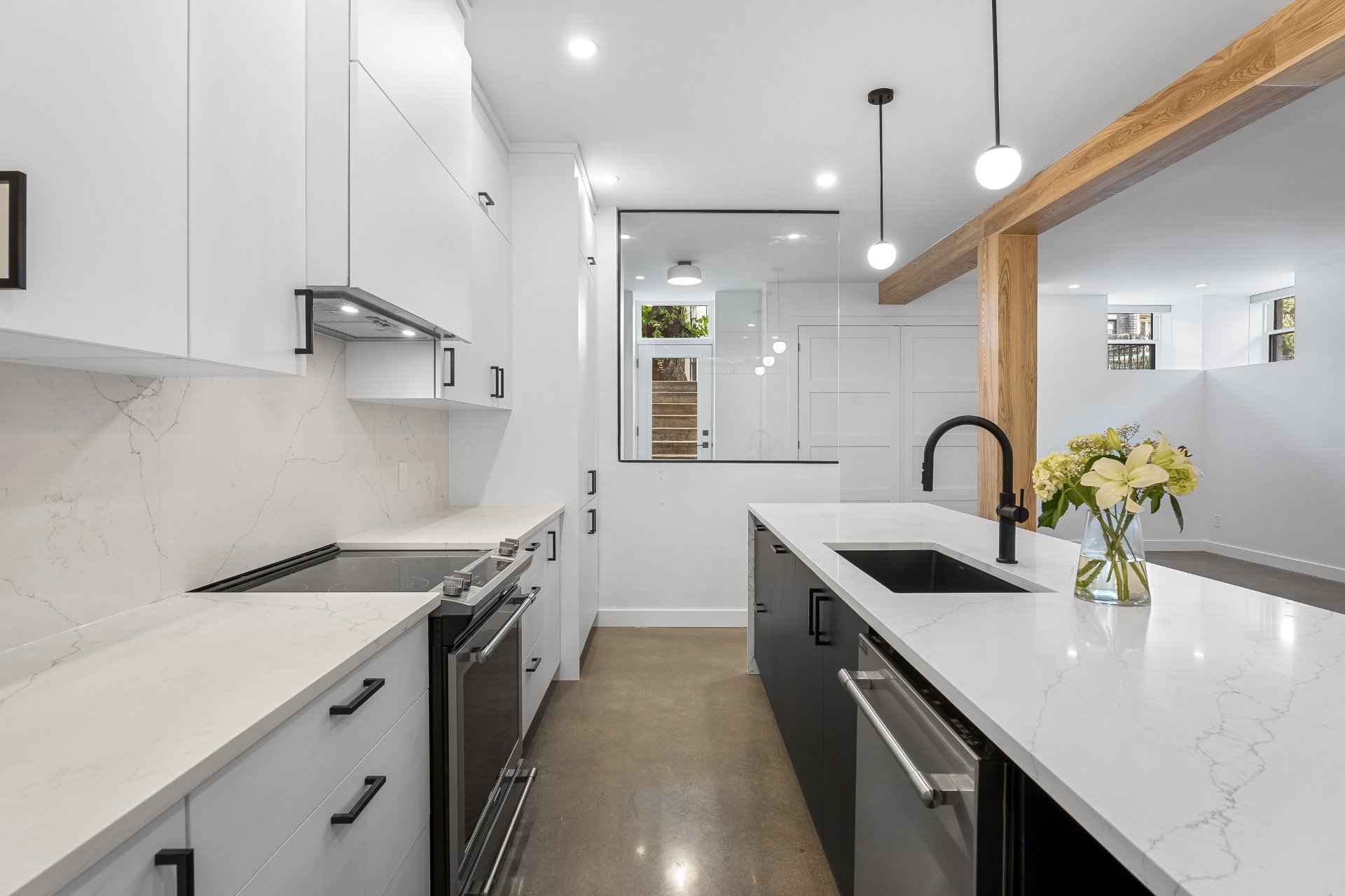 - Comptoirs et dosseret en quartz dans la cuisine