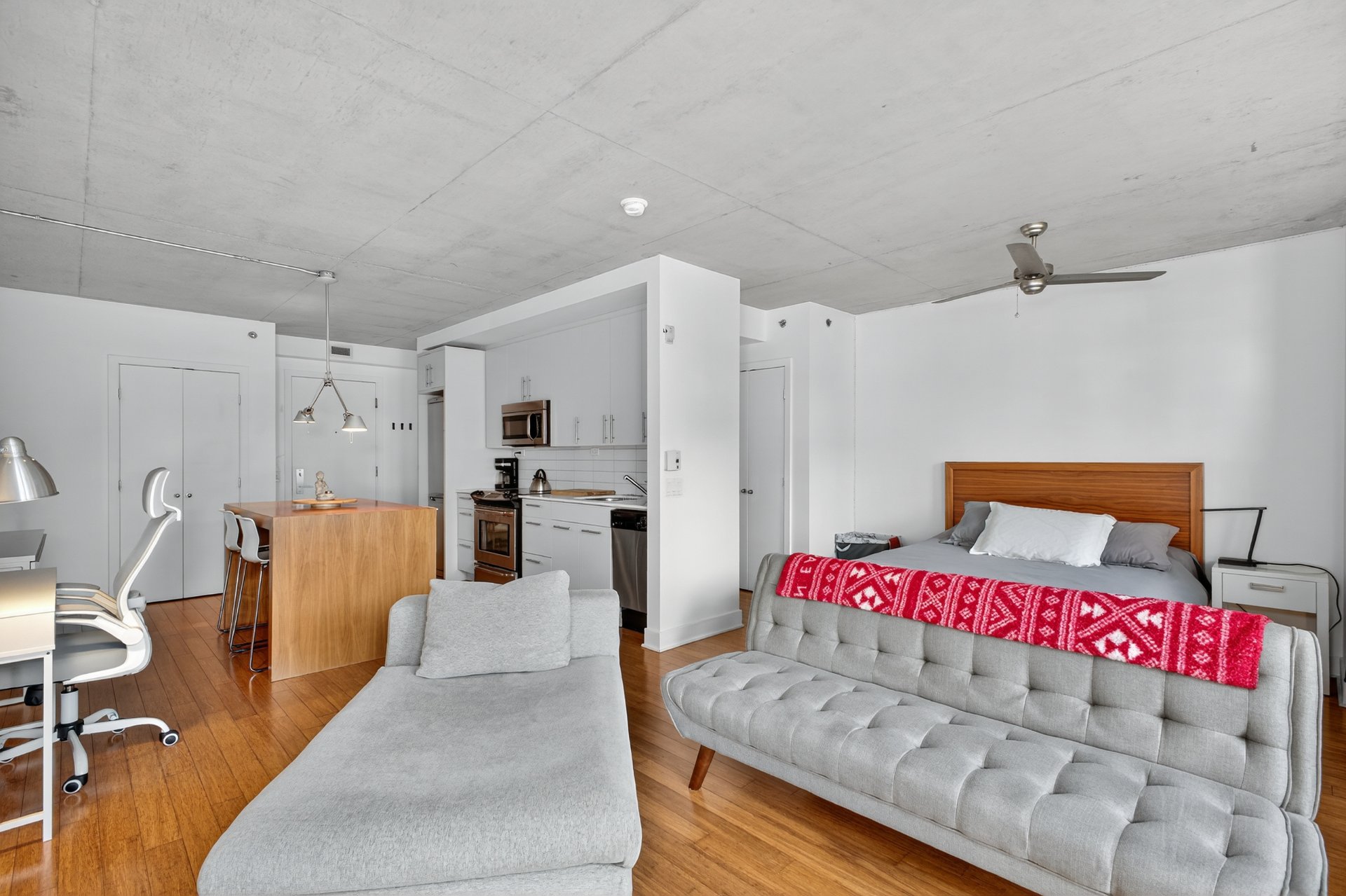 L'unité propose un concept à aire ouverte de style loft se