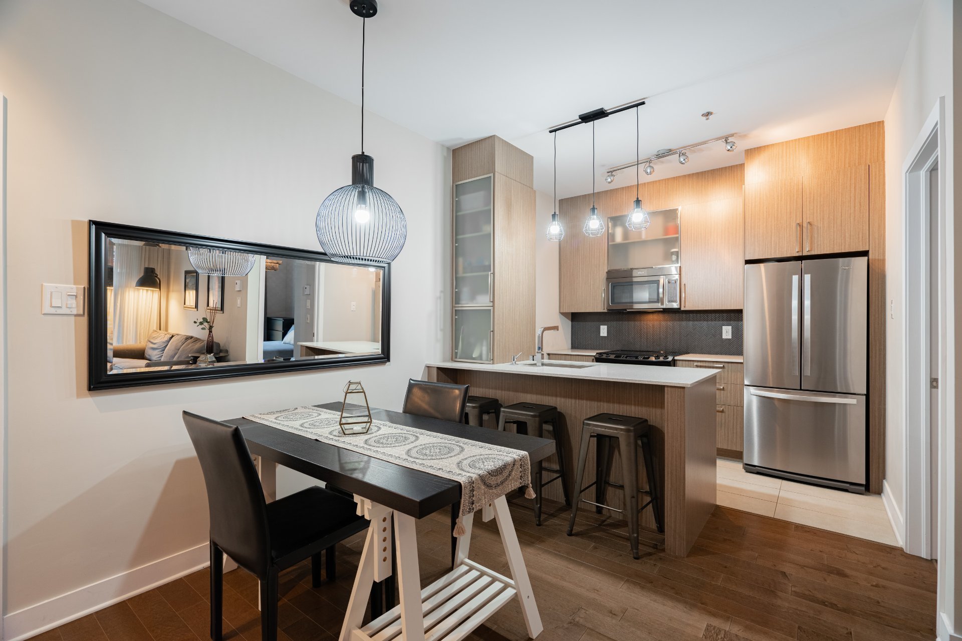 Bienvenue au projet UNI-T, au coeur de HOMA! Ce superbe condo, entretenu avec minutie, est un véritable clé en main. Situé au rez-de-chaussée et donnant sur une cour arrière entièrement aménagée, il offre une tranquillité des plus appréciables. L'unité comprend deux chambres, un garage, ainsi qu'un espace de vie lumineux à aire ouverte. La cuisine moderne est dotée d'un grand îlot en quartz, parfait pour recevoir. Une vaste terrasse privée complète l'ensemble et invite à savourer pleinement les journées d'été. Emplacement de choix dans un quartier dynamique et en pleine effervescence.