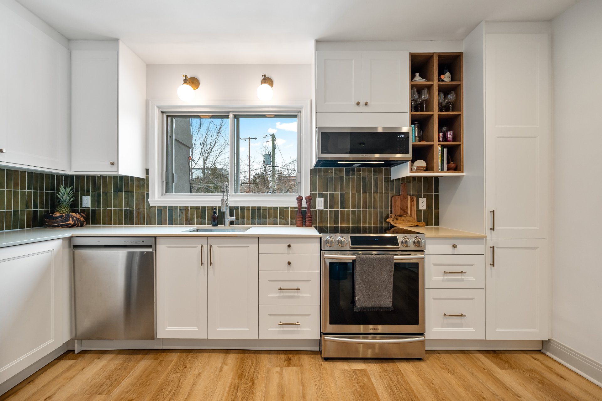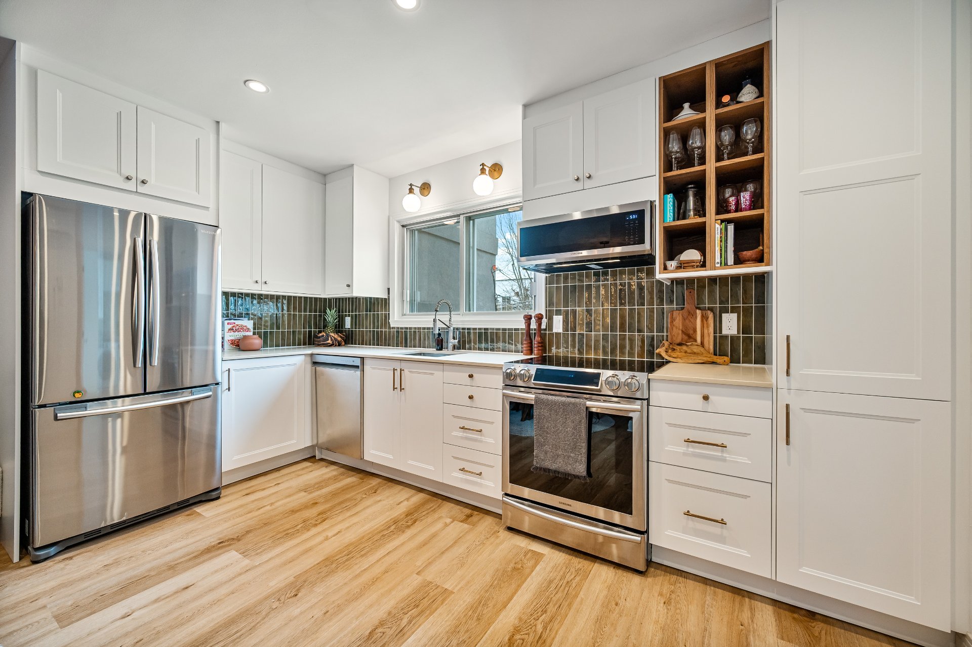 kitchen, with the kitchen providing ample storage for added
