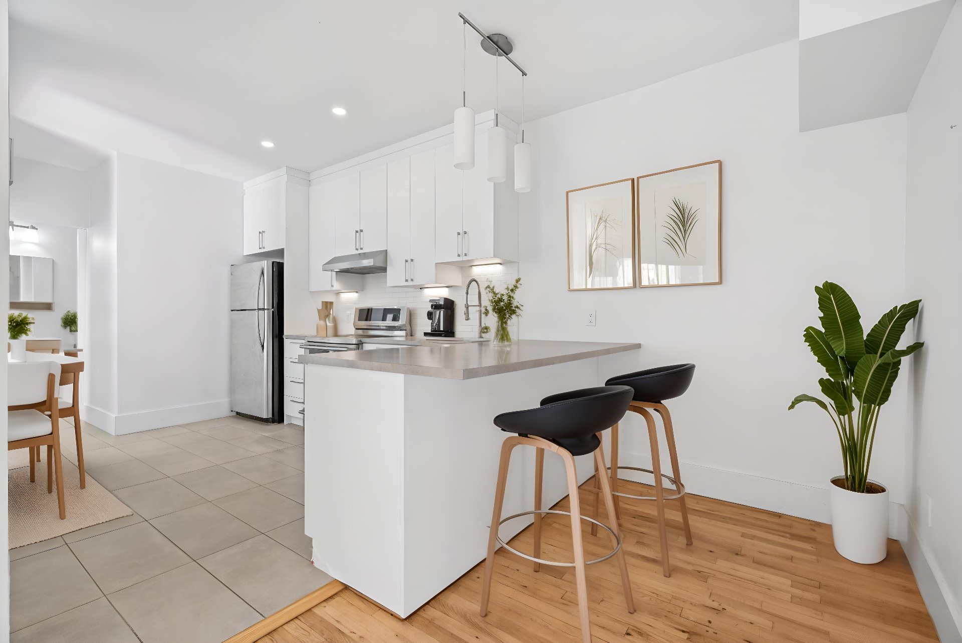 Beautiful 4-room apartment fully renovated, located in Mercier--Hochelaga-Maisonneuve. Features one closed bedroom, full bathroom, and modern open-concept kitchen with living area. Washer/dryer included. Close to Pie-IX & Joliette metro, Olympic Park, Botanical Garden, Maisonneuve Park, local Cégeps and Promenades Masson. Perfect for young professional, couple or student.
