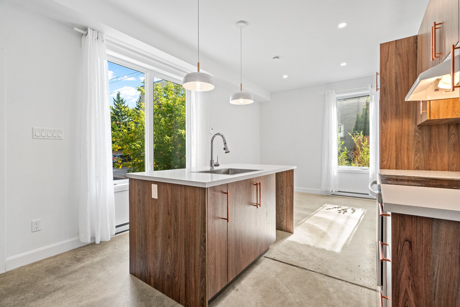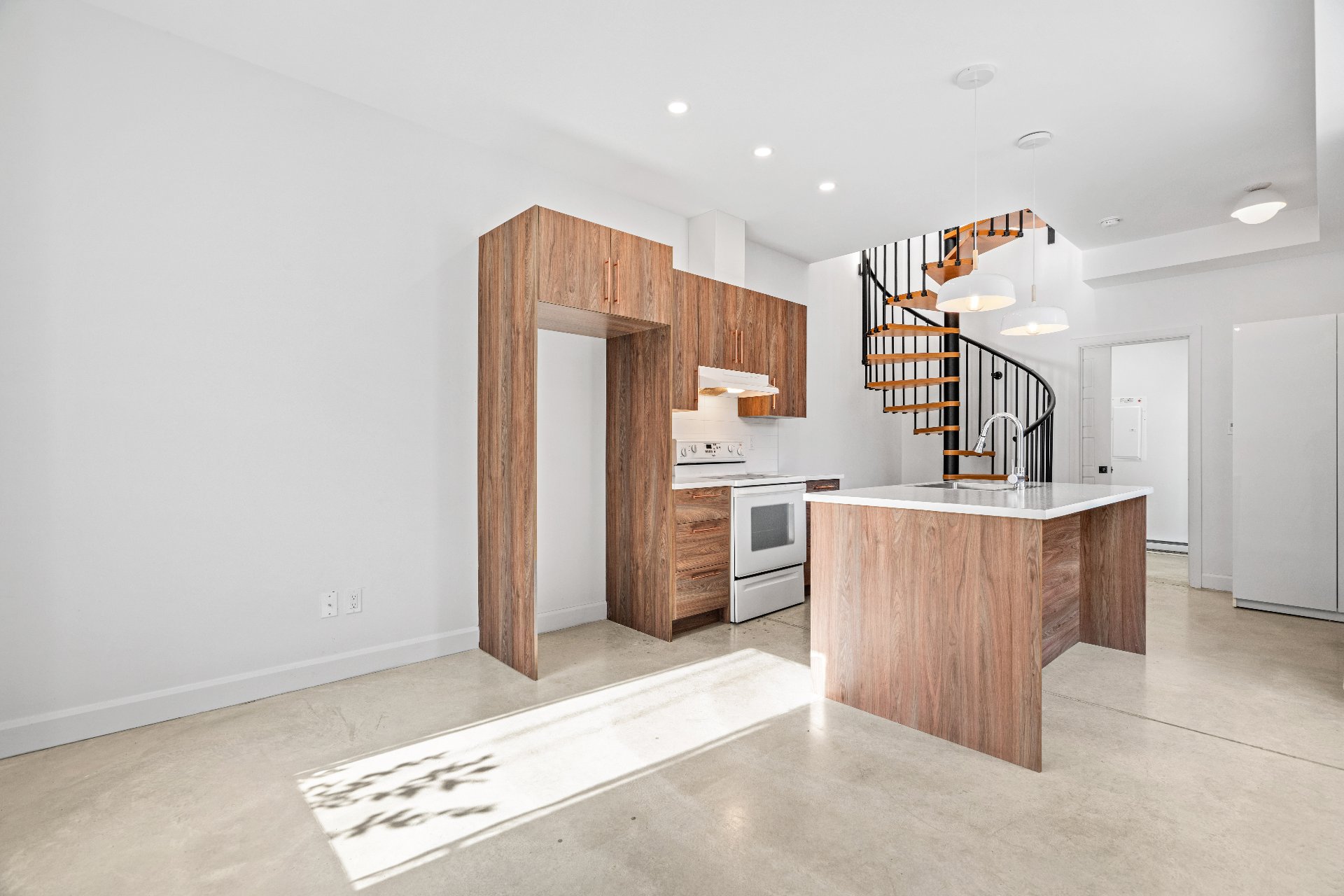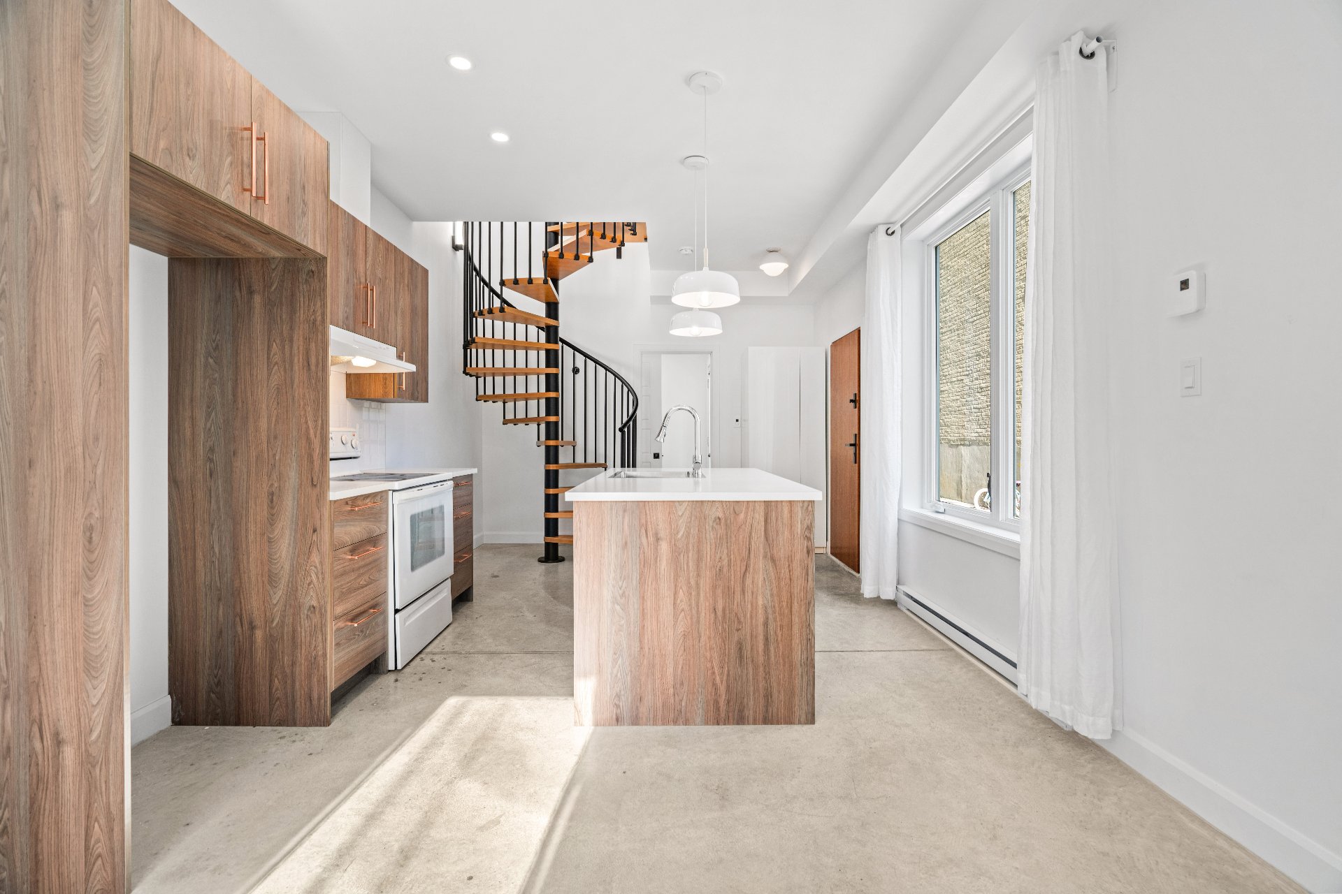 Loft rénové sur 2 niveaux avec chambre fermée à l'étage et terrasse privée. Aire ouverte moderne avec cuisine et îlot central, escalier en colimaçon design, salle de bain complète et installation laveuse/sécheuse. Entrée privée à l'arrière et 1 stationnement inclus. Emplacement idéal près du Parc Olympique, Jardin botanique, Cégeps, hôpitaux et Promenades Masson. À distance de marche du métro Joliette et Pie-IX. Un logement unique, moderne et lumineux -- tranquillité d'esprit garantie !