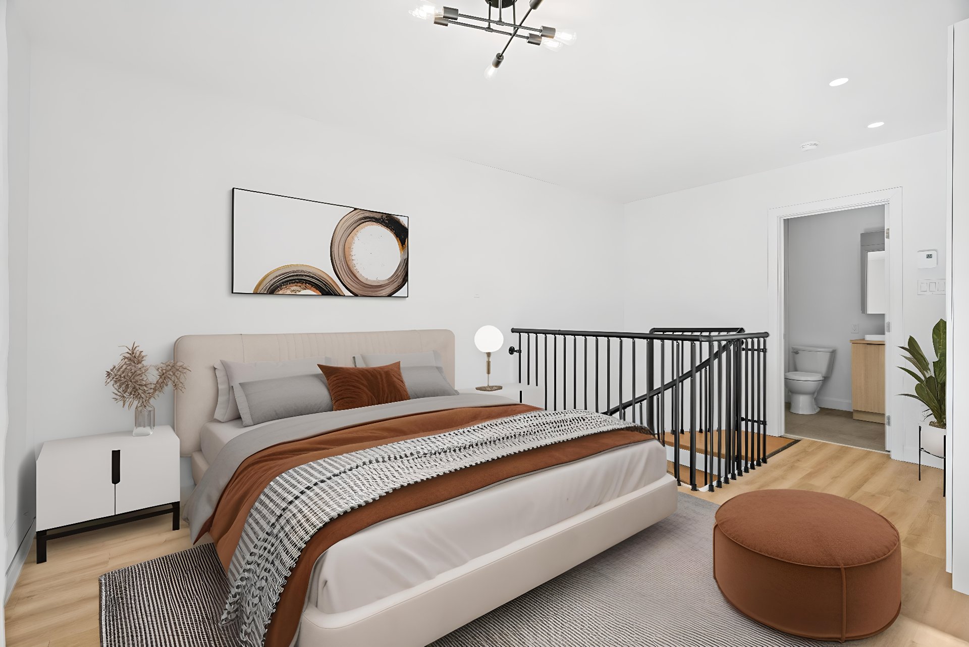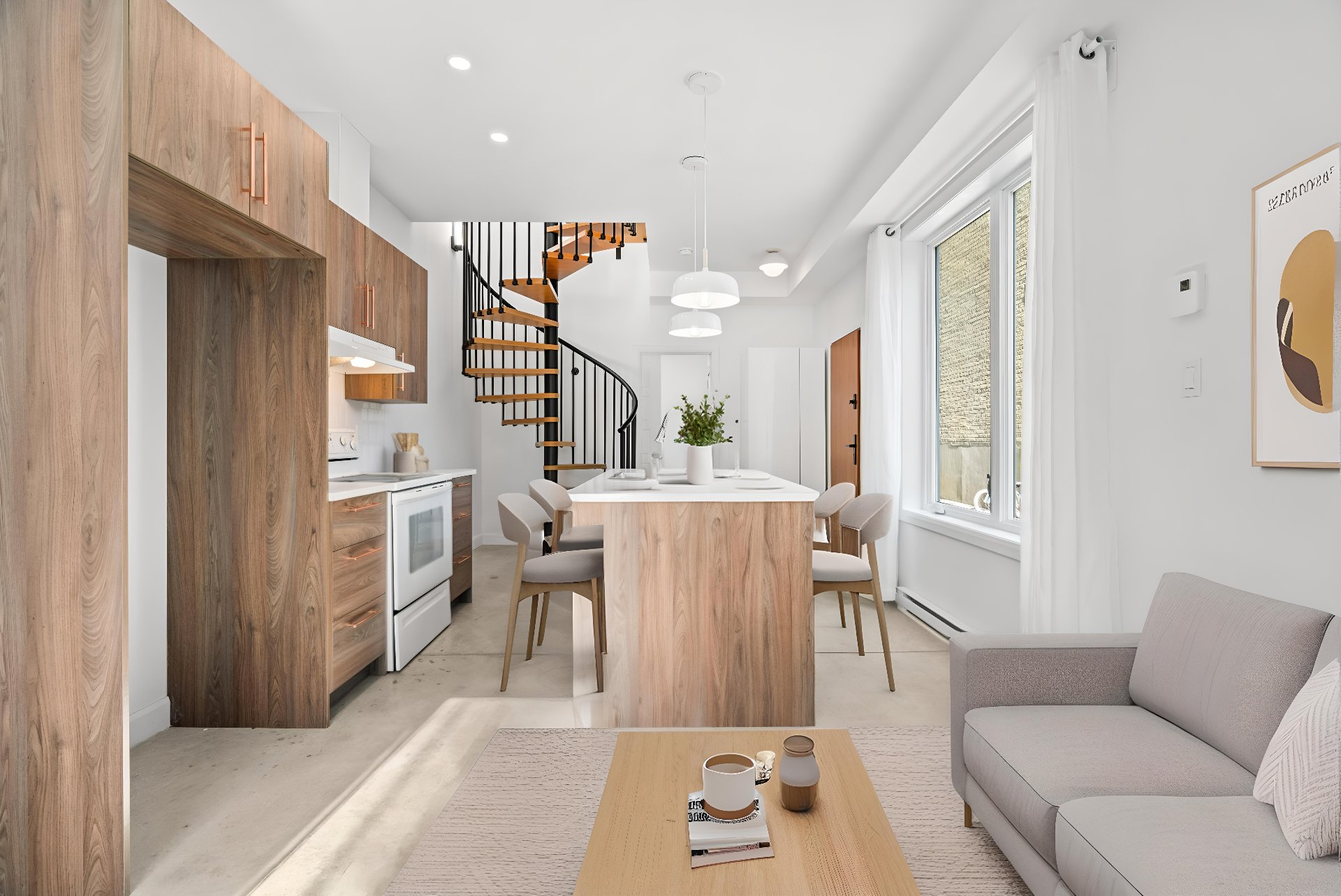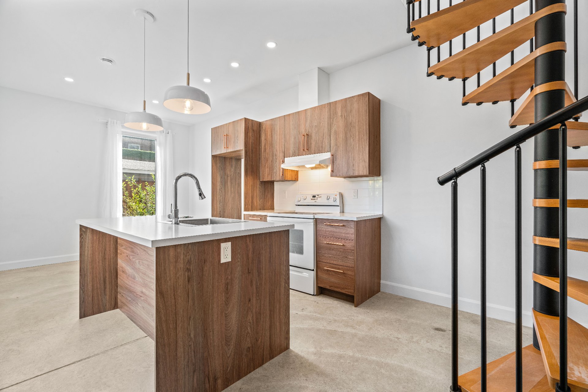 Loft rénové sur 2 niveaux avec chambre fermée à l'étage et terrasse privée. Aire ouverte moderne avec cuisine et îlot central, escalier en colimaçon design, salle de bain complète et installation laveuse/sécheuse. Entrée privée à l'arrière et 1 stationnement inclus. Emplacement idéal près du Parc Olympique, Jardin botanique, Cégeps, hôpitaux et Promenades Masson. À distance de marche du métro Joliette et Pie-IX. Un logement unique, moderne et lumineux -- tranquillité d'esprit garantie !