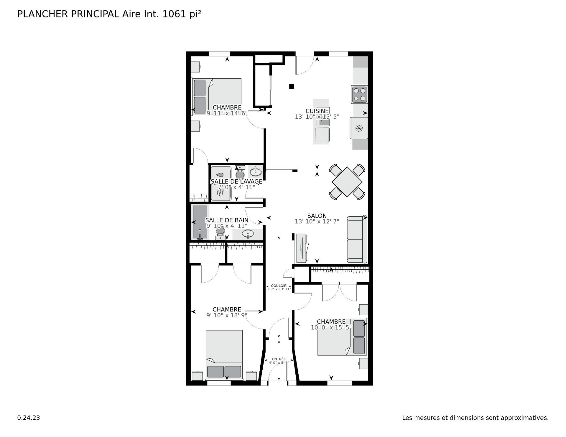 *Inclusions: four, frigo, lave-vaisselle. Une unité murale