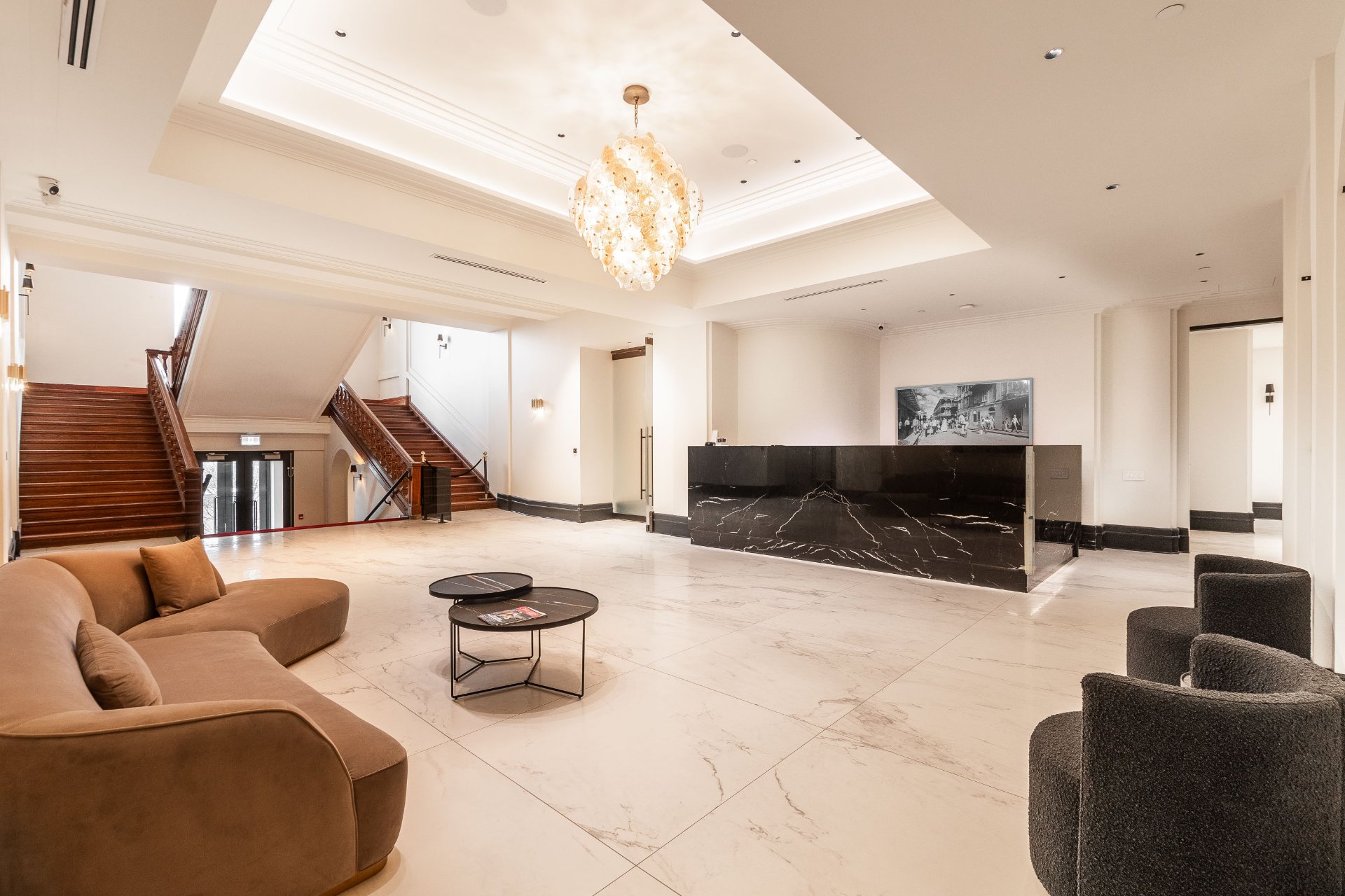 Prestigious 1420 Mont-Royal -- elegant 1-bedroom + office with impressive ceiling height, refined finishes and bright open living spaces. Includes two indoor side-by-side parking spaces and a storage locker. Access to outstanding amenities and ideal proximity to University of Montreal, Ste-Justine Hospital, Vincent D'Indy Music School, the REM, metro, parks and boutiques.