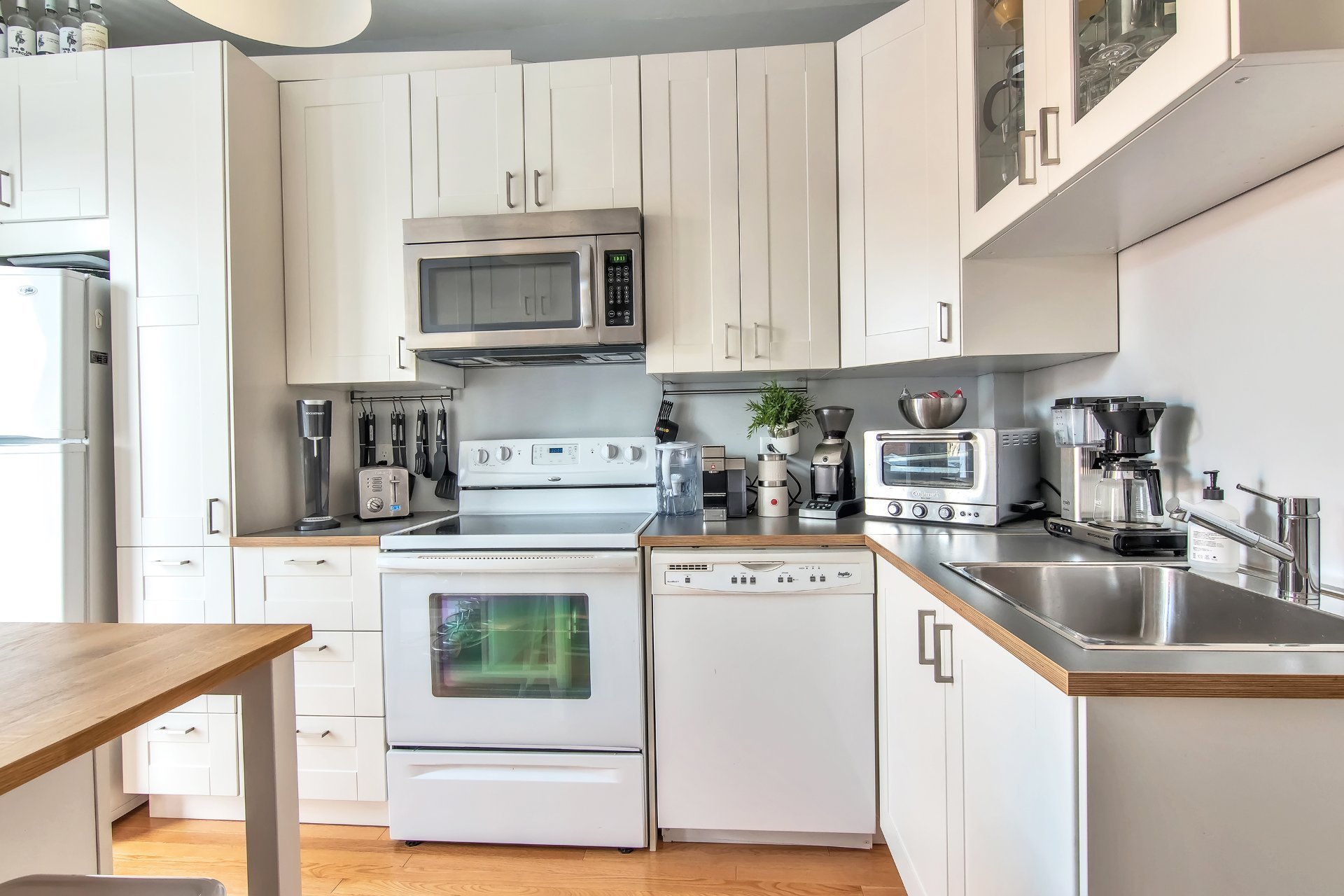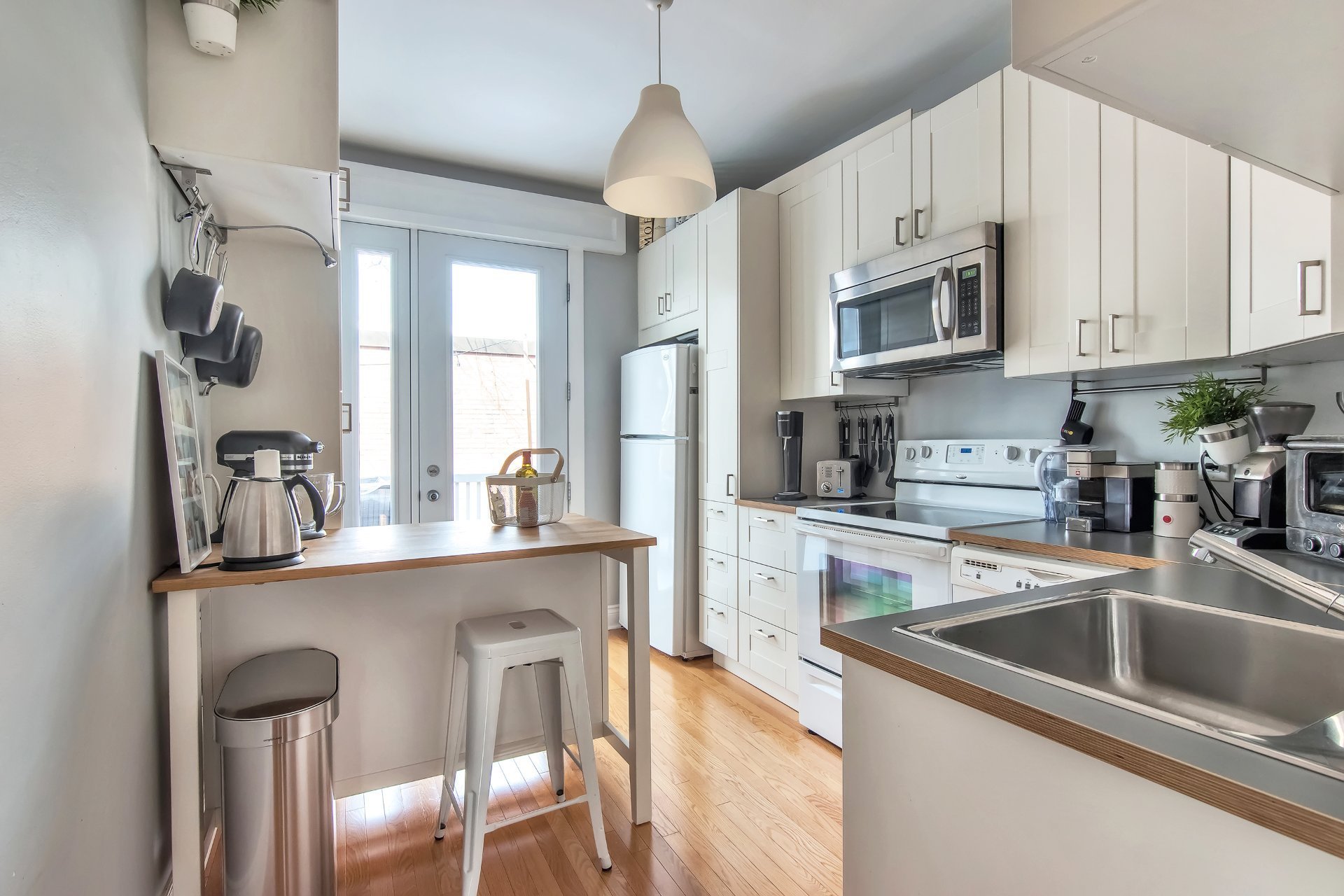 Réfrigérateur, cuisinière, micro-onde encastré, lave-vaisselle, laveuse, sécheuse, luminaires de nature permanente, 1 garage, rangement au sous-sol