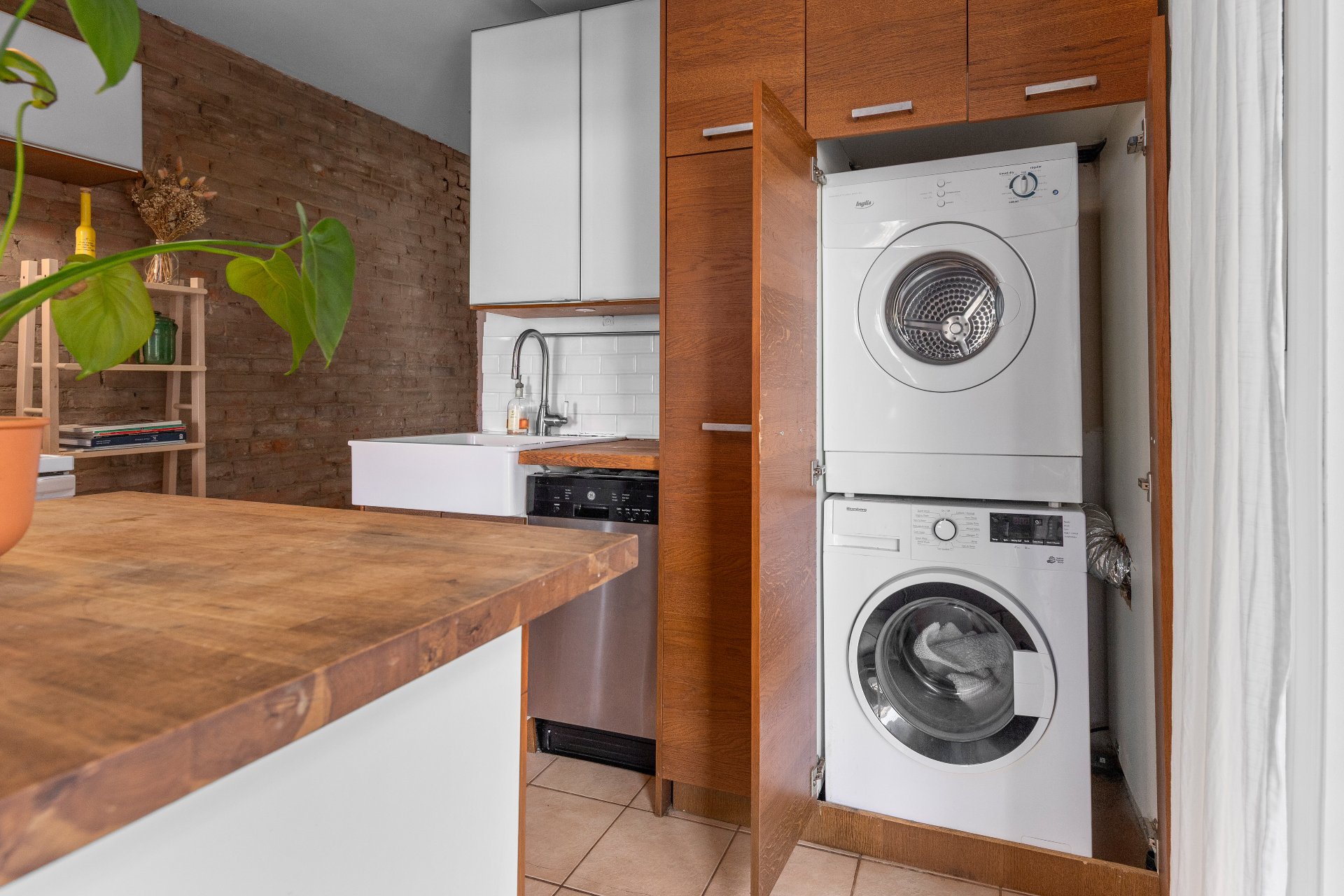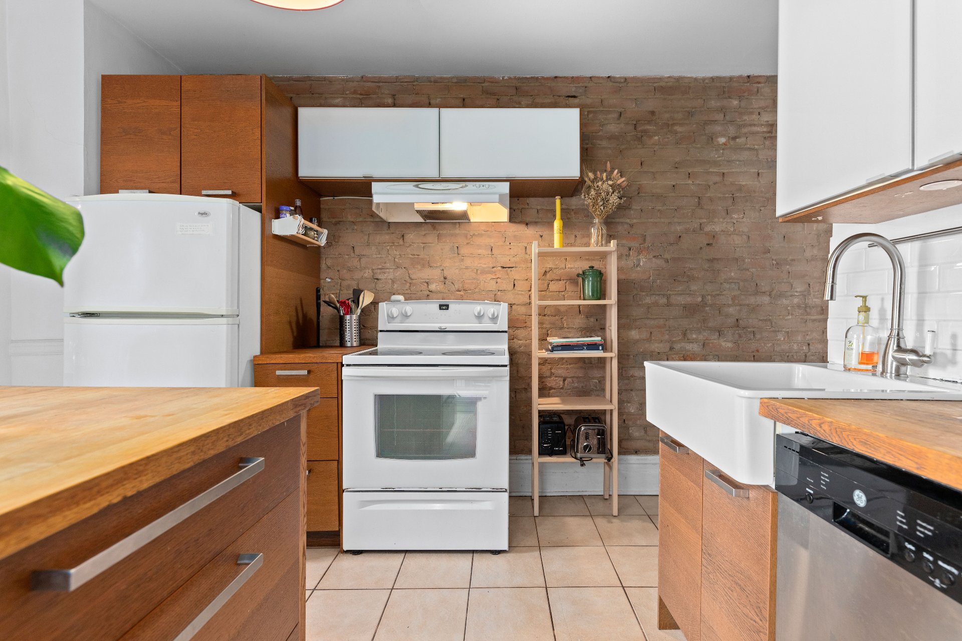 Cuisinière, réfrigérateur, lave-vaisselle, laveuse, sécheuse (défectueuse), luminaires, stores, rideaux, tringles et PAXS dans les chambres.