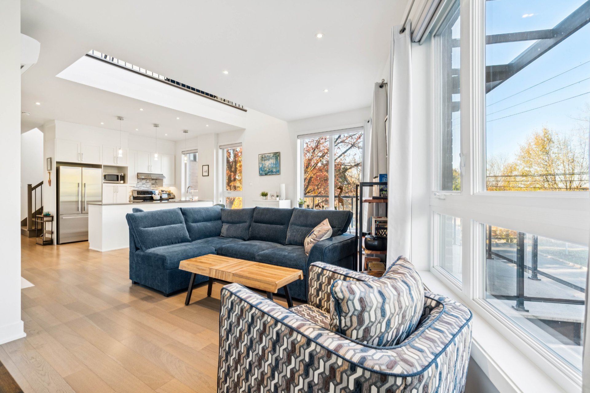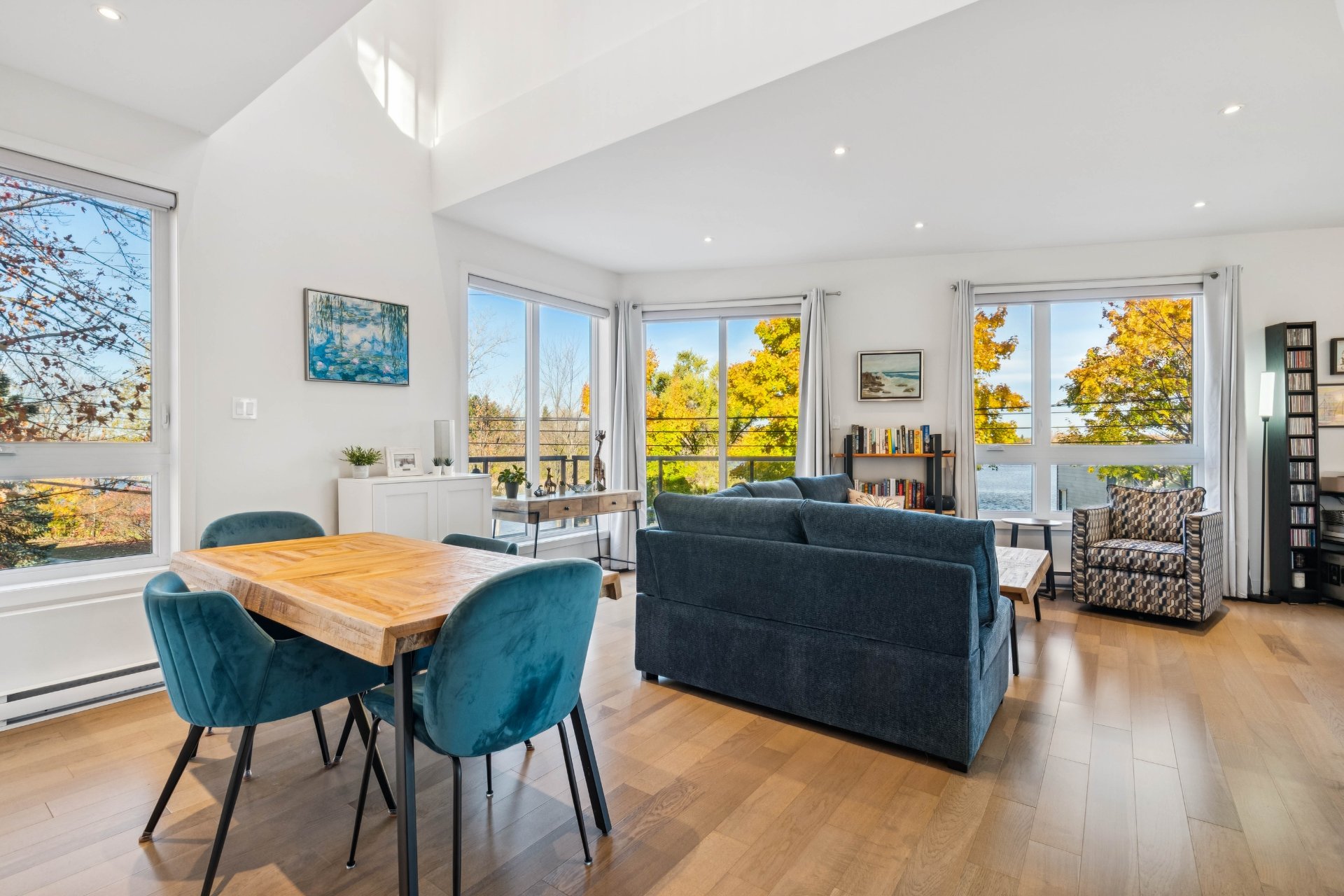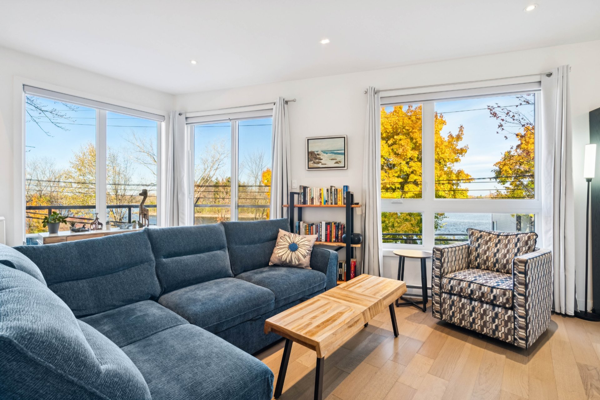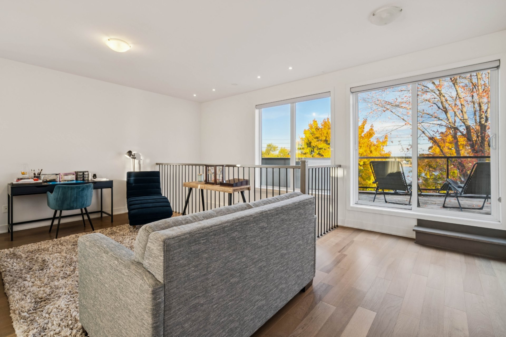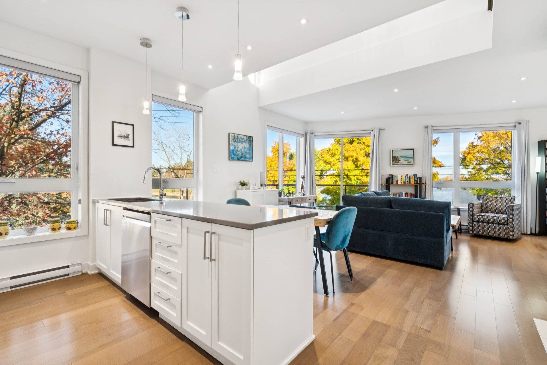 Magnifique Penthouse sur 2 Étages proche du REM! Construction 2017 au dernier étage en coin, orientation Ouest, vue spectaculaire sur la Rivière des Prairies. Conditions impeccables, matériaux de haute qualité, 2 chambres, 1 bureau, 2 salles de bain, 2 terrasses privées ainsi qu'un balcon en coin. 1,250 pieds carrés bruts total. Comptoirs en Quartz, 2 thermopompes. Accès rapide aux transport en commun et au train de banlieue. Proximités commerces (épiceries, pharmacies). Juste en face, la promenade du parc Ménard le long de la rivière, 1 garage intérieur est inclus. Vivez le bord de l'eau, une opportunité paisible et verdoyante à saisir!