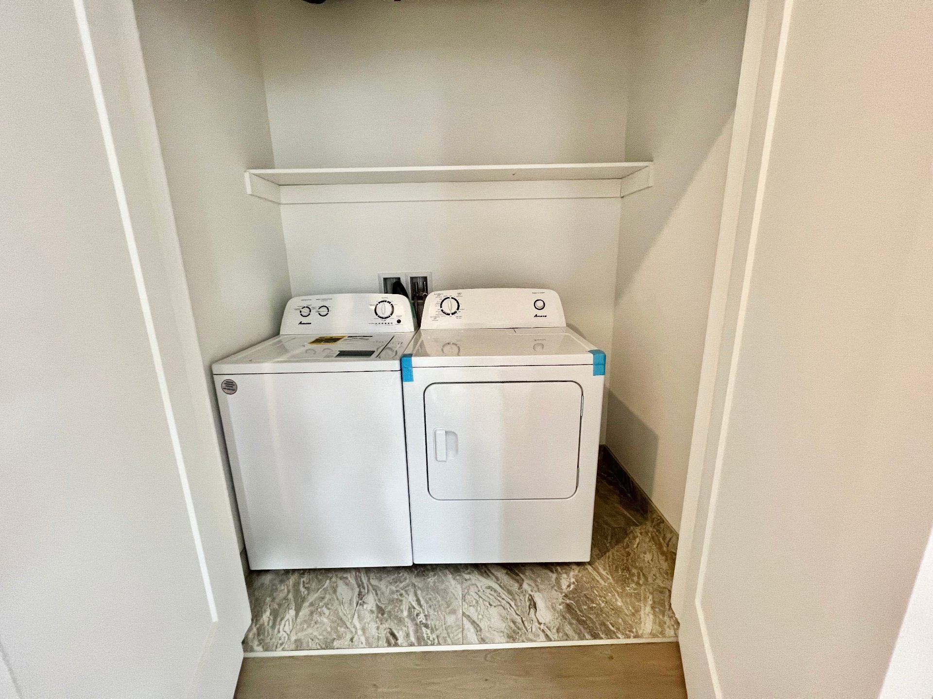 Réfrigérateur, cuisinière, lave-vaisselle, laveuse et sécheuse. Eau chaude.