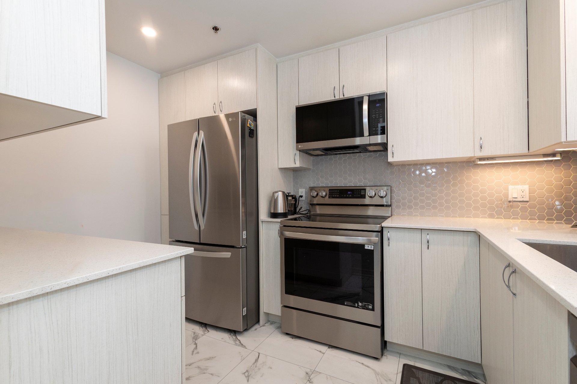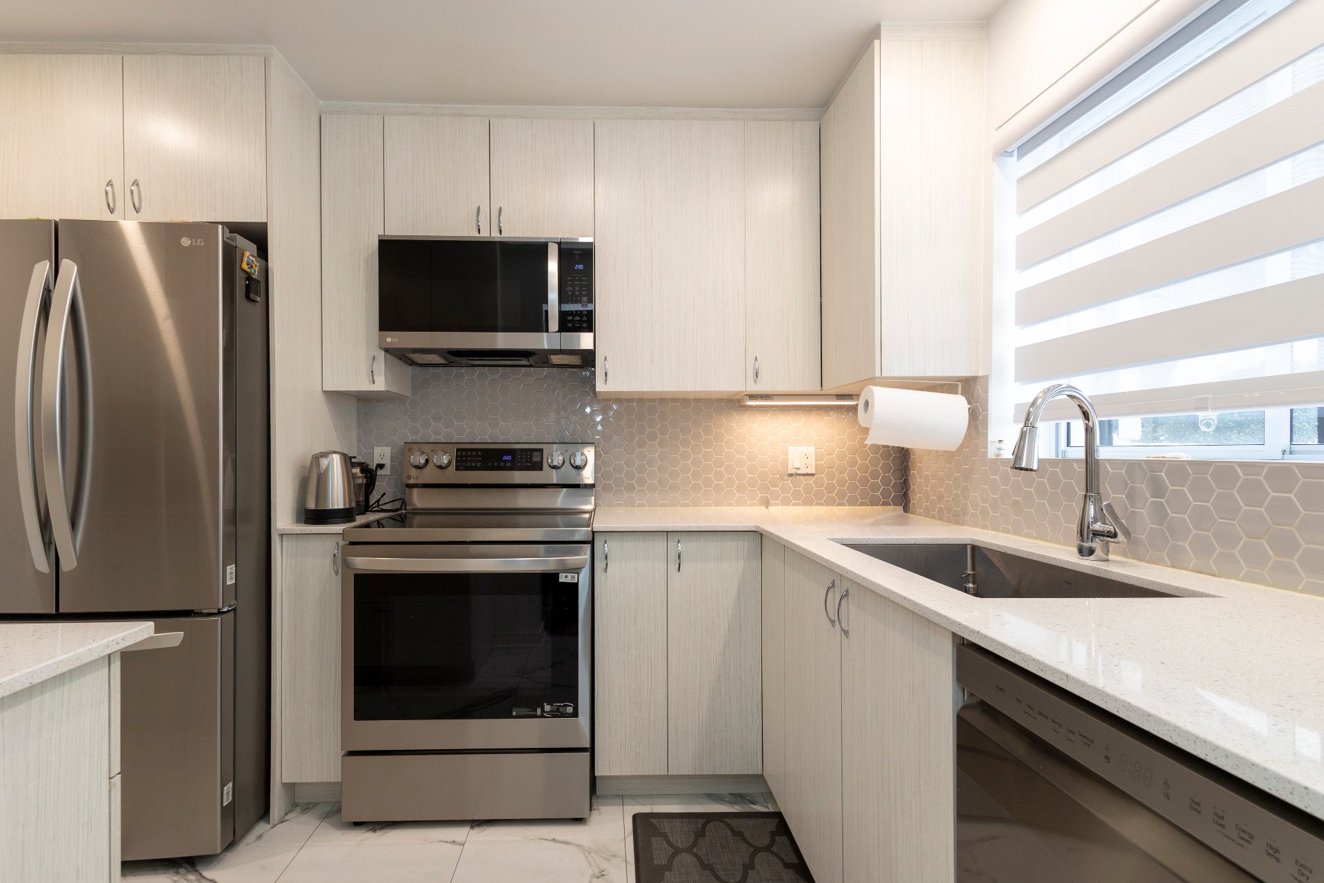 Luminaires, fixtures, lave-vaisselle, micro-ondes/hotte, habillages de fenêtres.
