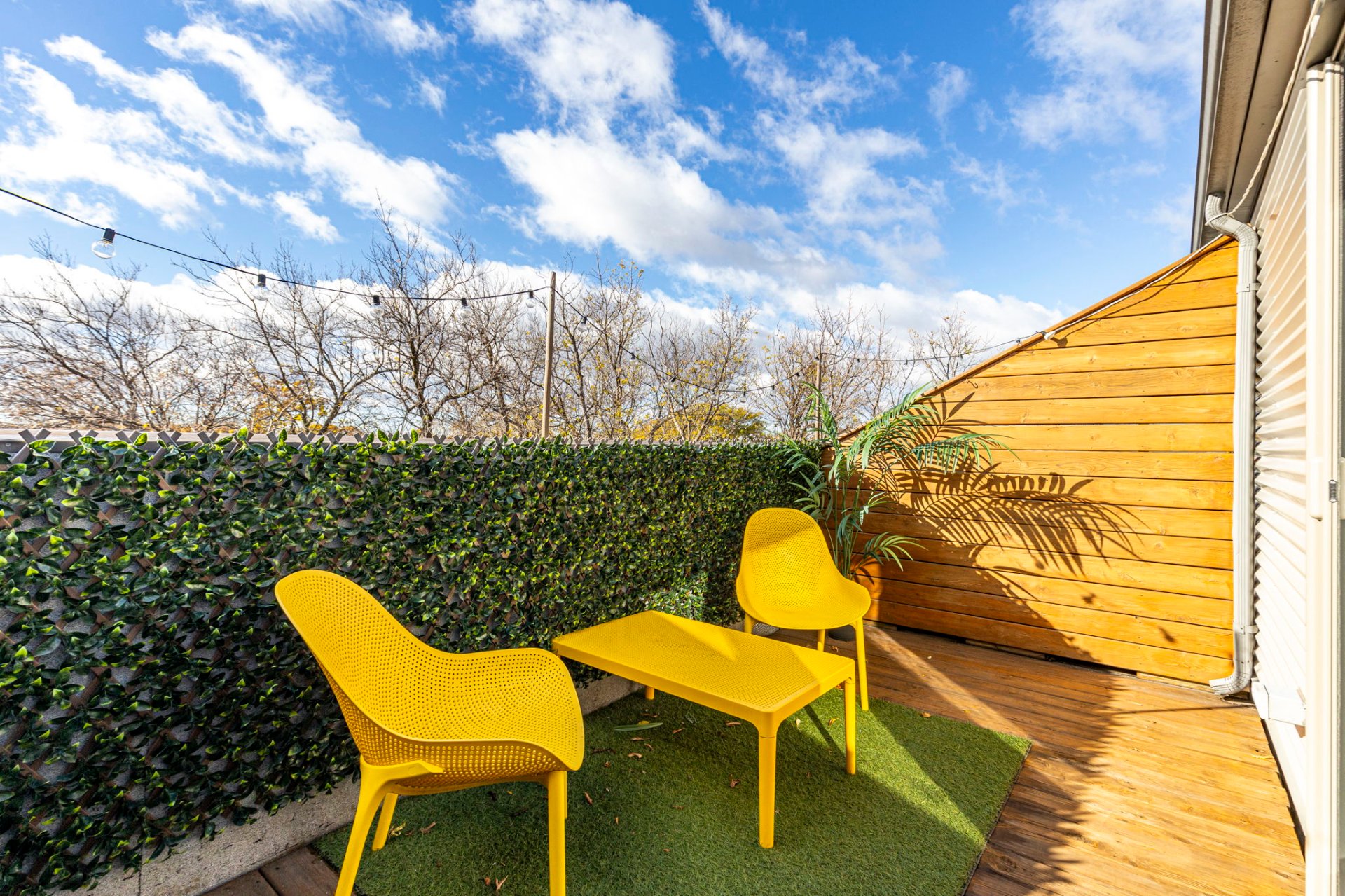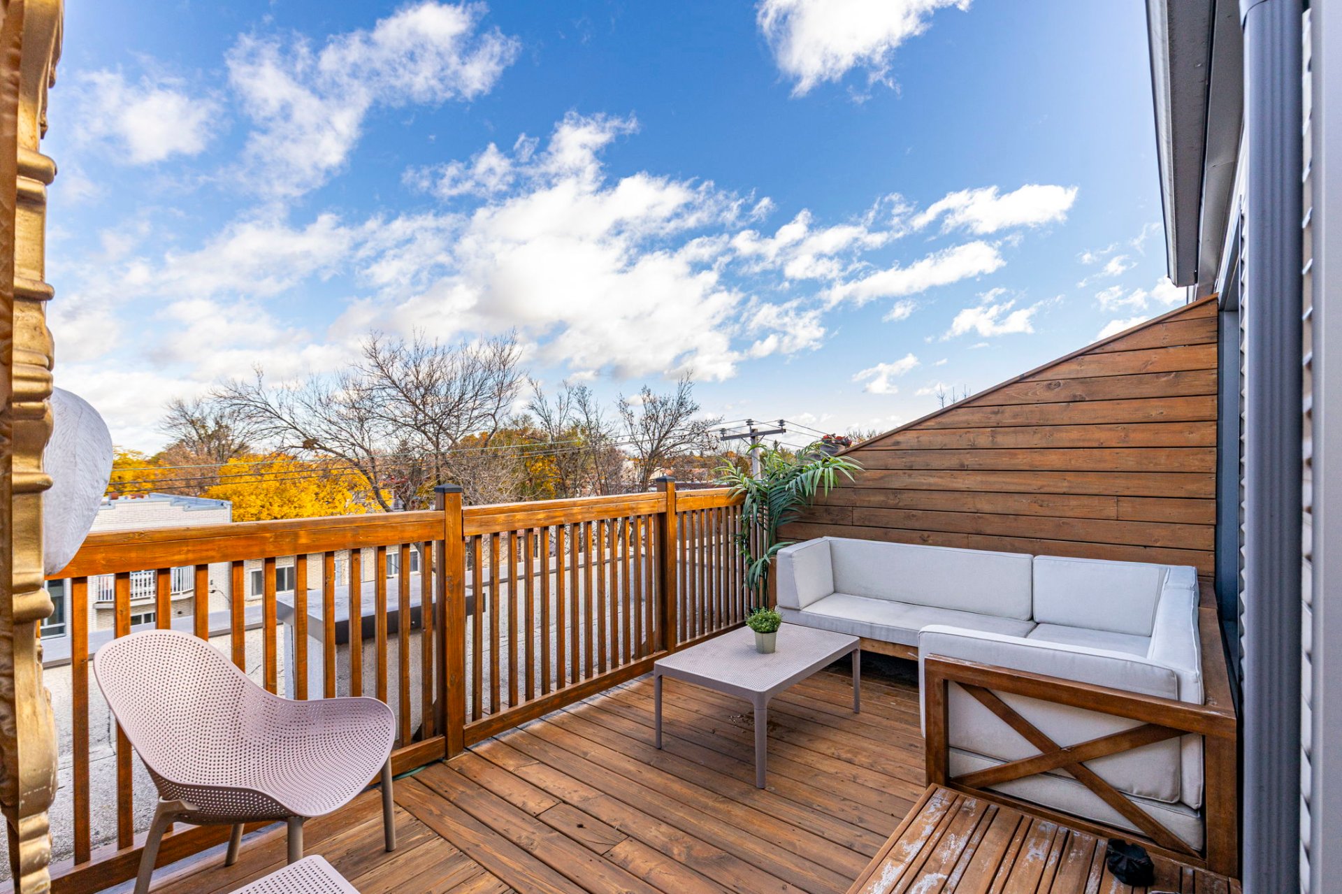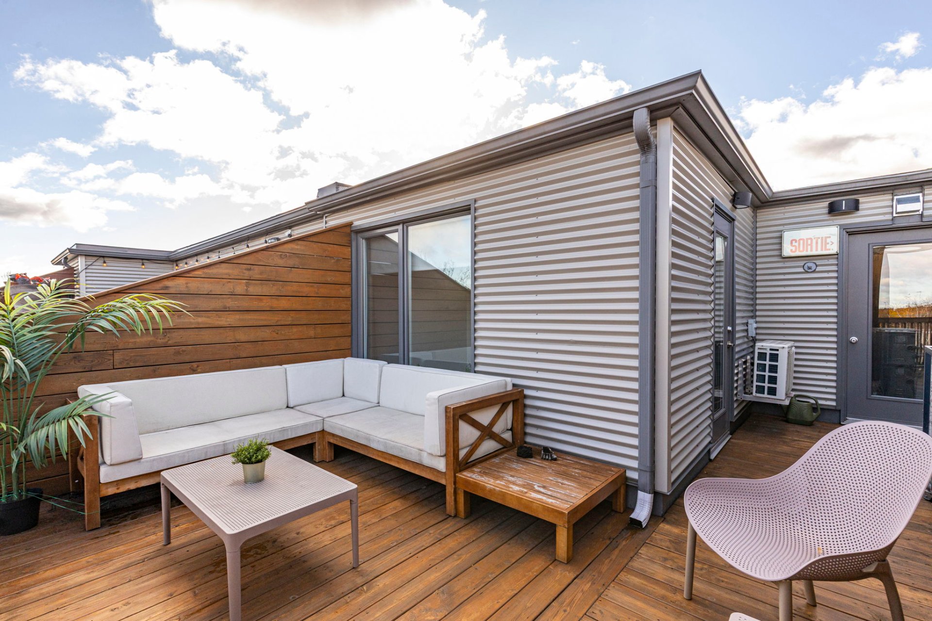 This two-story unit in Rosemont is distinguished by its harmonious blend of indoor and outdoor spaces. Offering two private terraces on the mezzanine, a balcony, and a private garage, this condo provides a comfortable and practical lifestyle. It features two full bathrooms and two bedrooms. The condo is located on the third and top floor of the building. This modern condominium, built in 2016, is just minutes from the future Vertières metro station.