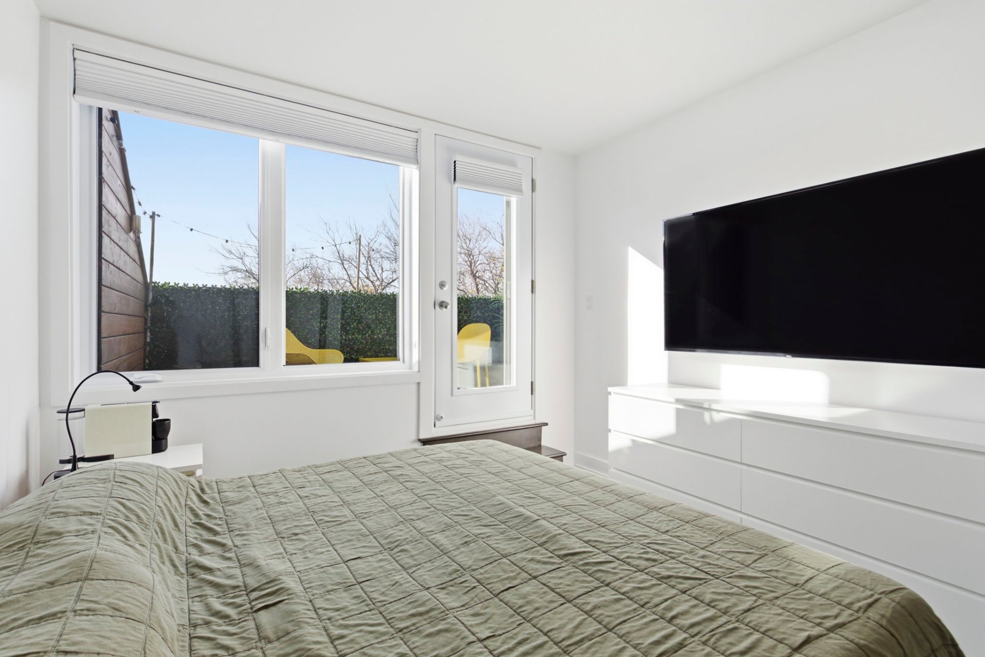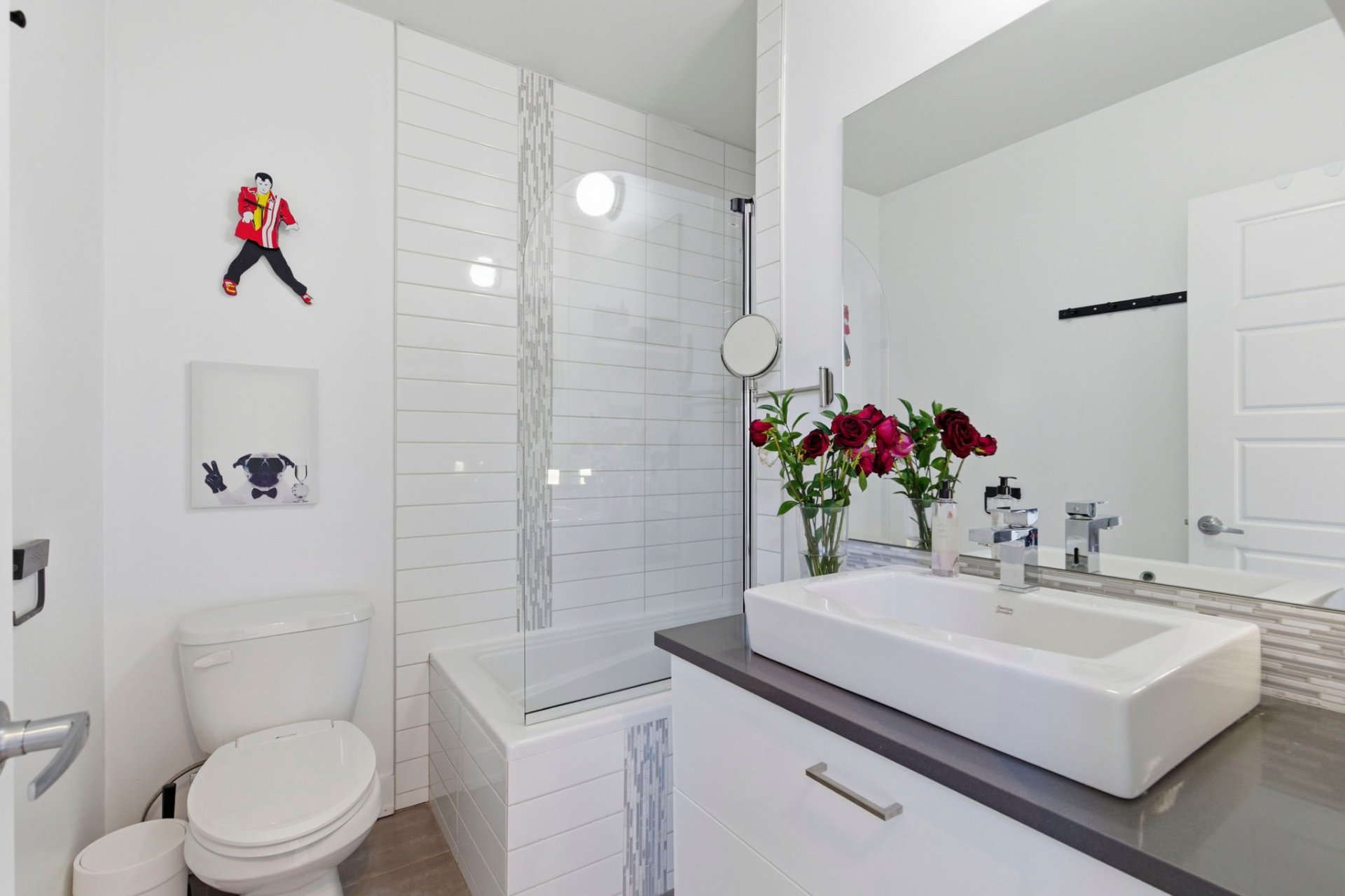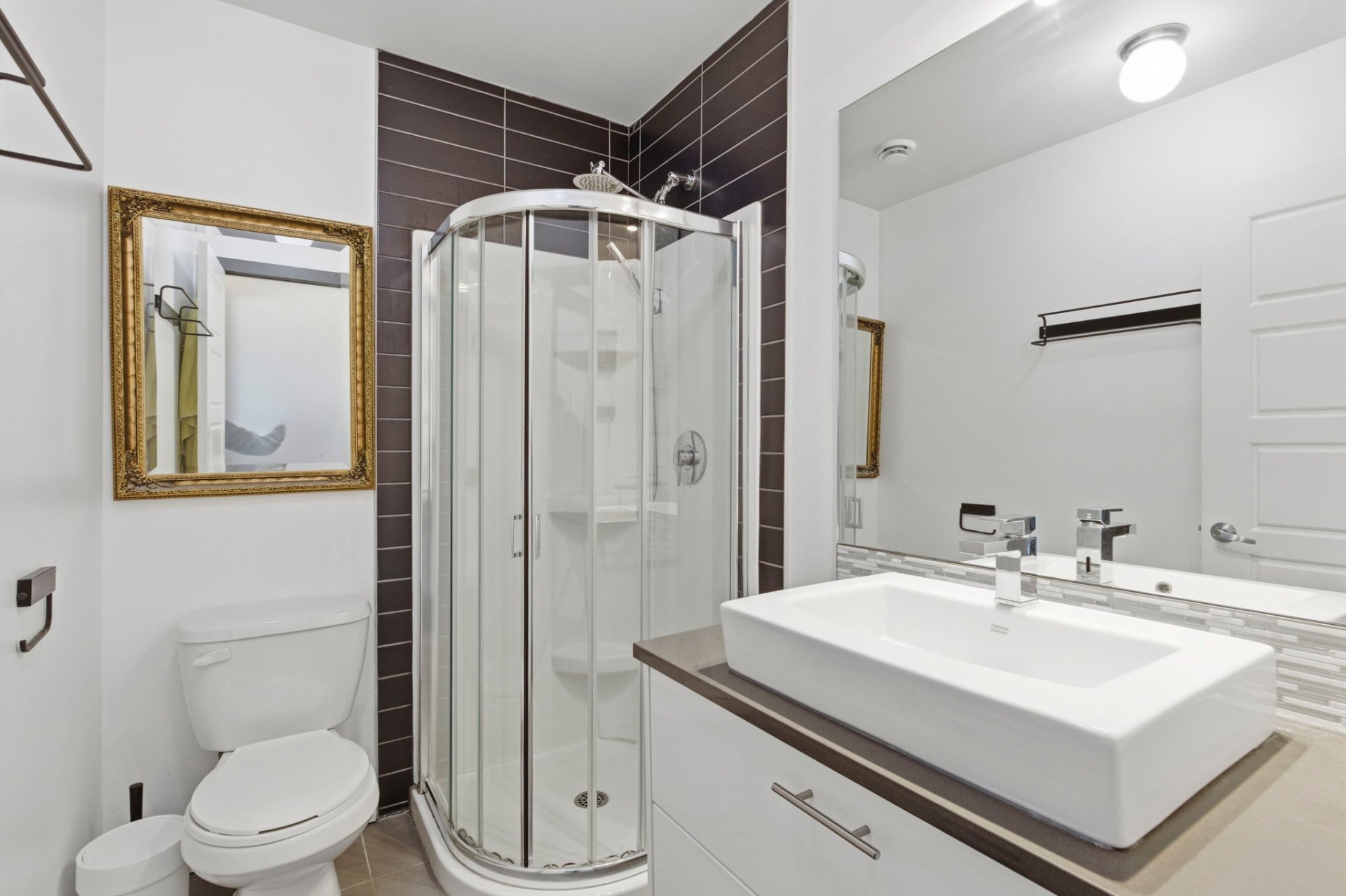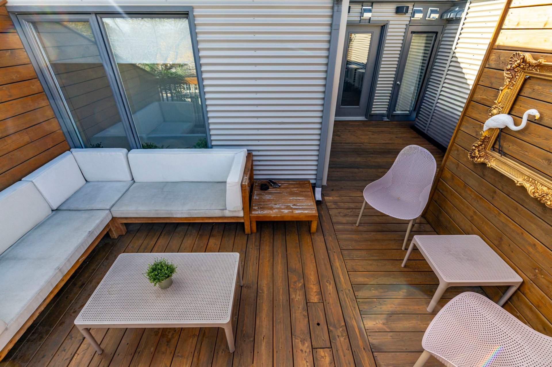 This two-story unit in Rosemont is distinguished by its harmonious blend of indoor and outdoor spaces. Offering two private terraces on the mezzanine, a balcony, and a private garage, this condo provides a comfortable and practical lifestyle. It features two full bathrooms and two bedrooms. The condo is located on the third and top floor of the building. This modern condominium, built in 2016, is just minutes from the future Vertières metro station.