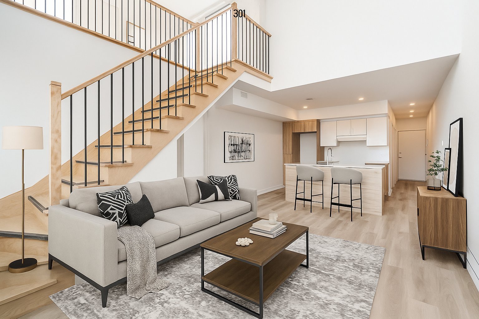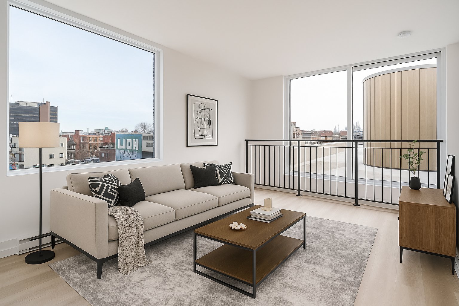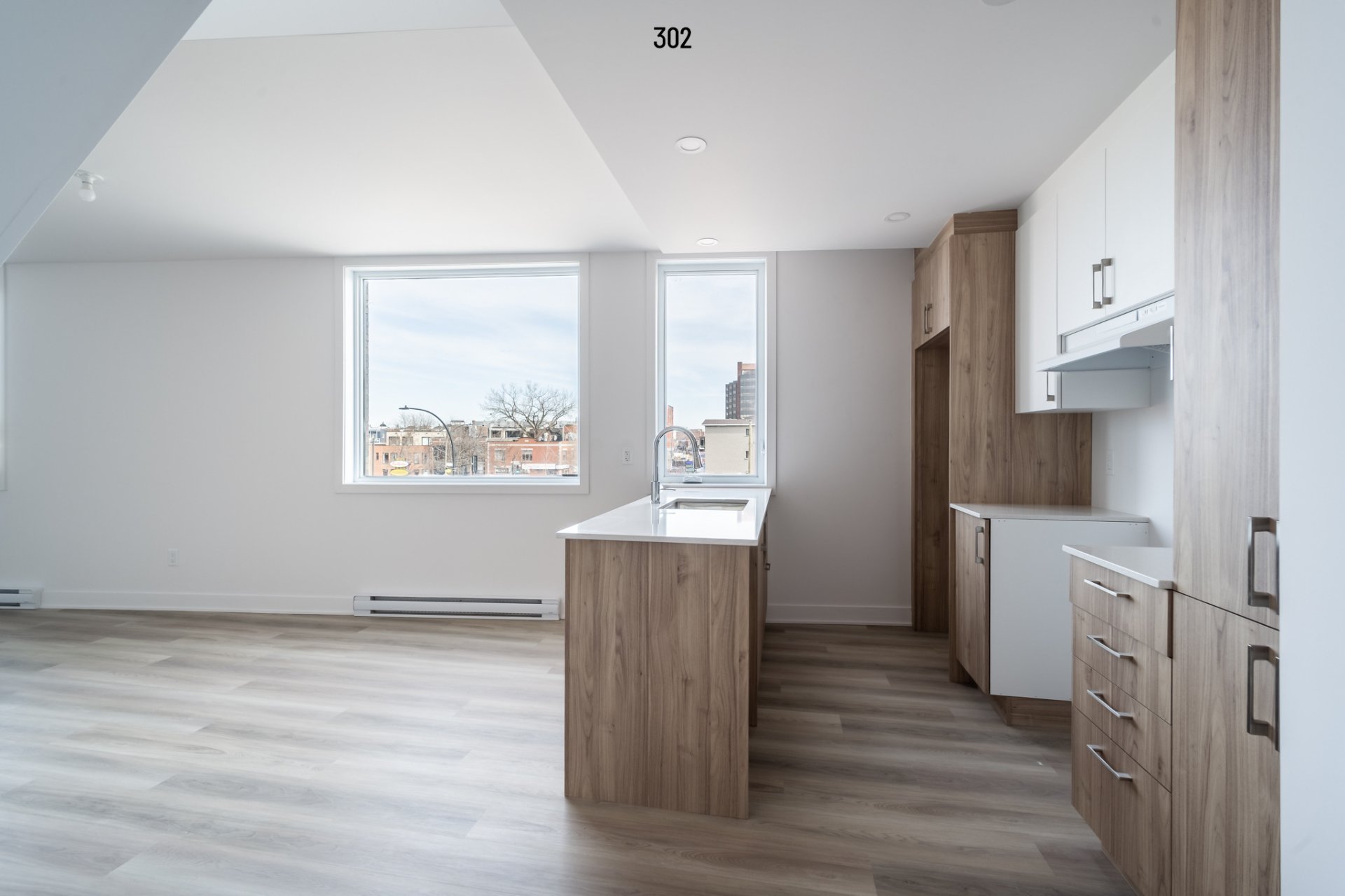Location, location, location! Discover this stunning brand-new rental building ideally located at the corner of the iconic Jean-Talon Market. Nestled in the heart of Little Italy, this top-floor, two-storey unit boasts cathedral ceilings, a spacious mezzanine, and a private terrace with breathtaking city and mountain views. Designed for comfort and style, the unit features a closed bedroom, an open-concept kitchen and living area with quartz countertops, recessed lighting, and a washer/dryer installation in the bathroom. Large windows flood the space with natural light, while a wall-mounted air conditioner ensures year-round comfort.