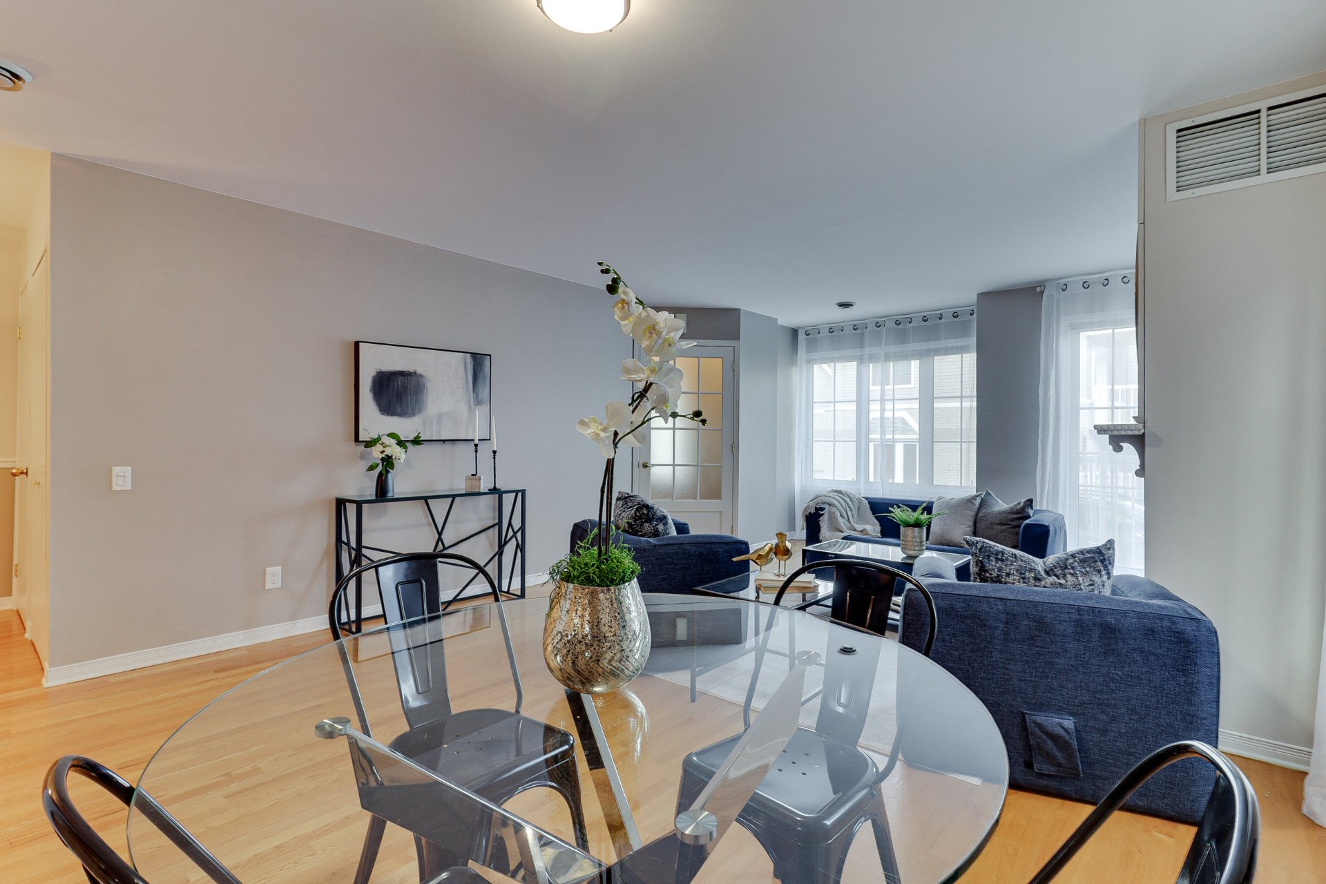 Superbe condo sur deux étages avec grand sous-sol, situé à quelques pas du métro Du Collège. Cette unité lumineuse et bien entretenue offre 2 chambres, 2 salles de bains, ainsi qu'une aire de vie ouverte au design chaleureux. Vous profiterez d'une entrée privée, d'une cuisine fonctionnelle, d'un grand sous-sol polyvalent -- idéal pour salle familiale, bureau, rangement ou espace de jeux -- et d'un aménagement pensé pour optimiser confort et praticité. Accès direct au garage+1 ext.Idéalement situé à proximité des services, commerces, écoles et transports, ce condo répond parfaitement aux besoins des professionnels, couples ou petites familles.