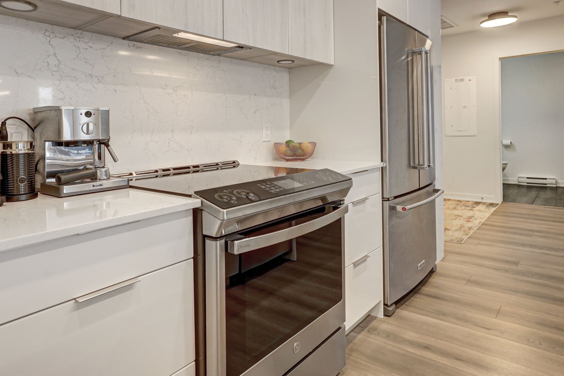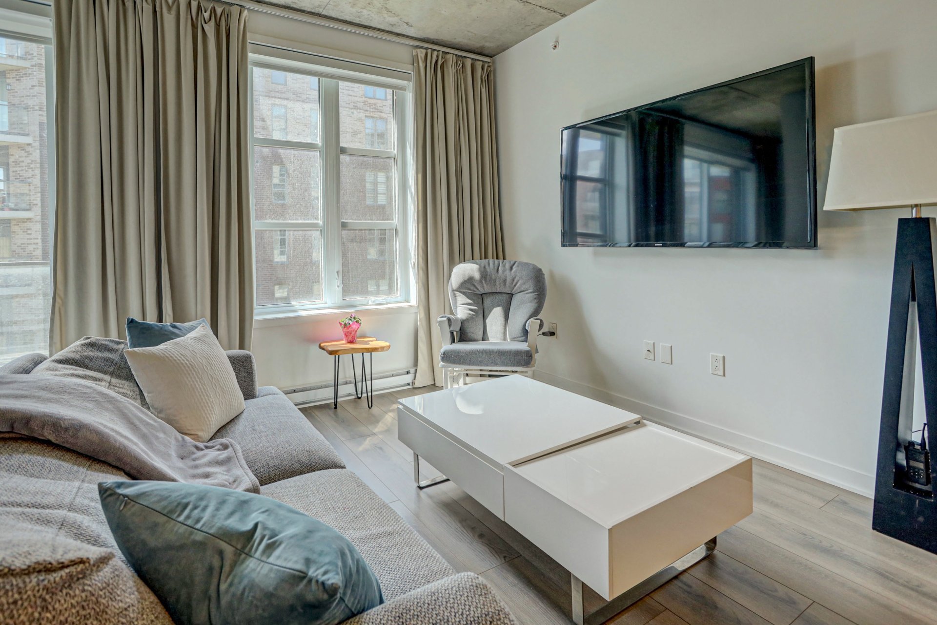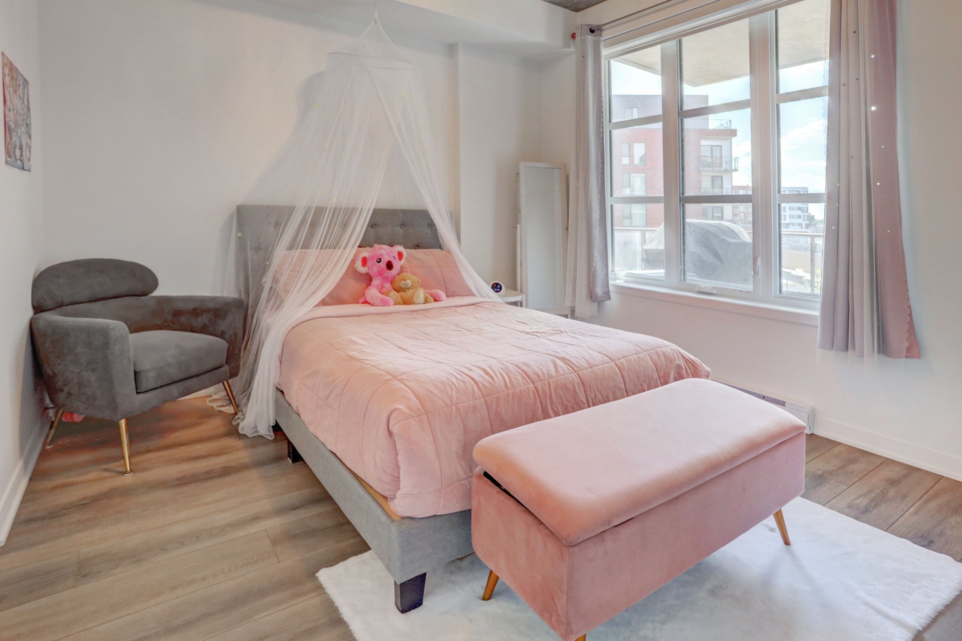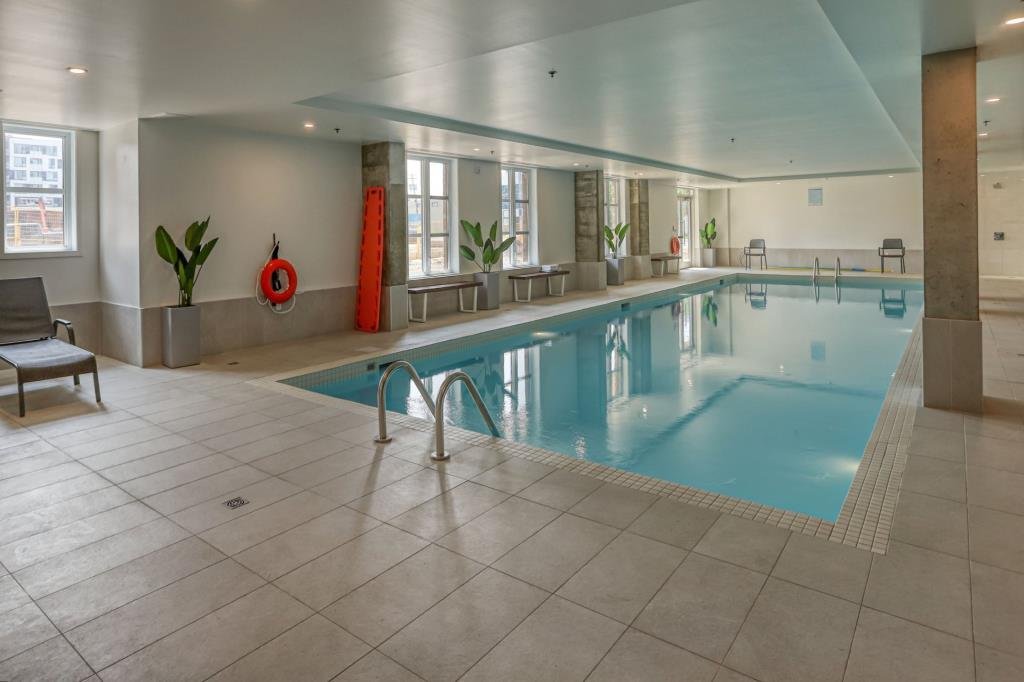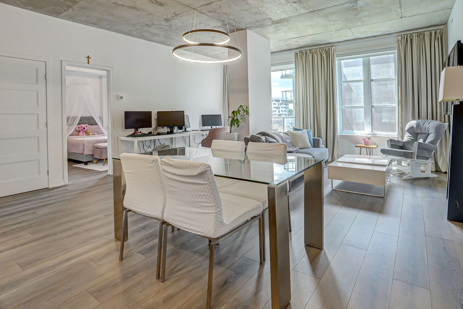 Welcome to beautiful Bois-Franc! Ideally situated with a very short walk to the new REM station, shopping and parks. Offering a very large and bright open living area comprising a large modern kitchen with stainless steel appliances overlooking the dining area and living room. Includes two bedrooms, two baths a large balcony, one indoor parking and a locker. Enjoy all of the amenities the Curtiss Alpha building features including an indoor pool, an outdoor pool, rooftop terrace, common room and gym. This unit will be sure to please, make it yours today!