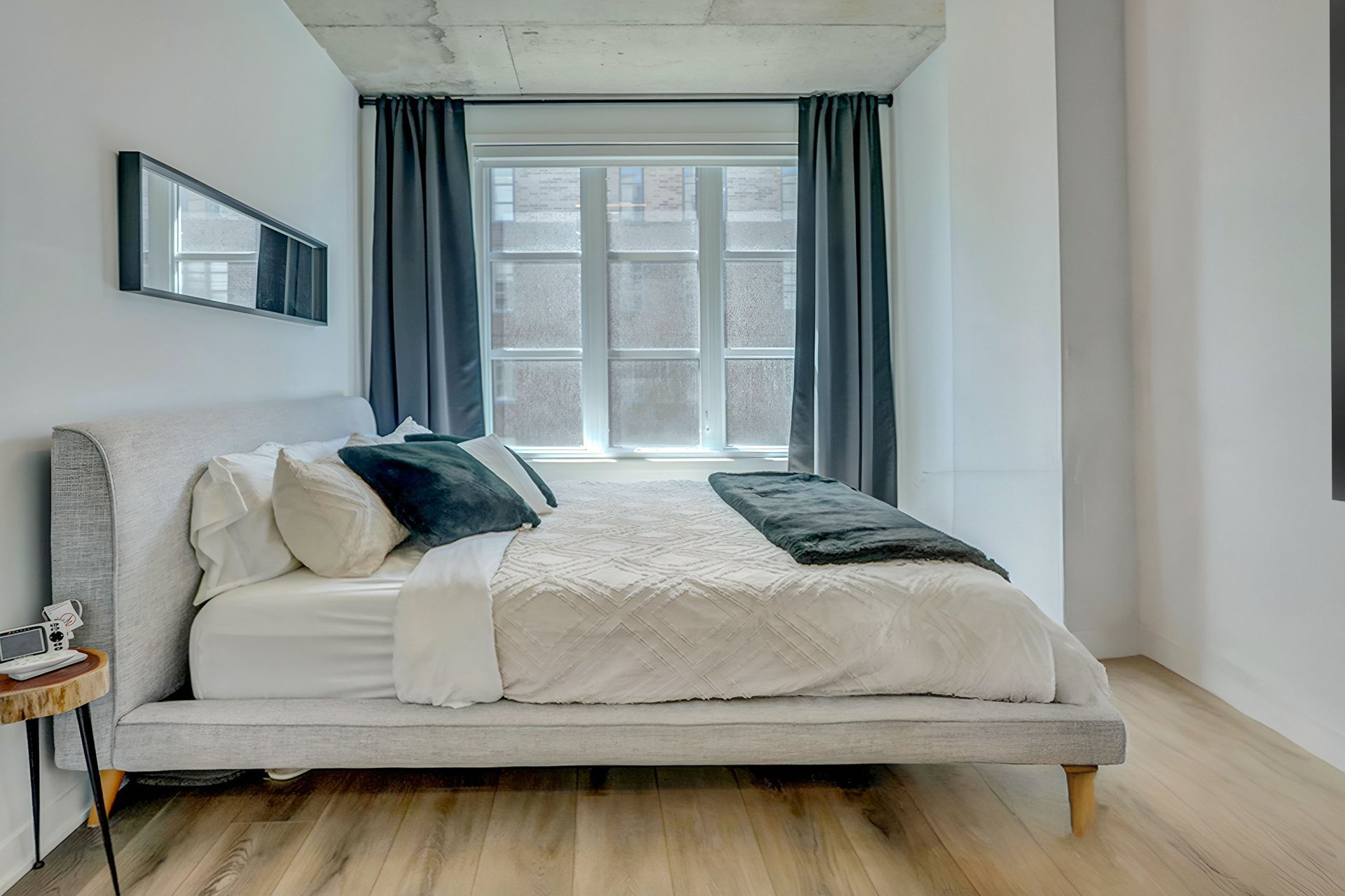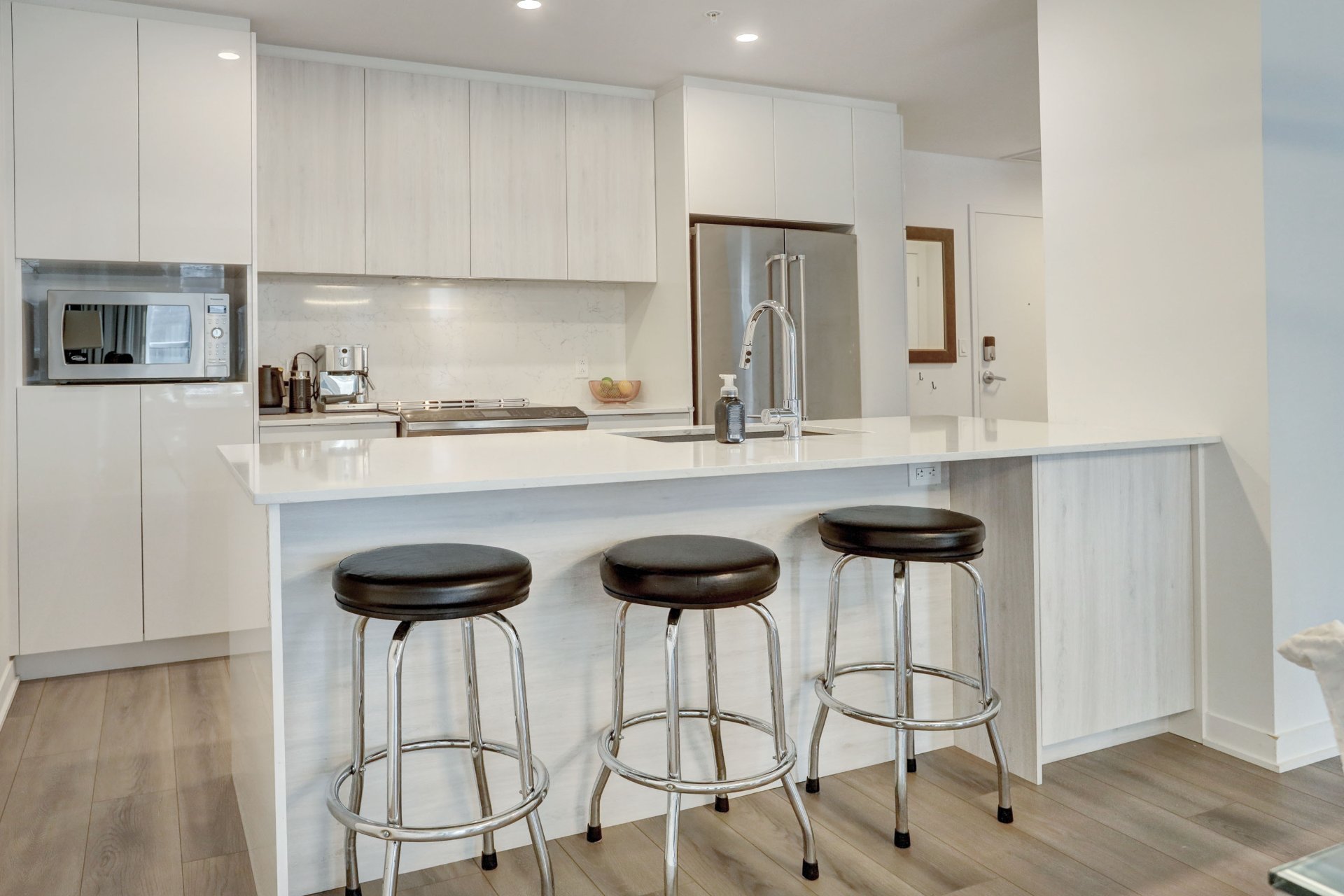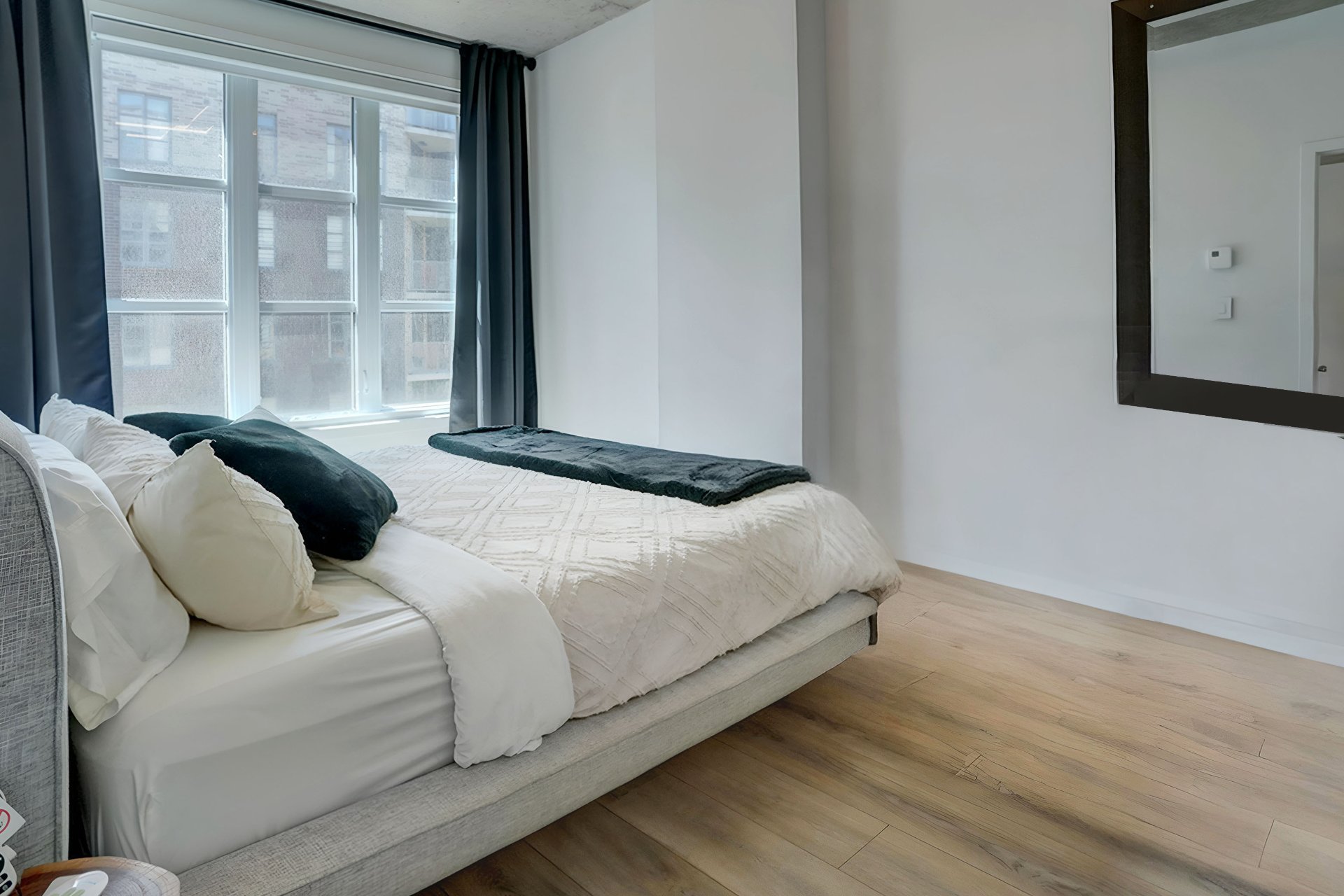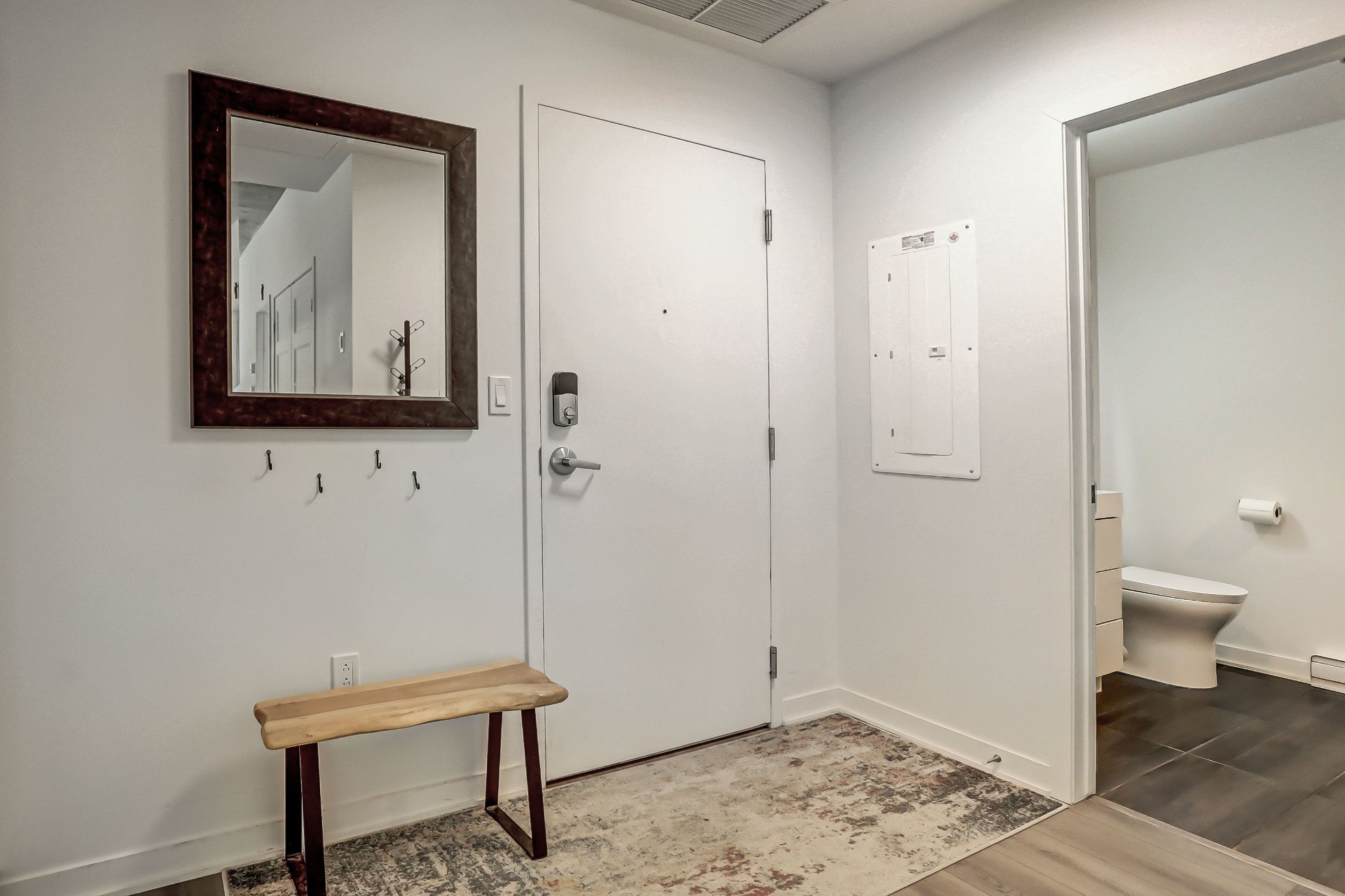 Welcome to beautiful Bois-Franc! Ideally situated with a very short walk to the new REM station, shopping and parks. Offering a very large and bright open living area comprising a large modern kitchen with stainless steel appliances overlooking the dining area and living room. Includes two bedrooms, two baths a large balcony, one indoor parking and a locker. Enjoy all of the amenities the Curtiss Alpha building features including an indoor pool, an outdoor pool, rooftop terrace, common room and gym. This unit will be sure to please, make it yours today!