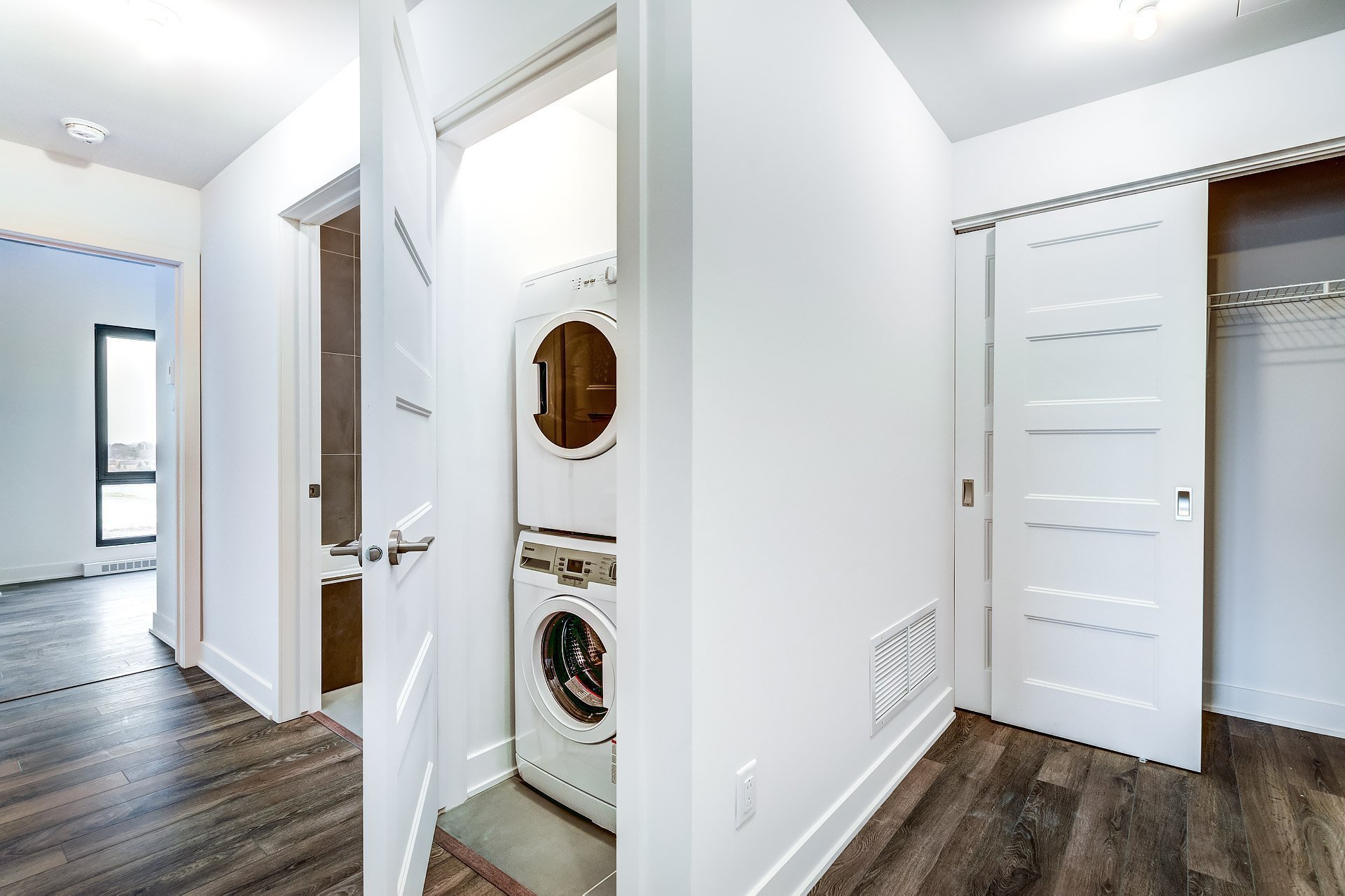 Réfrigérateur, cuisinière, four, lave-vaisselle, laveuse, sécheuse, luminaires, stores et rideaux. Une place de parking intérieure #S05 et un casier inclus #R29.