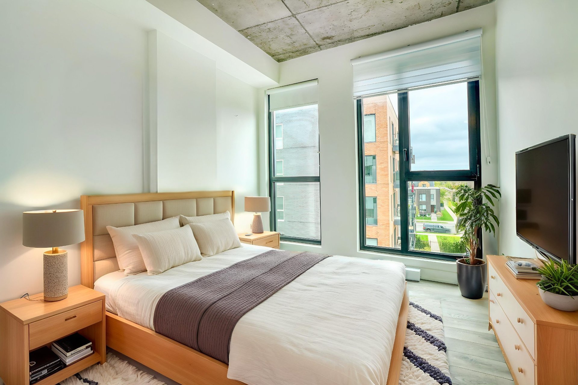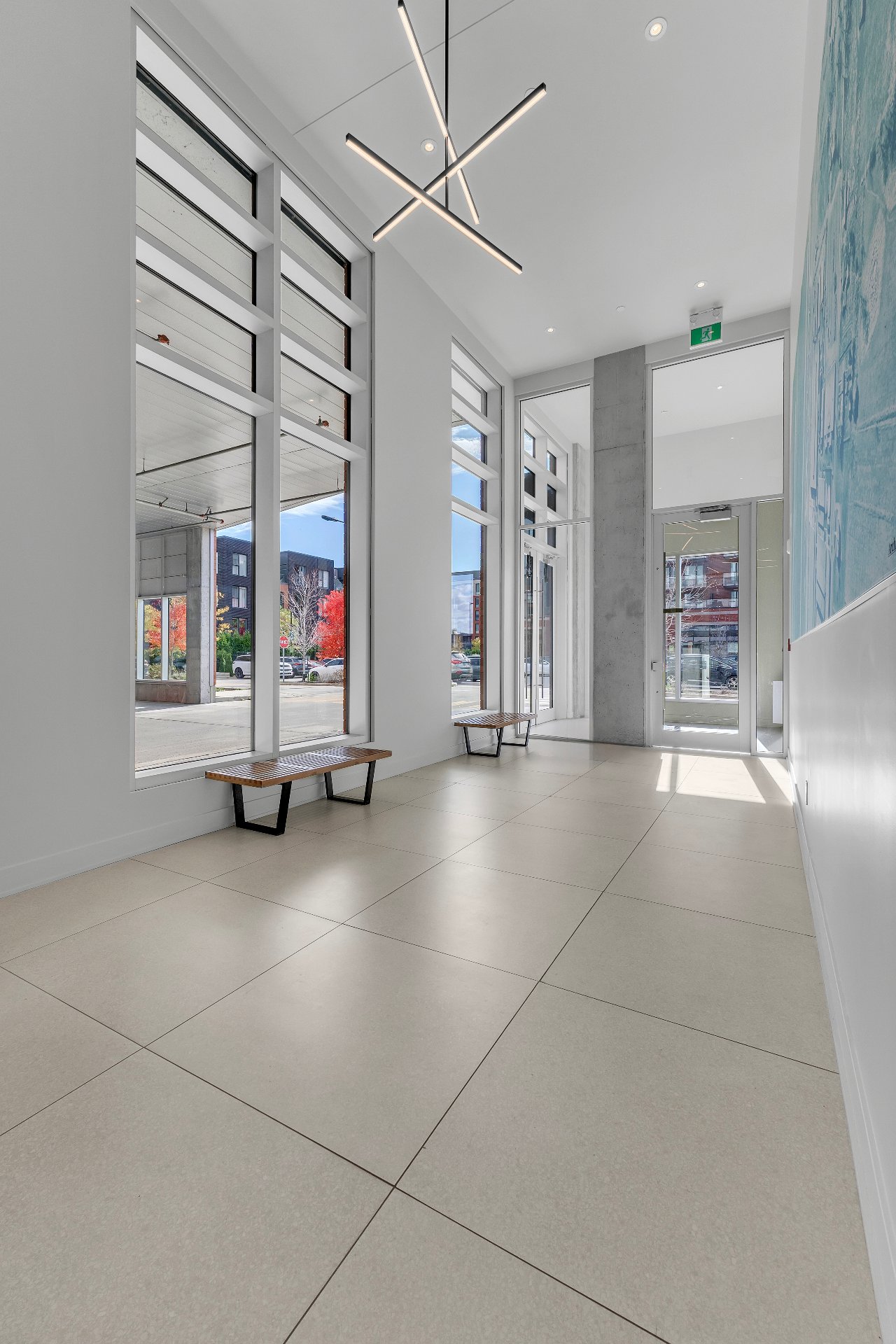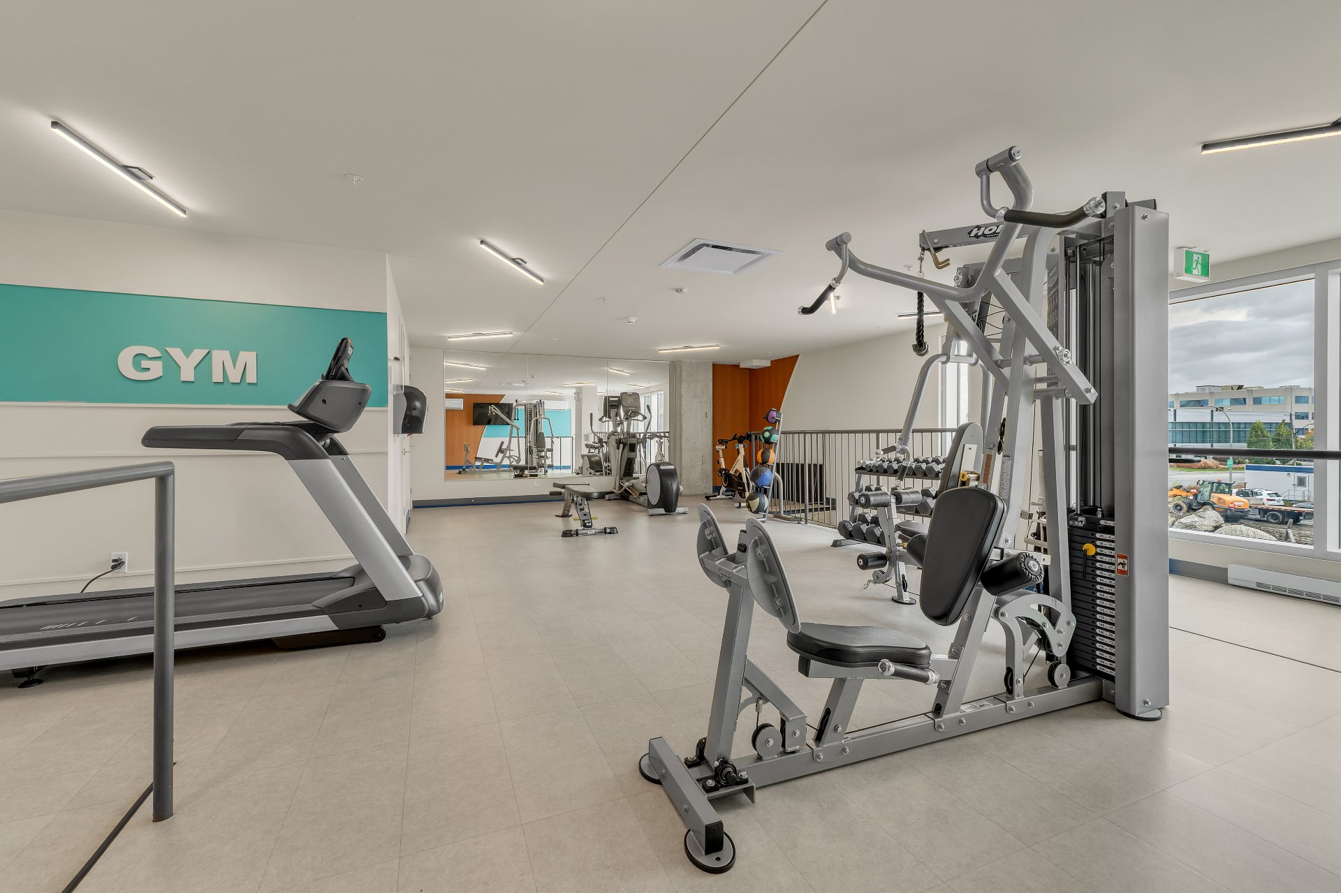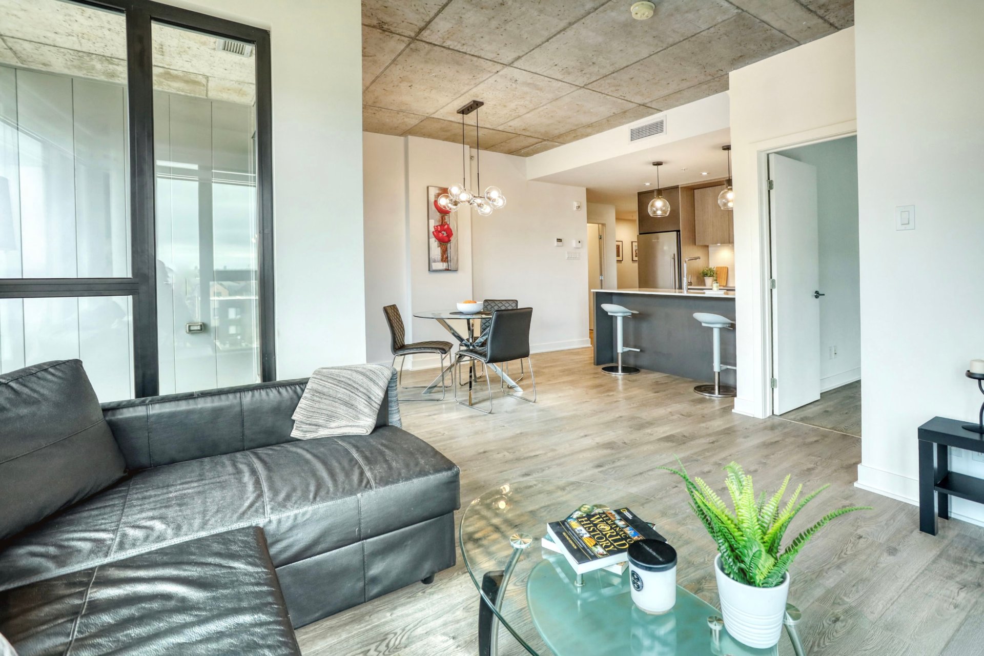 Le Wilfrid! Corner two bedroom, two bathroom unit facing southwest for maximum sun exposure. Nice open living area and modern finishings make this the best choice! Conveniently located a few minutes walk to the new Bois-Franc REM station and shopping. Enjoy the gym, rooftop terrasse and beautiful common room. Includes central air, one interior parking and a storage locker.