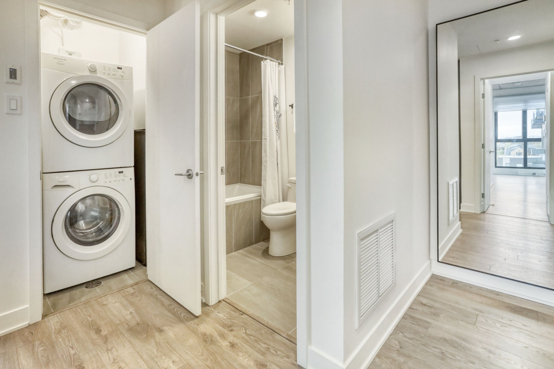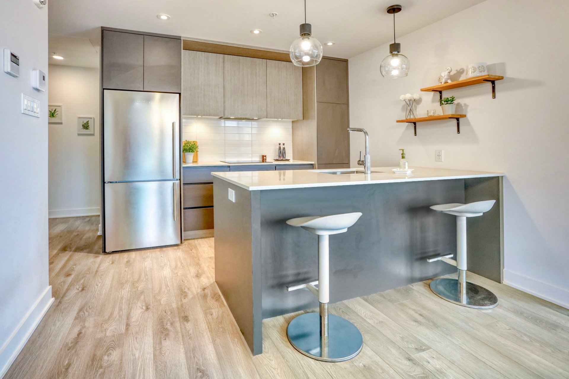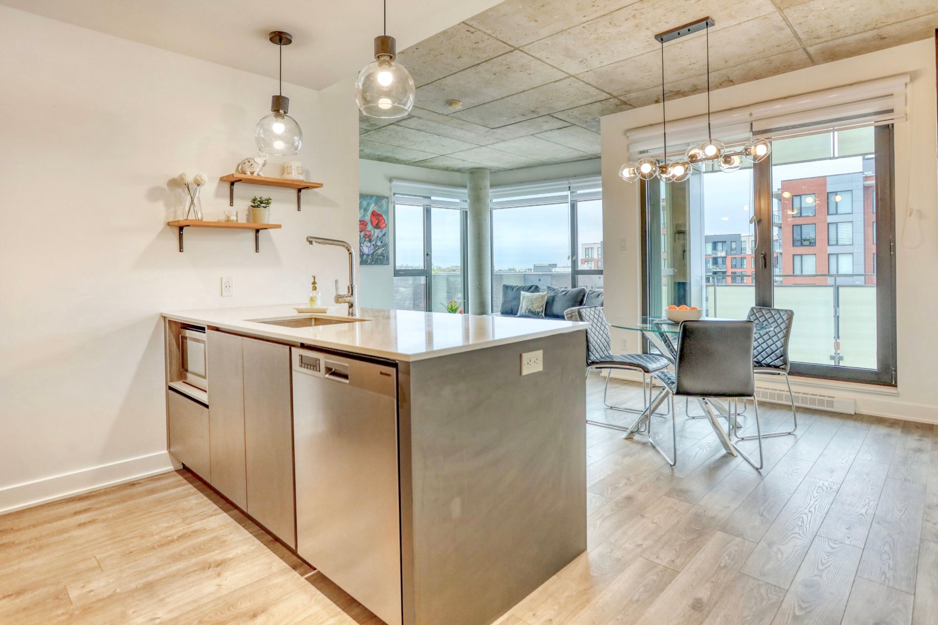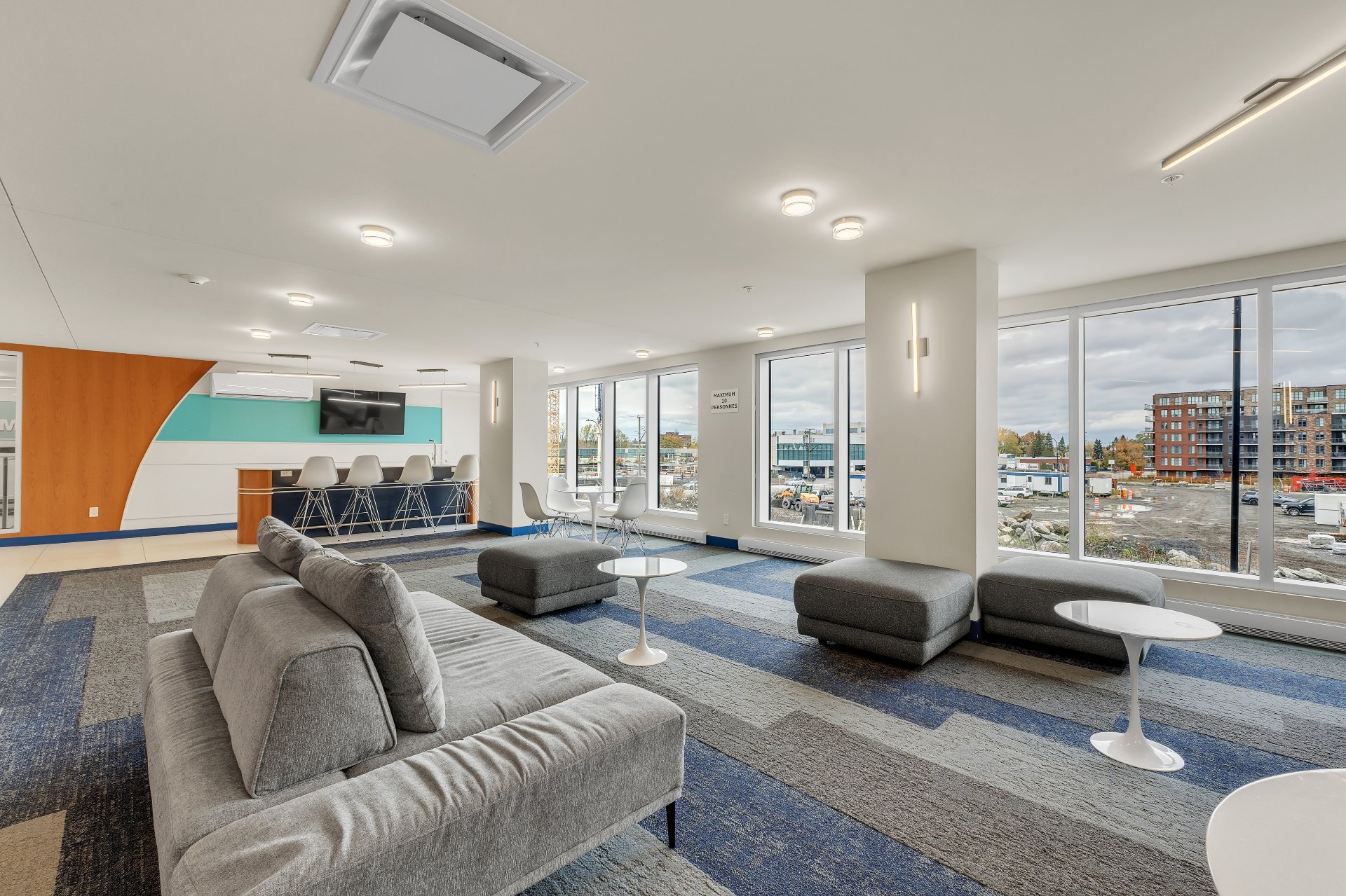 Le Wilfrid! Corner two bedroom, two bathroom unit facing southwest for maximum sun exposure. Nice open living area and modern finishings make this the best choice! Conveniently located a few minutes walk to the new Bois-Franc REM station and shopping. Enjoy the gym, rooftop terrasse and beautiful common room. Includes central air, one interior parking and a storage locker.