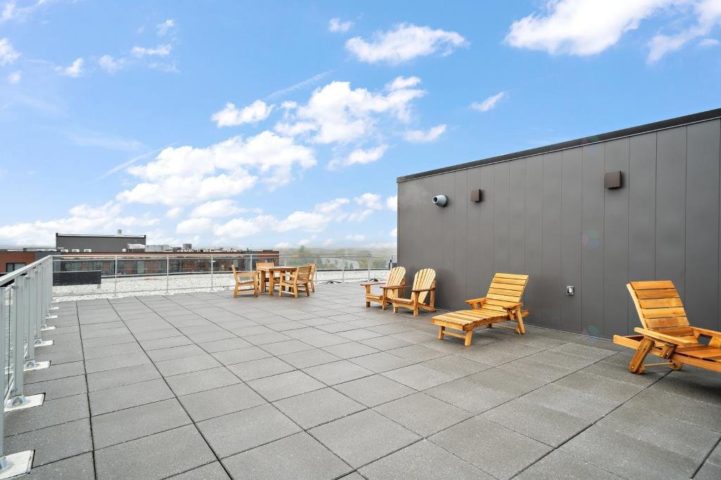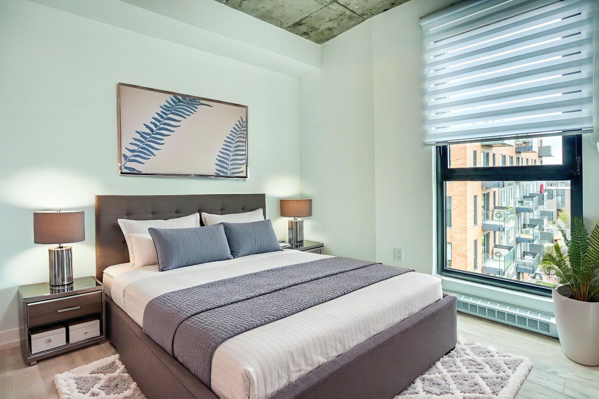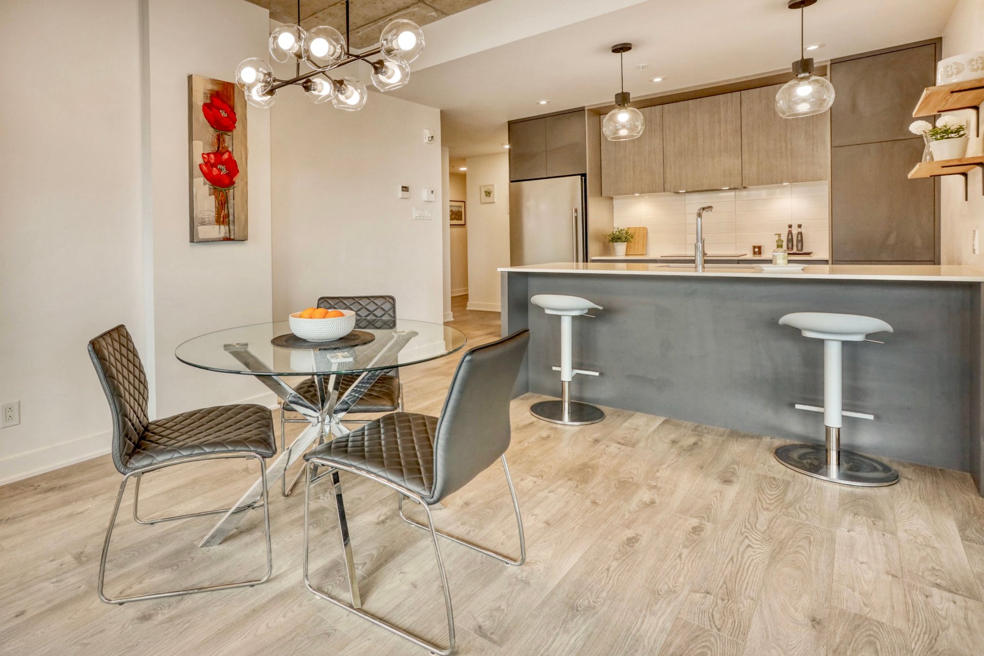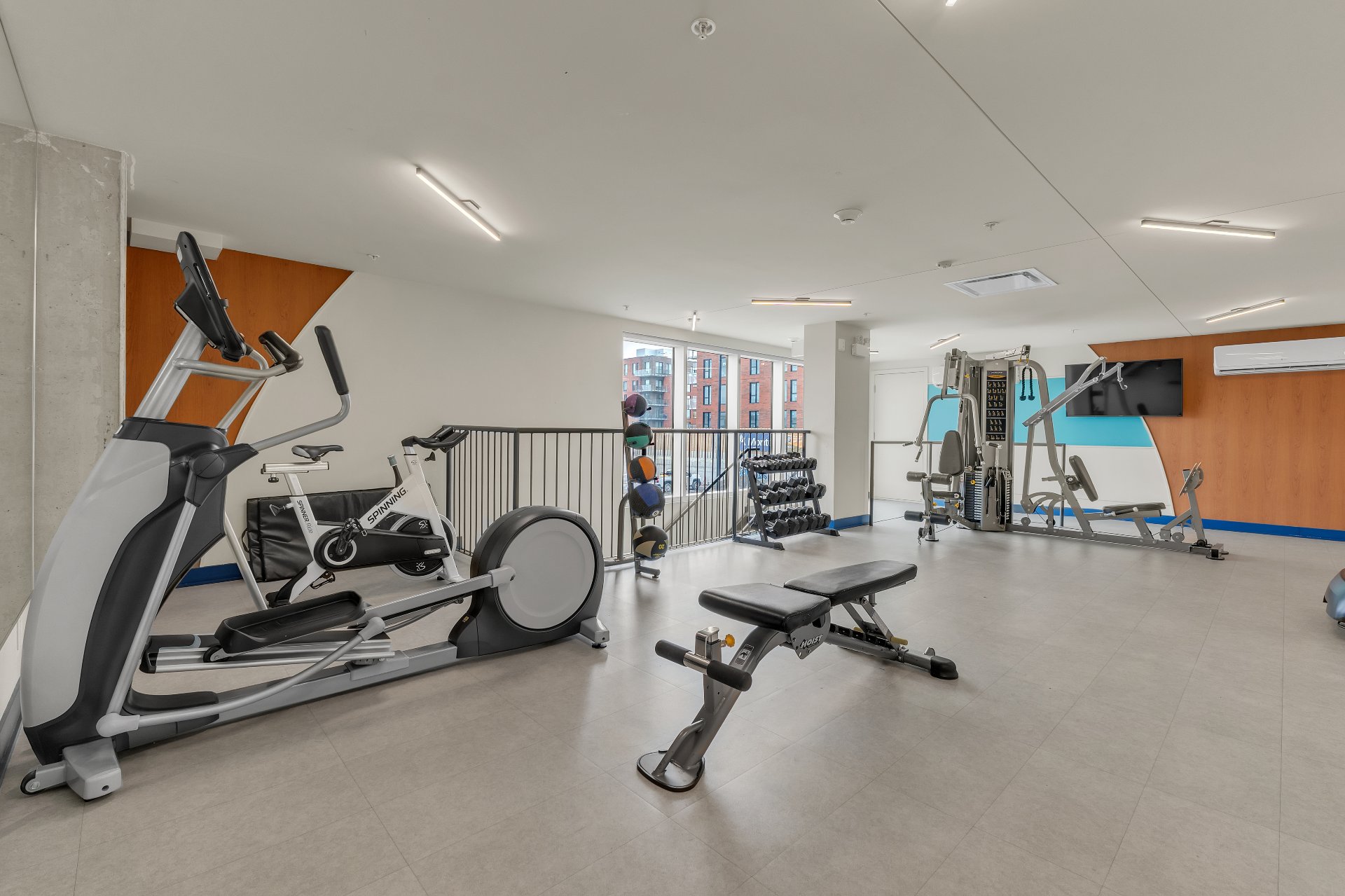 Le Wilfrid! Corner two bedroom, two bathroom unit facing southwest for maximum sun exposure. Nice open living area and modern finishings make this the best choice! Conveniently located a few minutes walk to the new Bois-Franc REM station and shopping. Enjoy the gym, rooftop terrasse and beautiful common room. Includes central air, one interior parking and a storage locker.