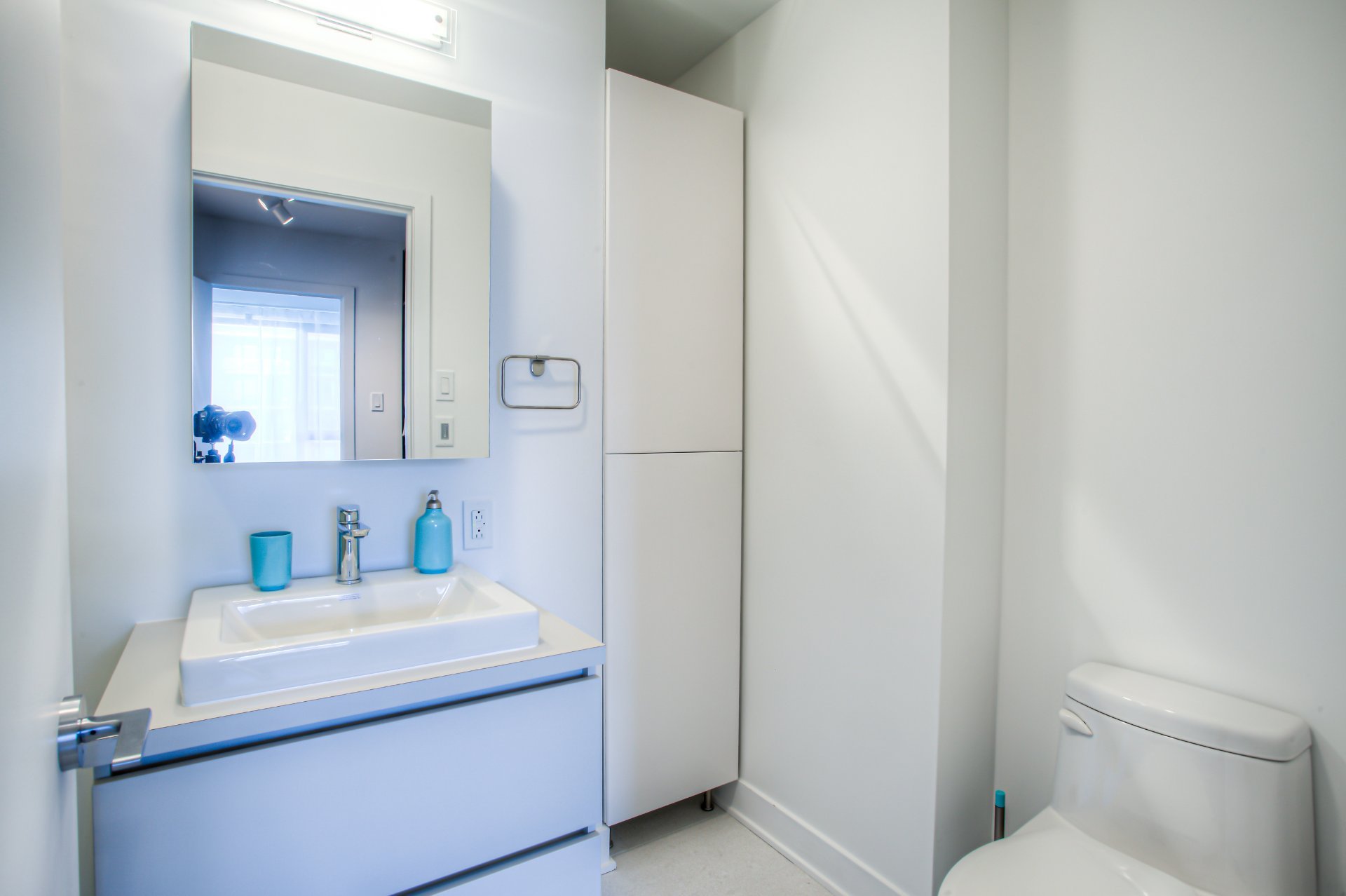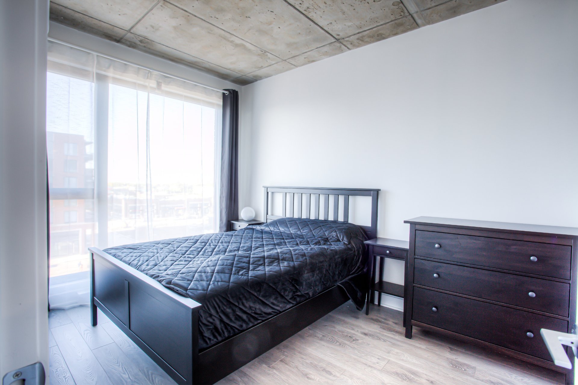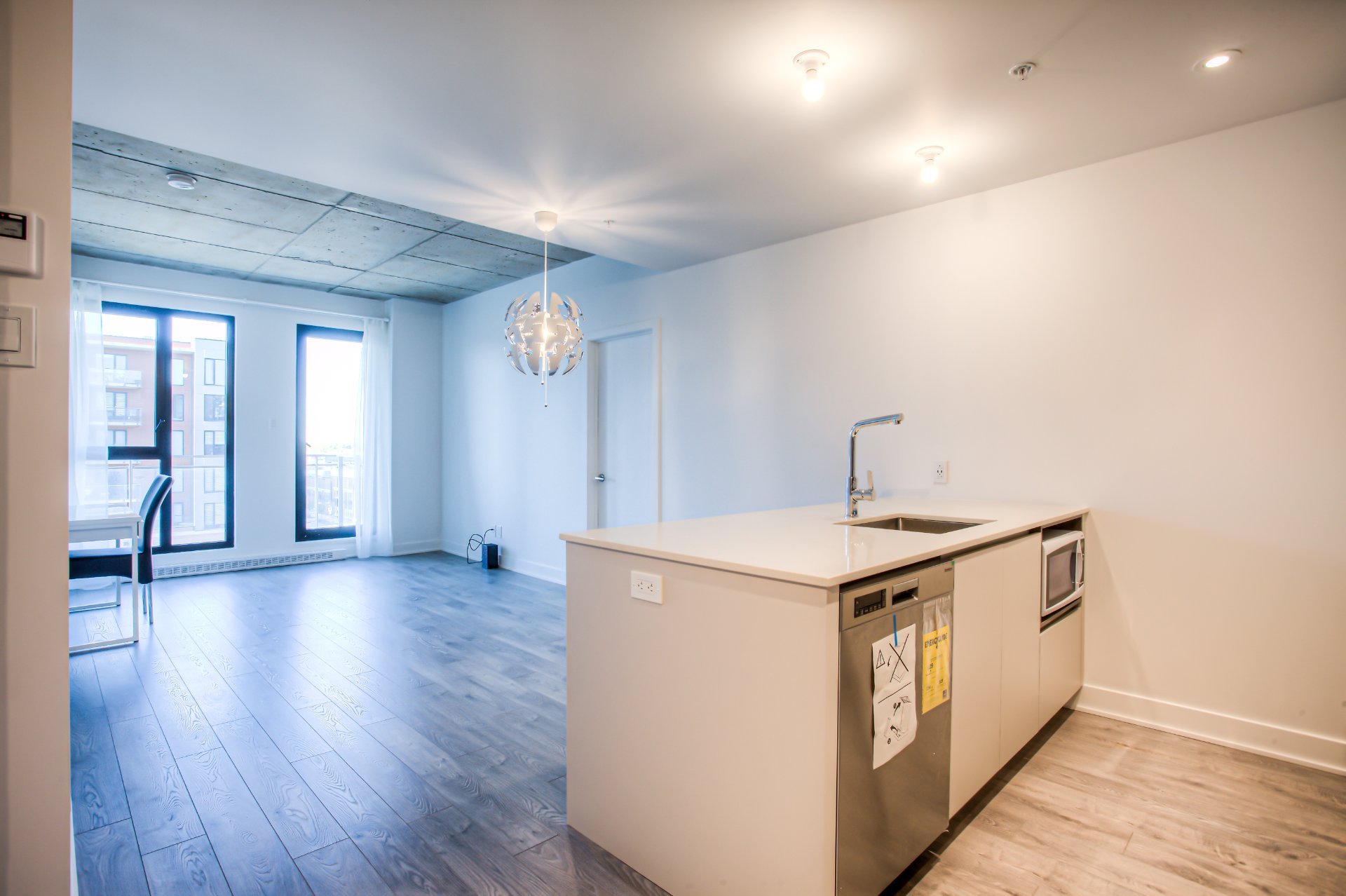 Ideal location! This condo is located near all amenities and public transportation, 2 bedrooms and 2 full bathrooms, open concept, modern kitchen, all the appliances are included, 1 indoor parking and 1 locker, building with elevator, gym, and common room. A must-see!