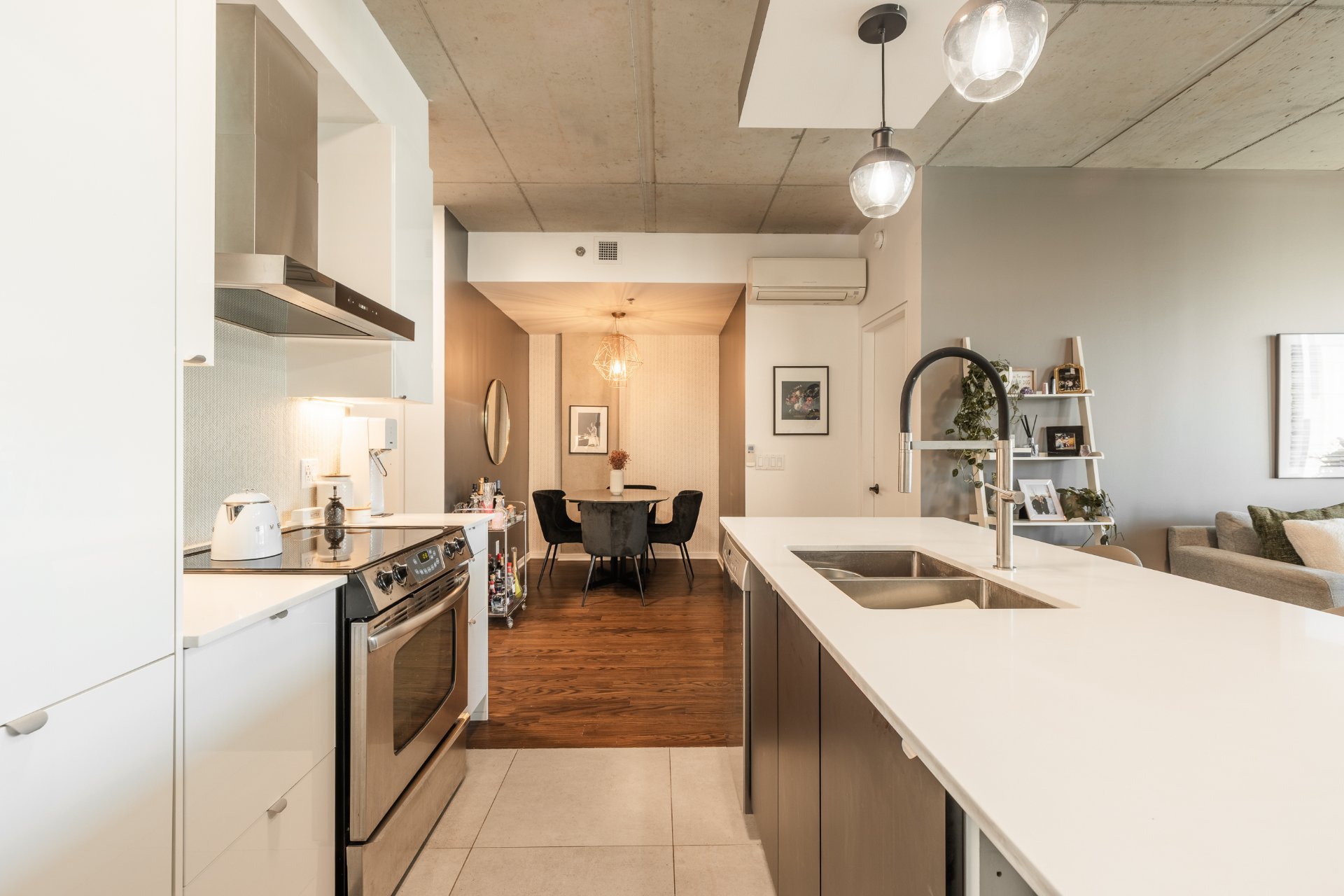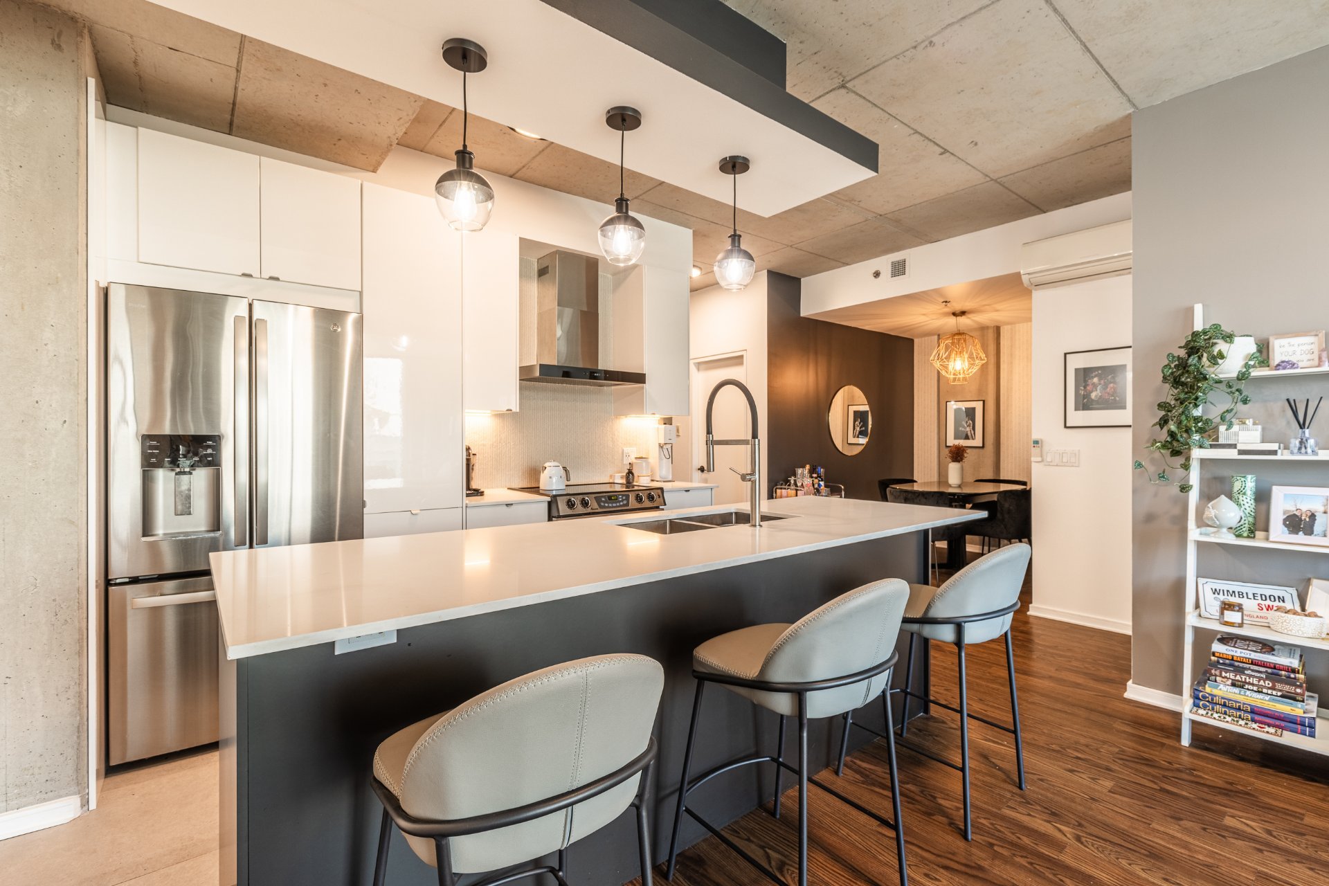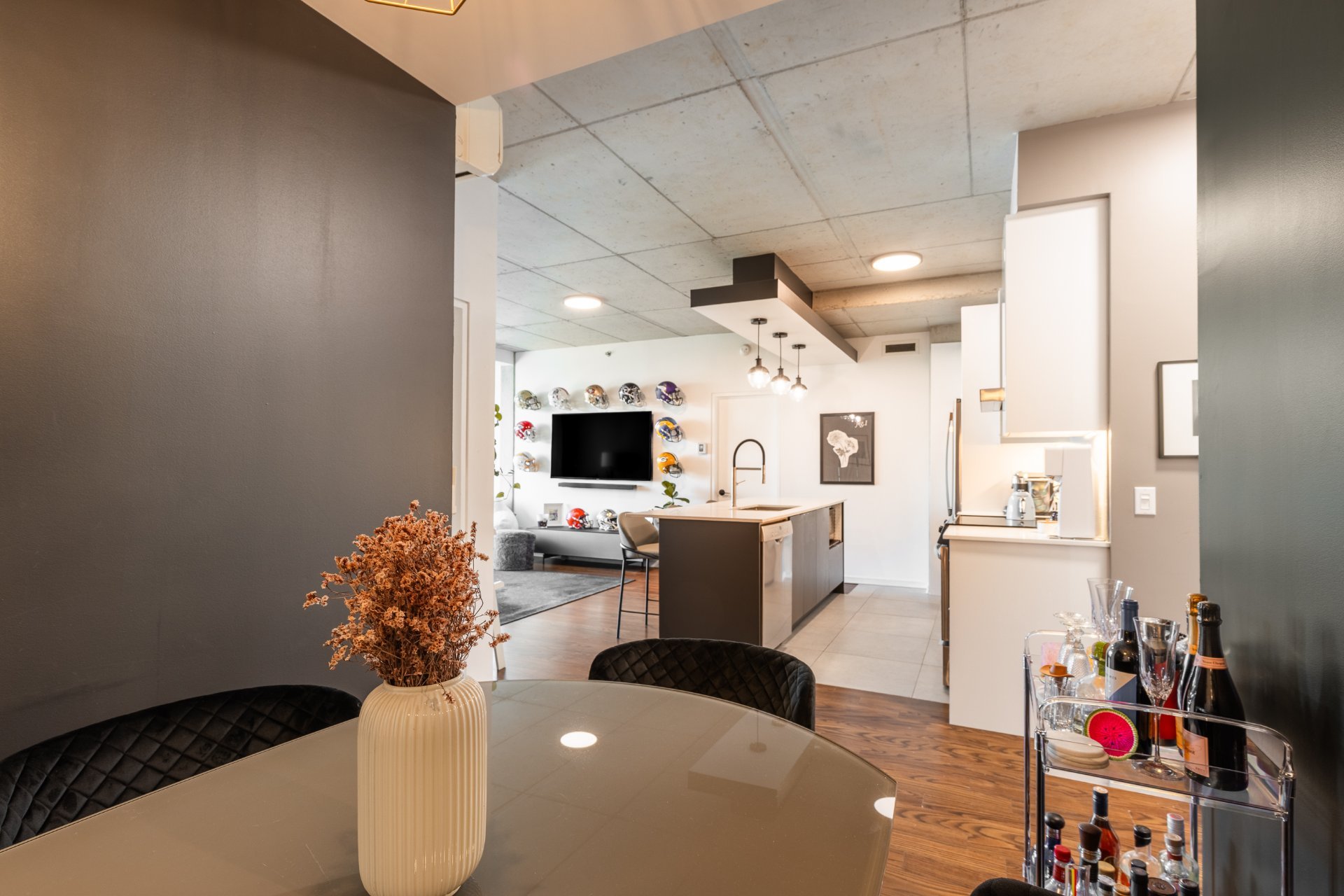 - Concept à aire ouverte avec plafonds en béton apparent de