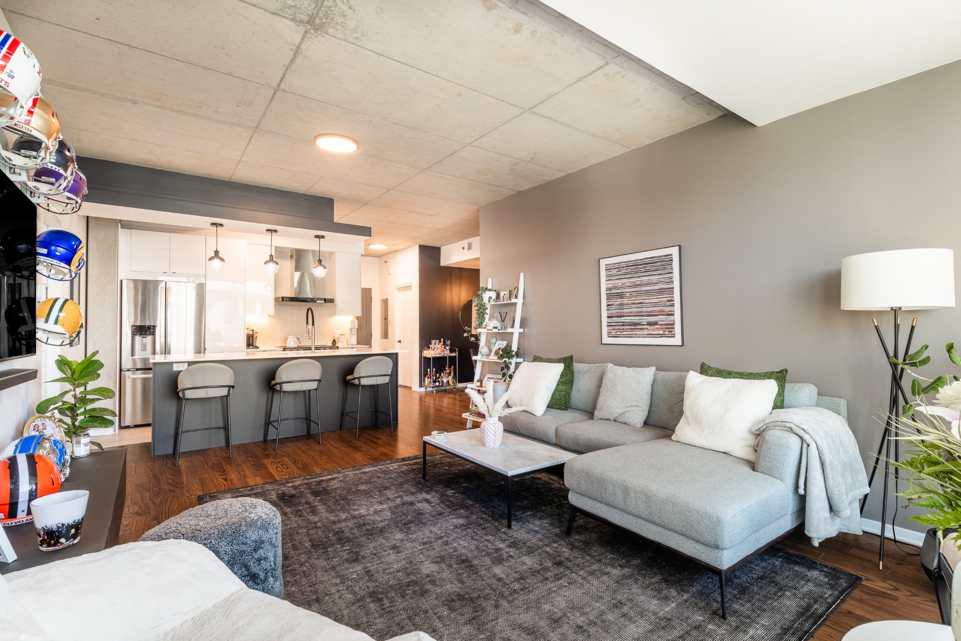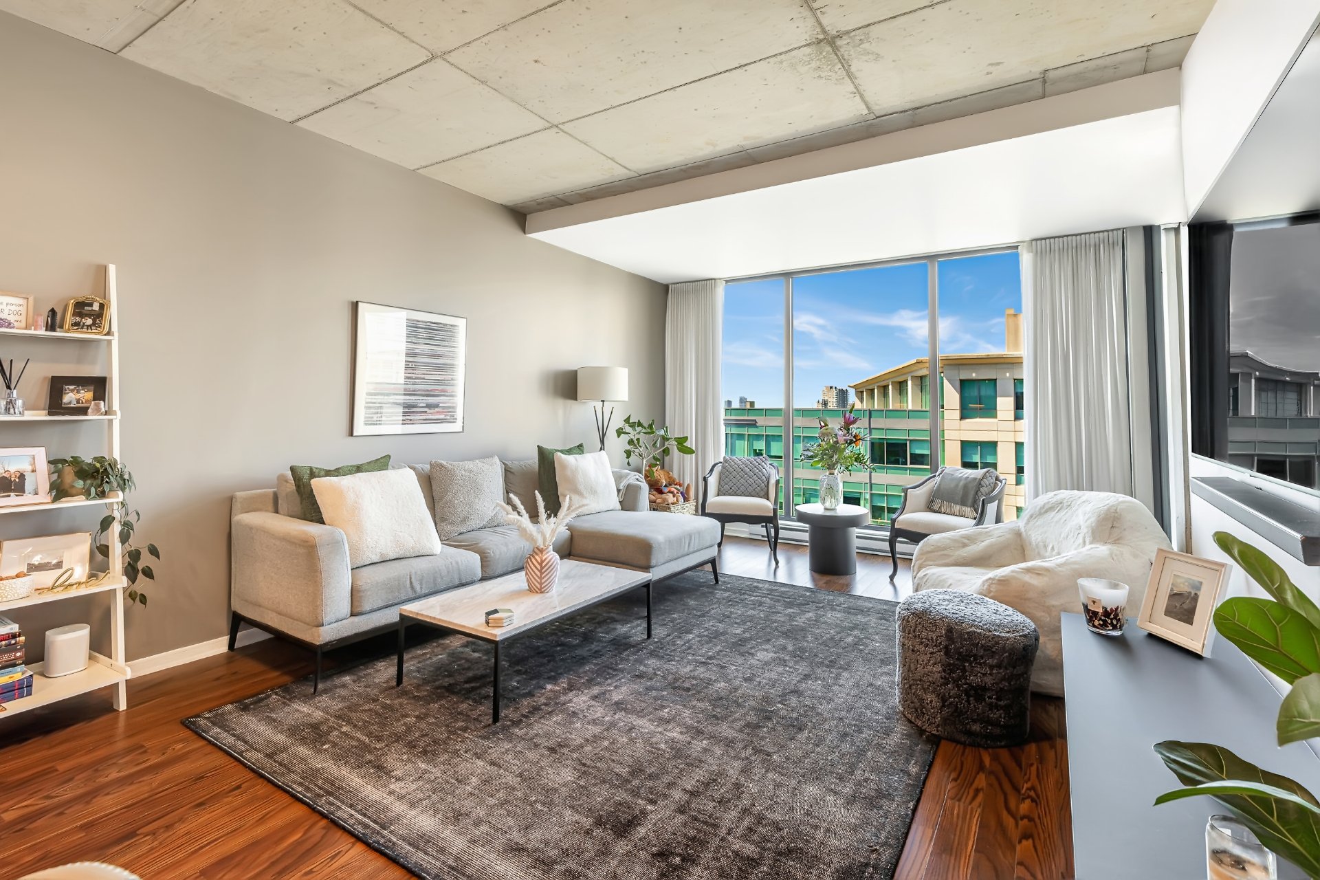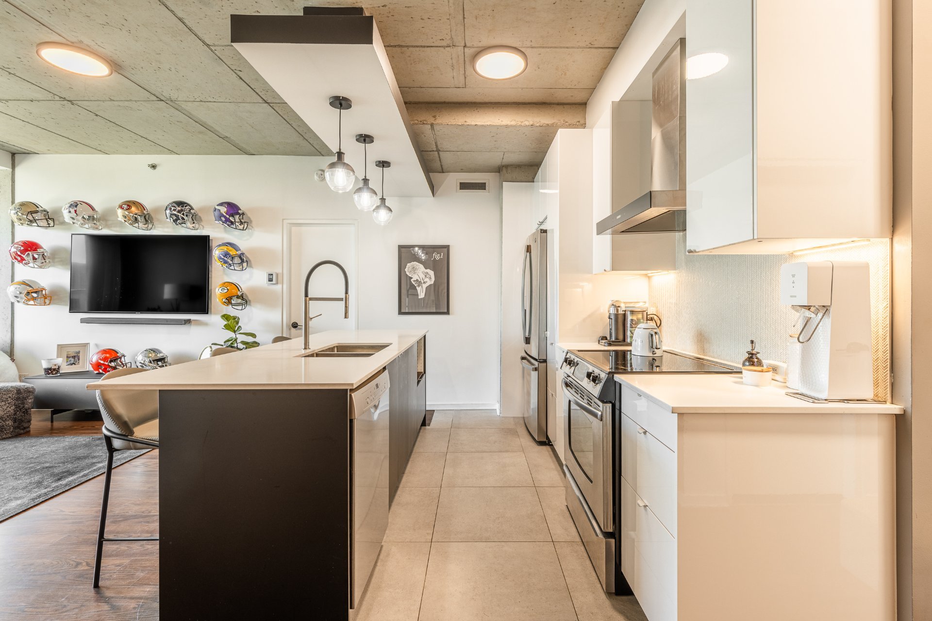 - Concept à aire ouverte avec plafonds en béton apparent de