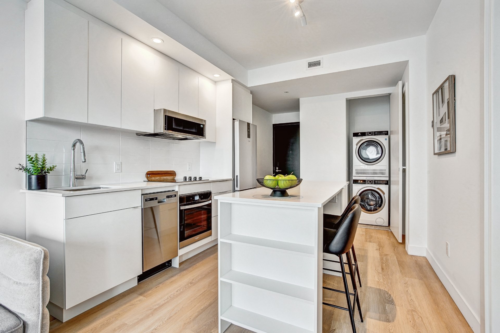Fridge, stove, dishwasher, washer/dryer, blinds, a/c, heating, hydro and internet