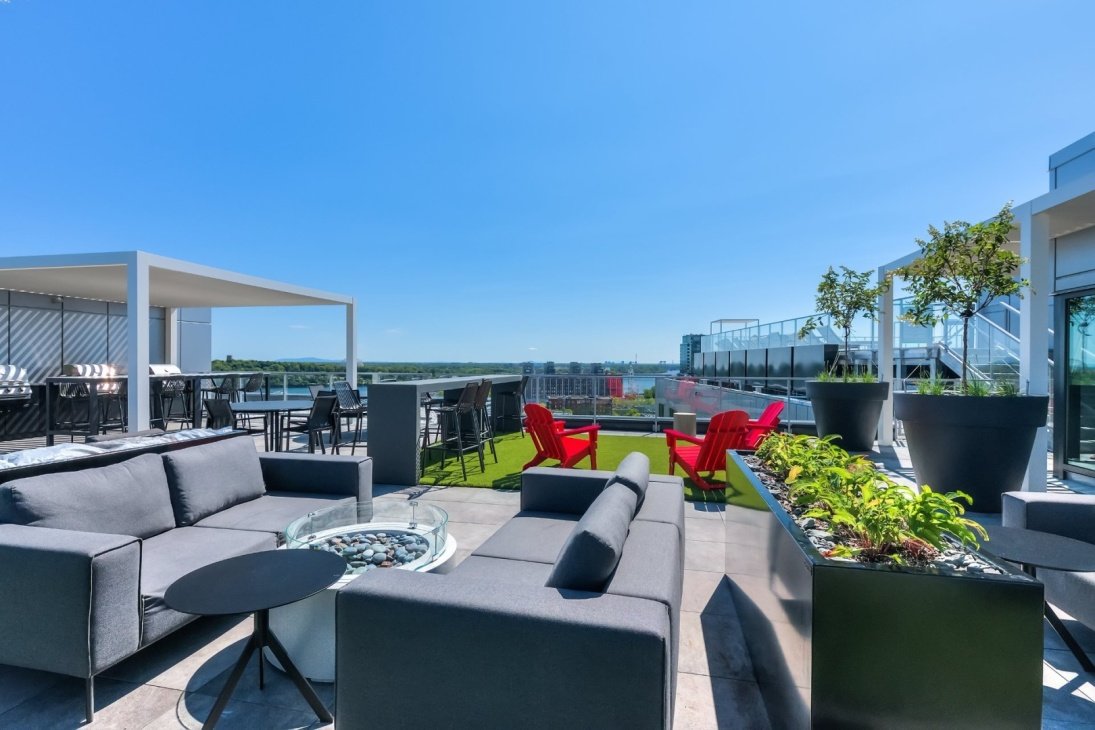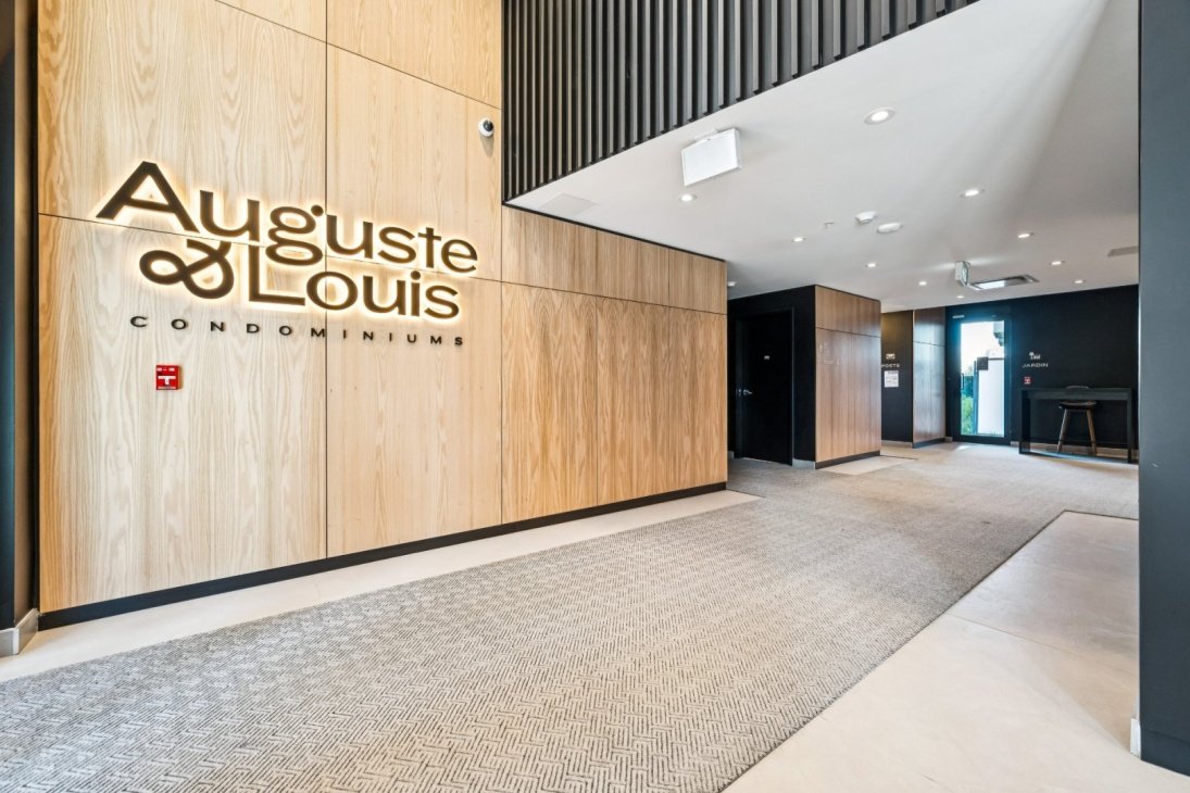 Available immediately. Located in the heart of Phase 1 of the Auguste & Louis complex, this bright condo offers a modern and functional living space. It features two bedrooms, each with its own adjoining bathroom, ensuring comfort and privacy. Quality finishes, a private balcony, in-unit washer and dryer, and wall-mounted air conditioning create a refined yet practical environment designed for everyday living. Residents benefit from an exceptional selection of common areas, including a rooftop terrace with open city views, an outdoor pool, a fully equipped fitness center, a landscaped interior courtyard, a community garden, bike facilities.