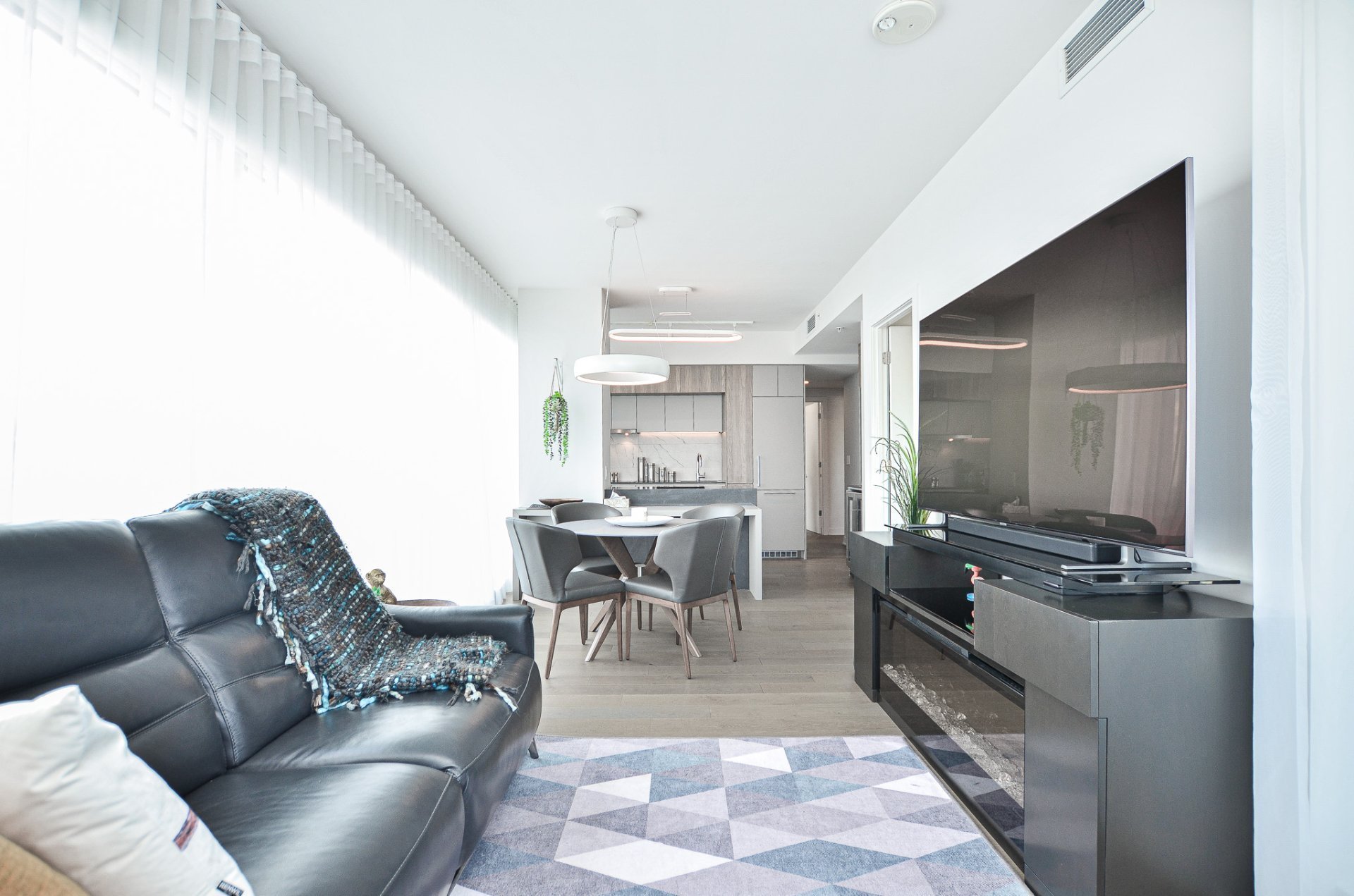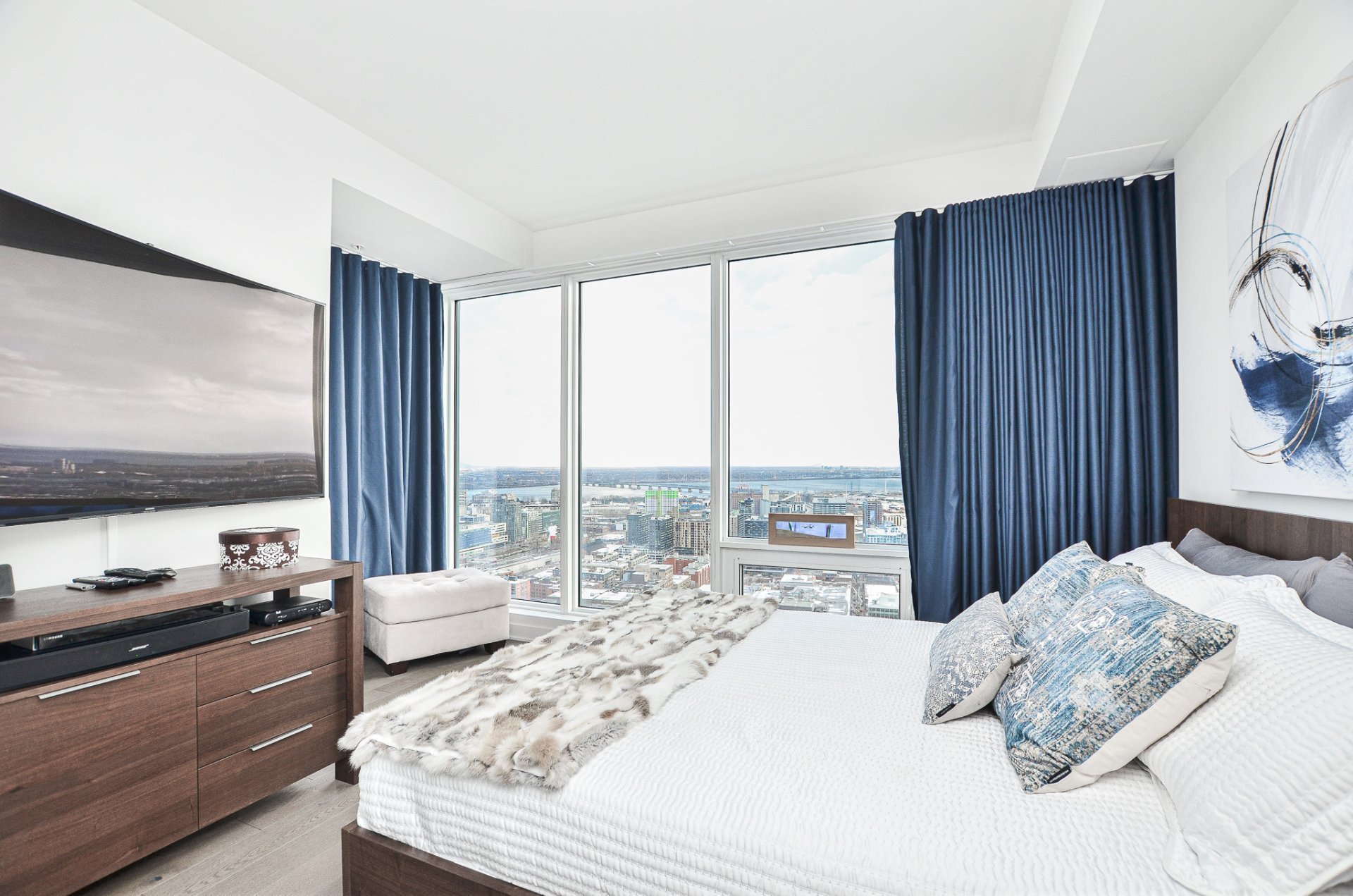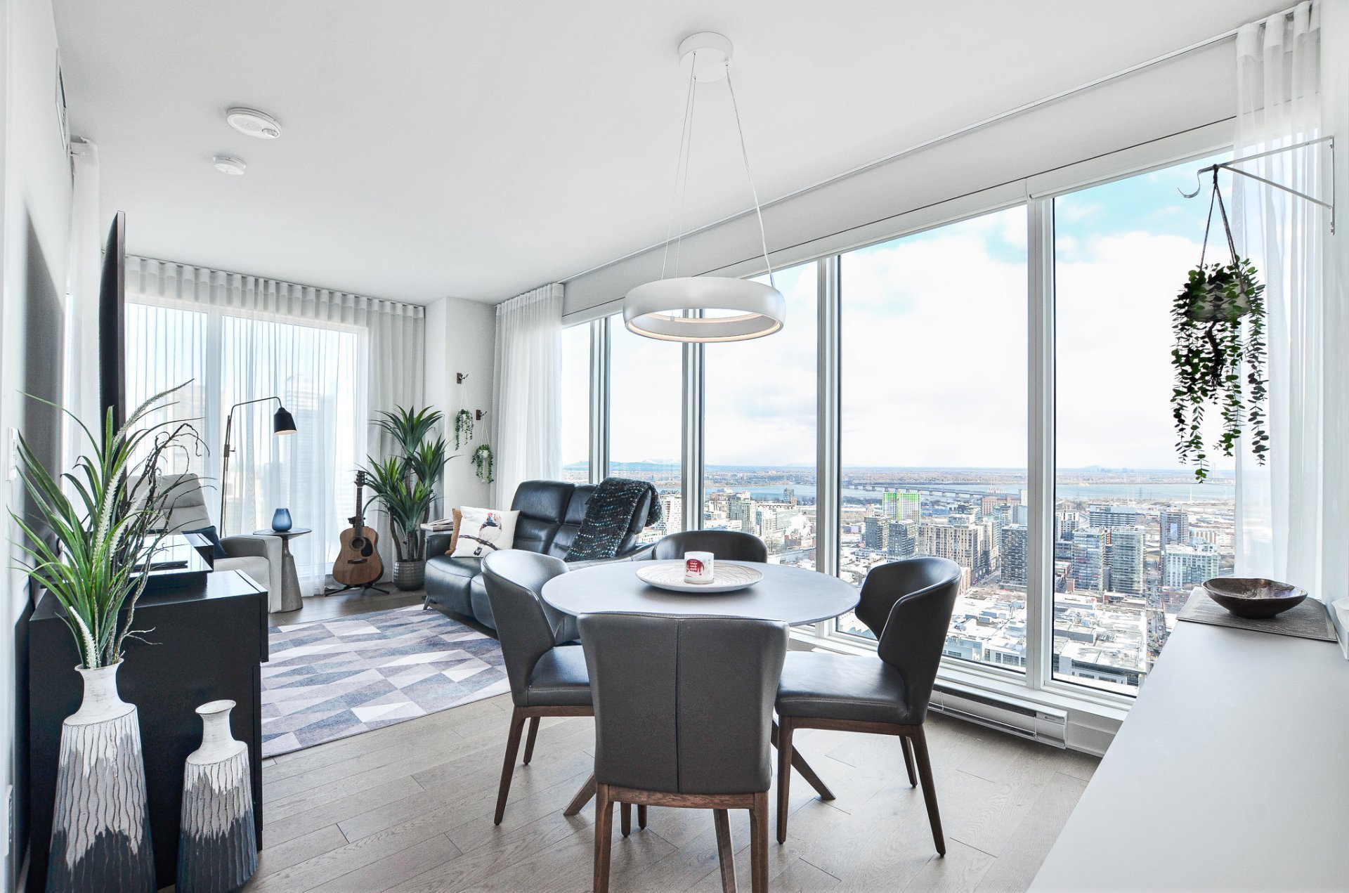 Bienvenue dans ce magnifique condo de 2 chambres, 2 salles de bain attenantes situé au 40e étage offrant une vue panoramique sur la ville et le fleuve. Dès que vous entrez, vous serez accueillis par un espace de vie lumineux, chaleureux et invitant. Tout meublé, électricité, chauffage, eau chaude, internet, stationnement intérieur et espace de rangement inclus. Location 12 mois, flexible, minimum 32 jours.