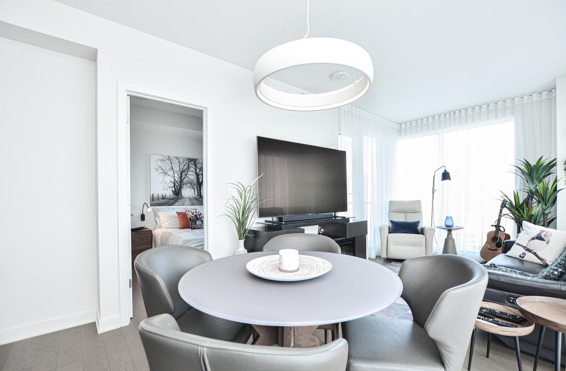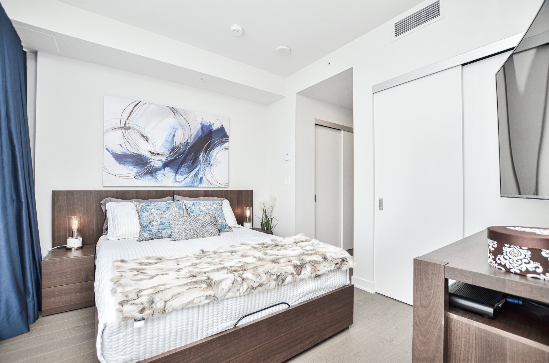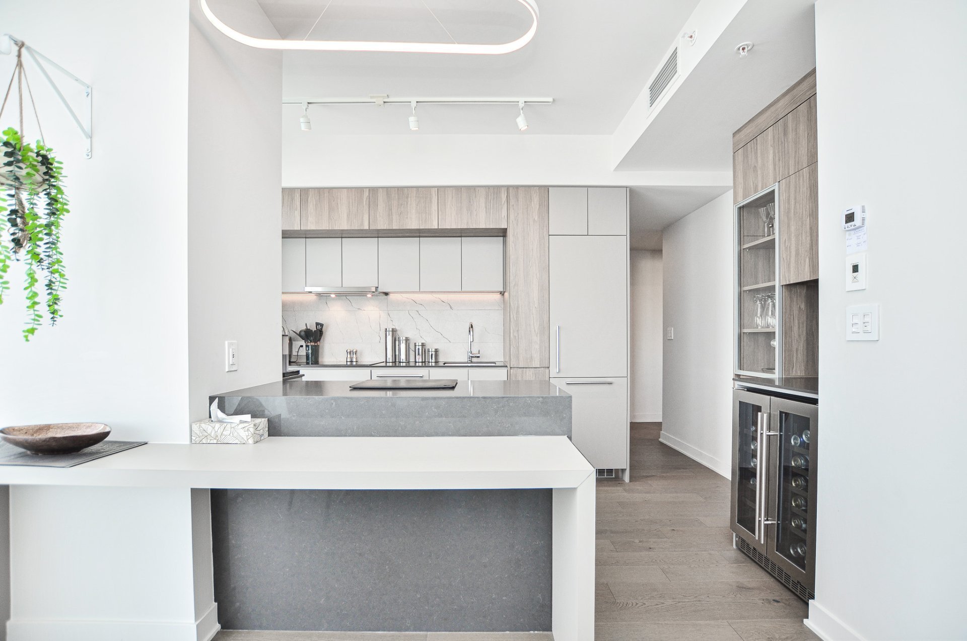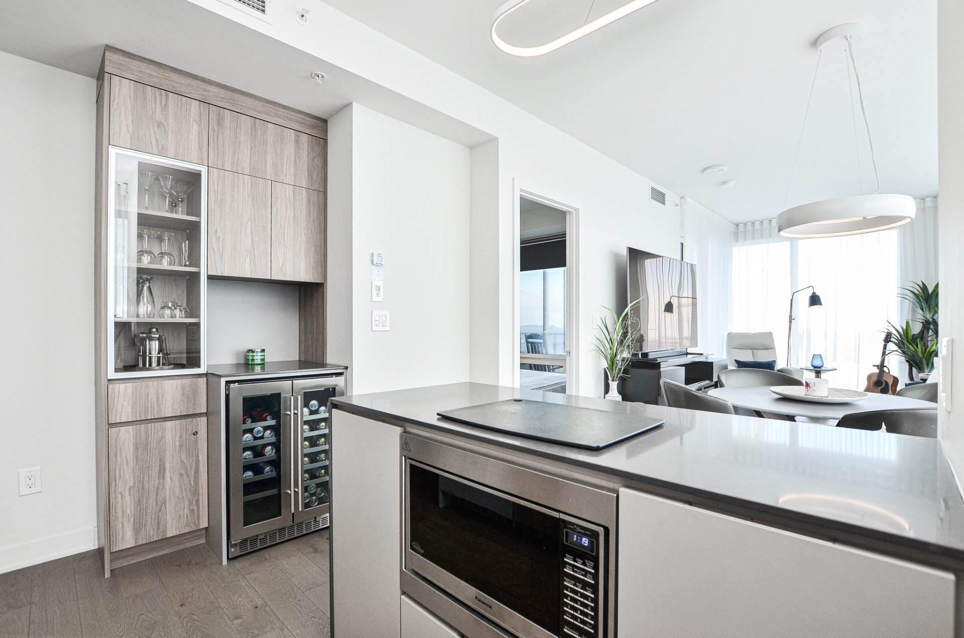 Bienvenue dans ce magnifique condo de 2 chambres, 2 salles de bain attenantes situé au 40e étage offrant une vue panoramique sur la ville et le fleuve. Dès que vous entrez, vous serez accueillis par un espace de vie lumineux, chaleureux et invitant. Tout meublé, électricité, chauffage, eau chaude, internet, stationnement intérieur et espace de rangement inclus. Location 12 mois, flexible, minimum 32 jours.