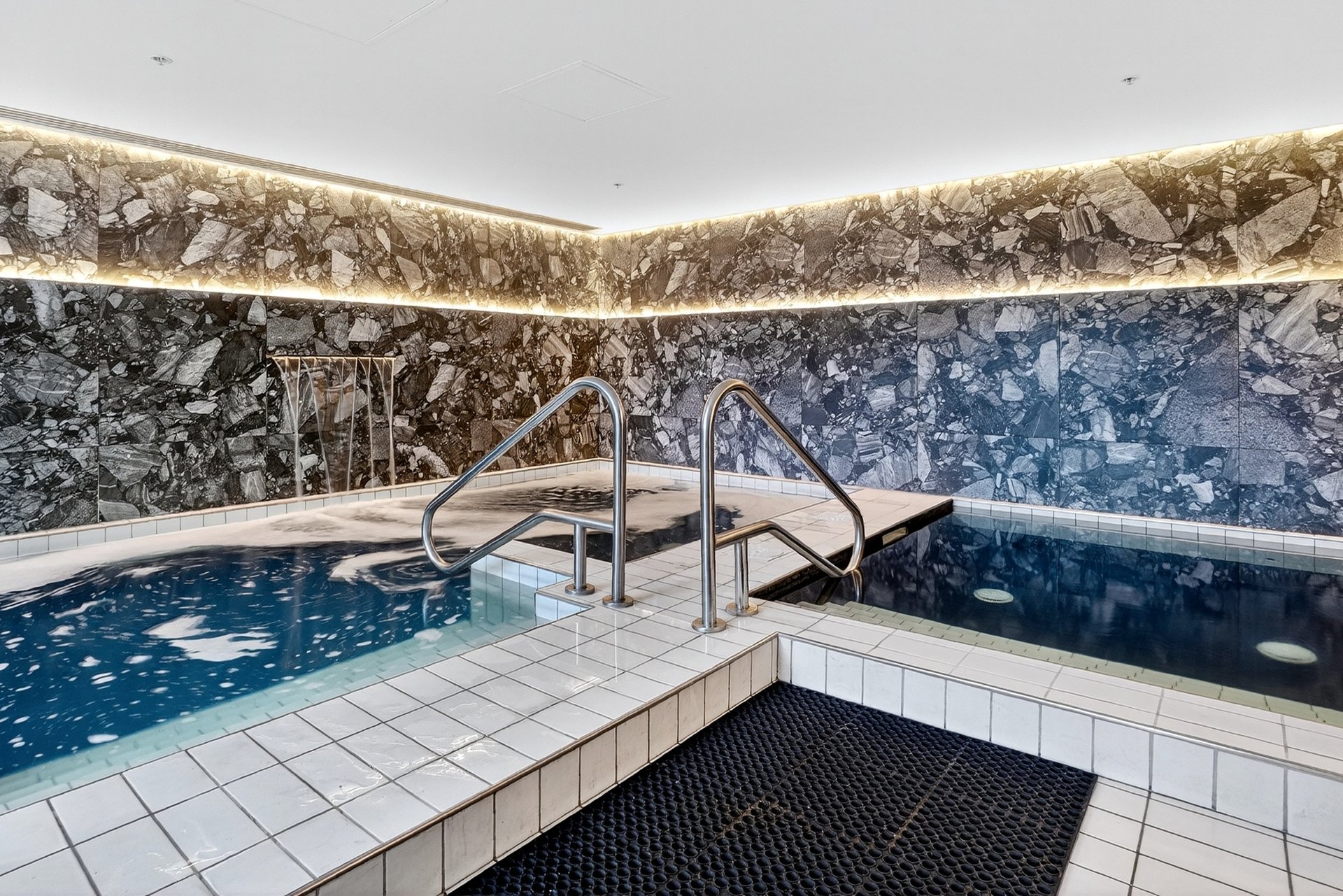 Terrasse sur le toit, Espace de stationnement pour visiteur, Spa, Espace de rangement intérieur, Sauna, Piscine intérieure, Piscine extérieure, Salle d'exercice, Buanderie, Balcon/Terrasse, Aires communes