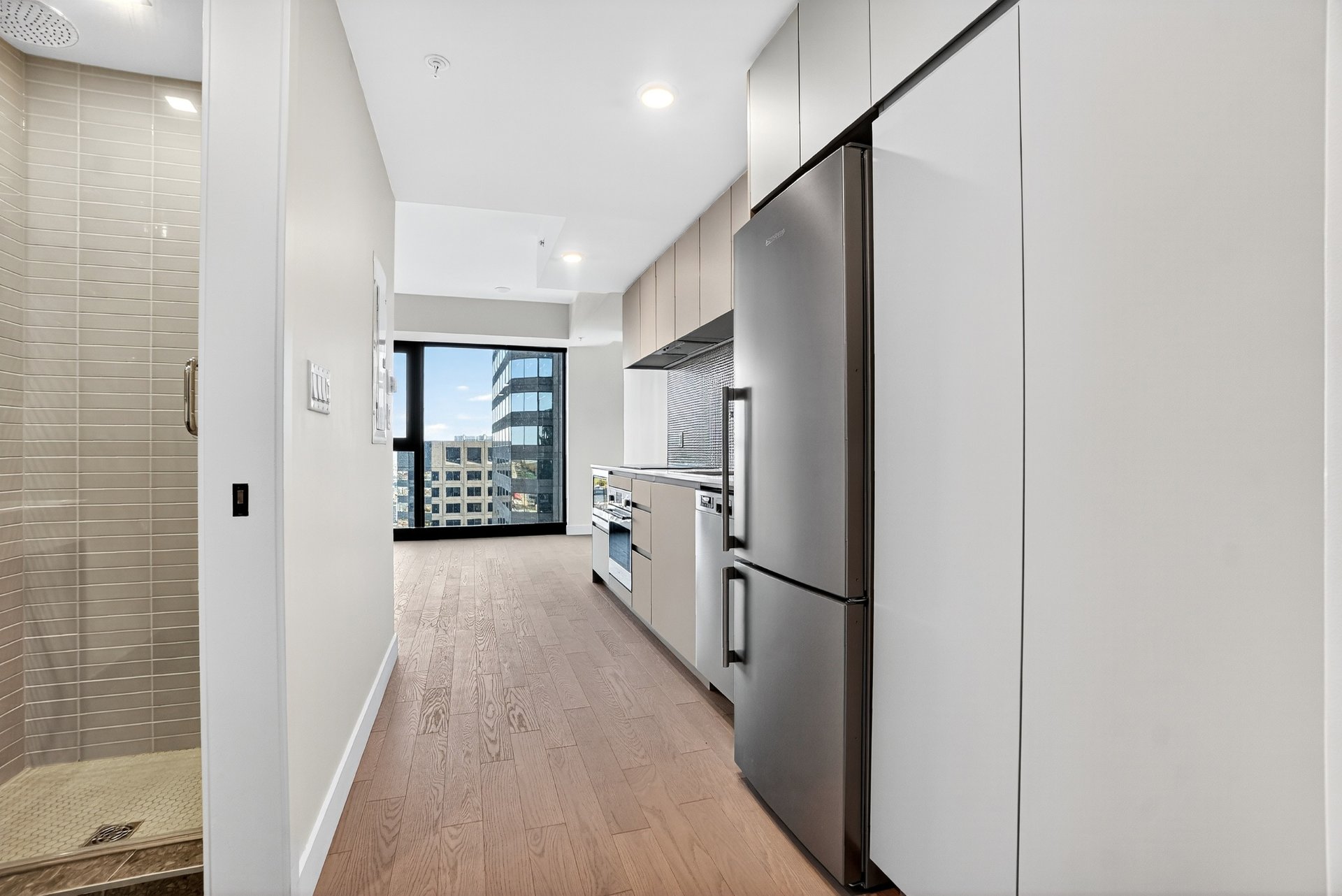 cuisine moderne et épurée, une salle de bain élégante ainsi