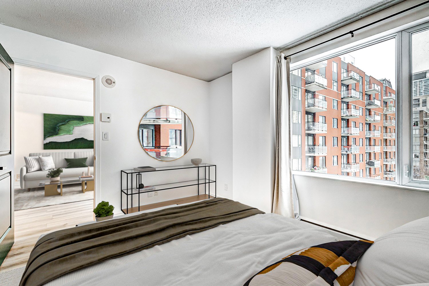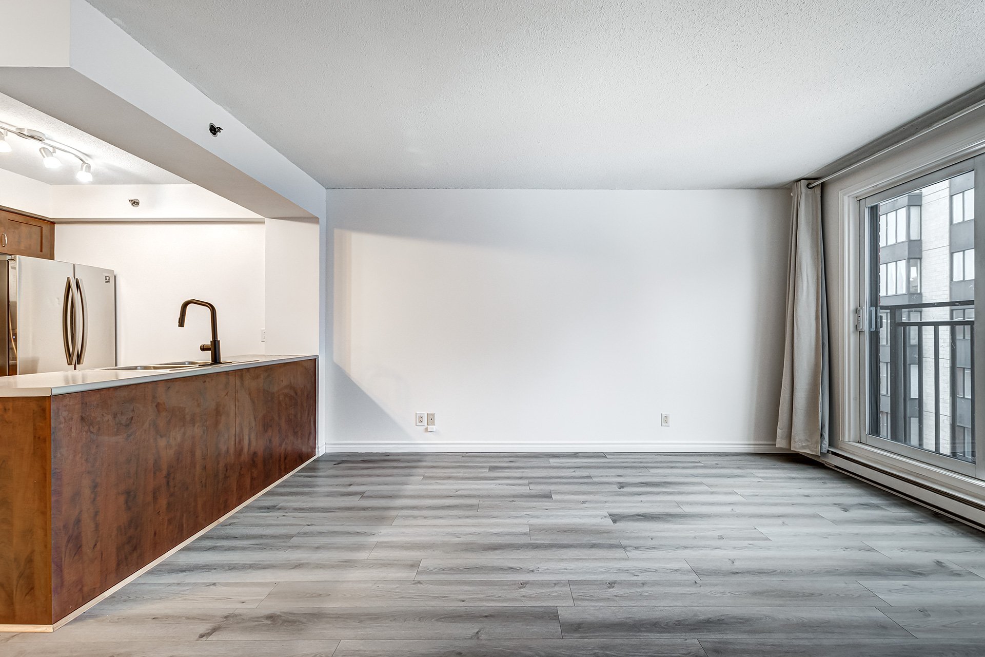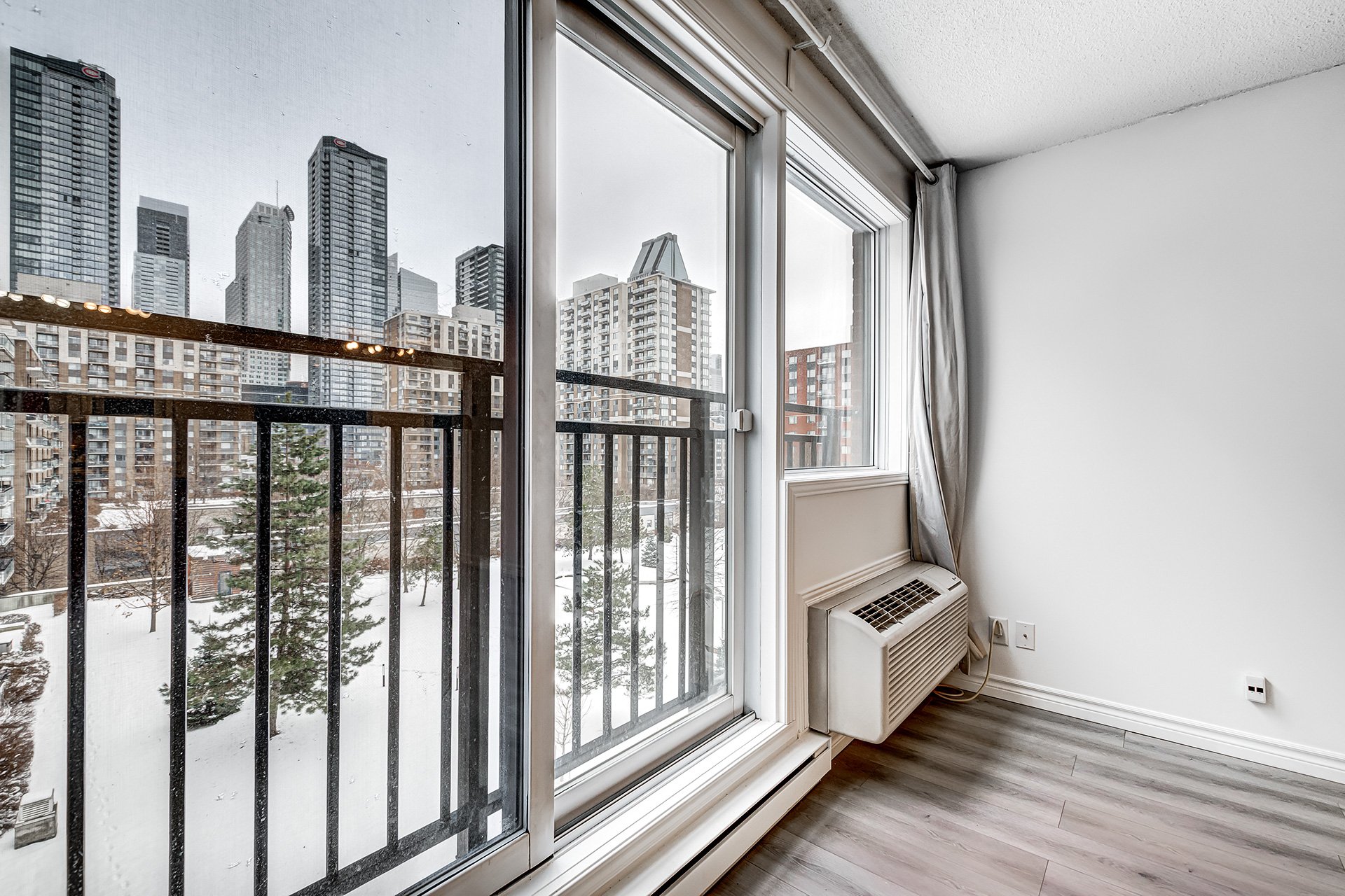 Bright and well-maintained one-bedroom apartment for rent, offering views of a peaceful inner courtyard as well as unobstructed views of downtown. Located in the prestigious Terrasses Windsor complex, just steps from the Bell Centre, ÉTS, grocery stores, cafés, restaurants, and all essential services. Strategically located within walking distance of Lucien-L'Allier and Bonaventure metro stations, commuter trains, and the REM. Concrete construction, air conditioning, appliances included, access to a gym and landscaped courtyard. It is possible to rent an indoor parking space in the building for approximately $150.