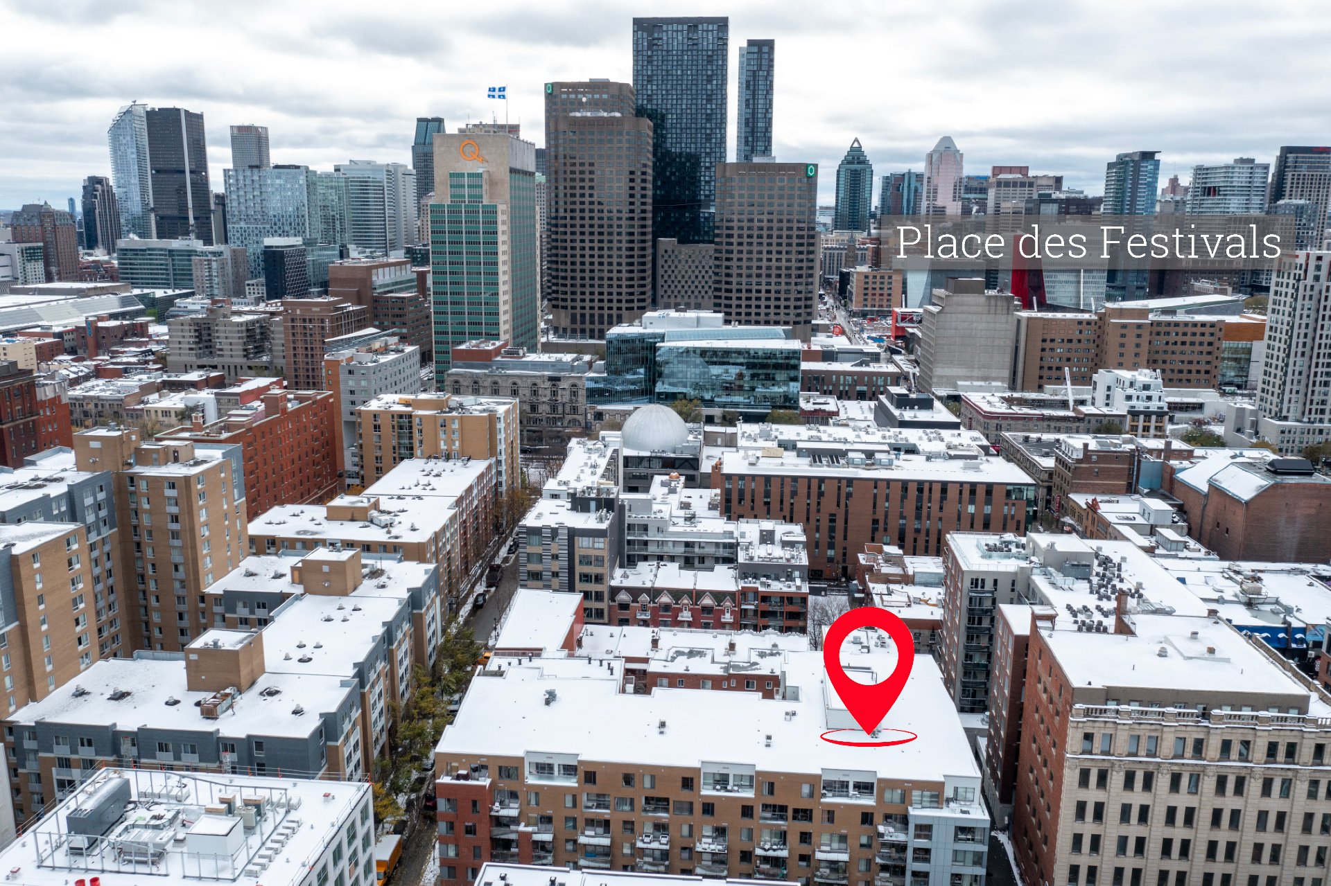 Condo moderne 1 chambre au coeur du Quartier des spectacles, avec orientation NE, grandes fenêtres et aire ouverte incluant comptoirs de quartz, grand garde-manger et coin bureau. Chambre fermée avec walk-in, laveuse/sécheuse, A/C et rangement privé. À quelques pas du CHUM, des métros Saint-Laurent et Berri-UQÀM, des universités, cafés, épiceries, salles de spectacle, festivals et ville souterraine. Construit en 2013 et loué 1 691 $/mois jusqu'en juin 2026.