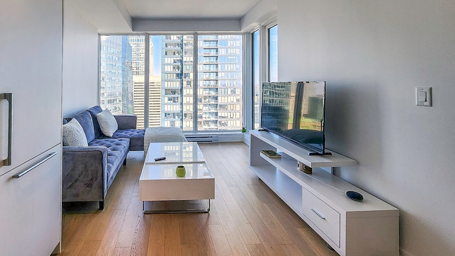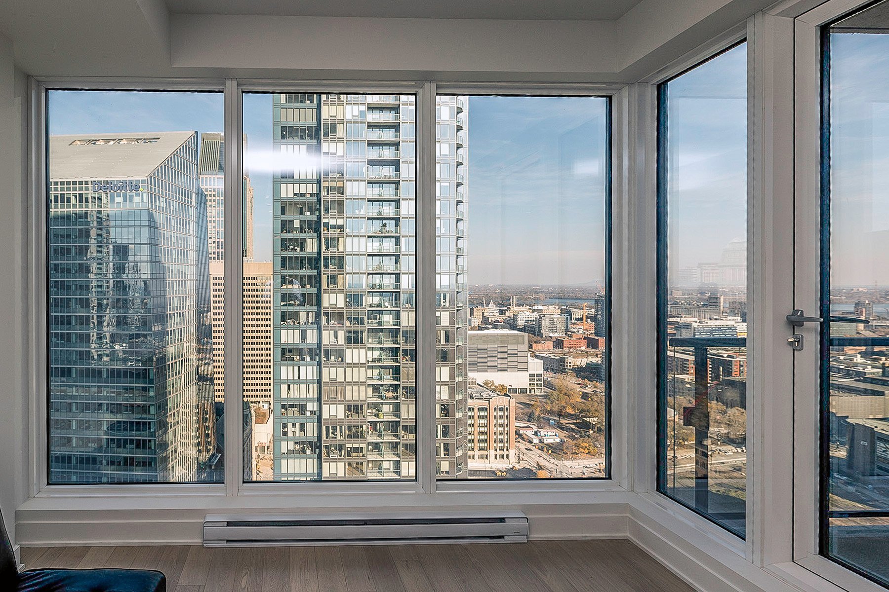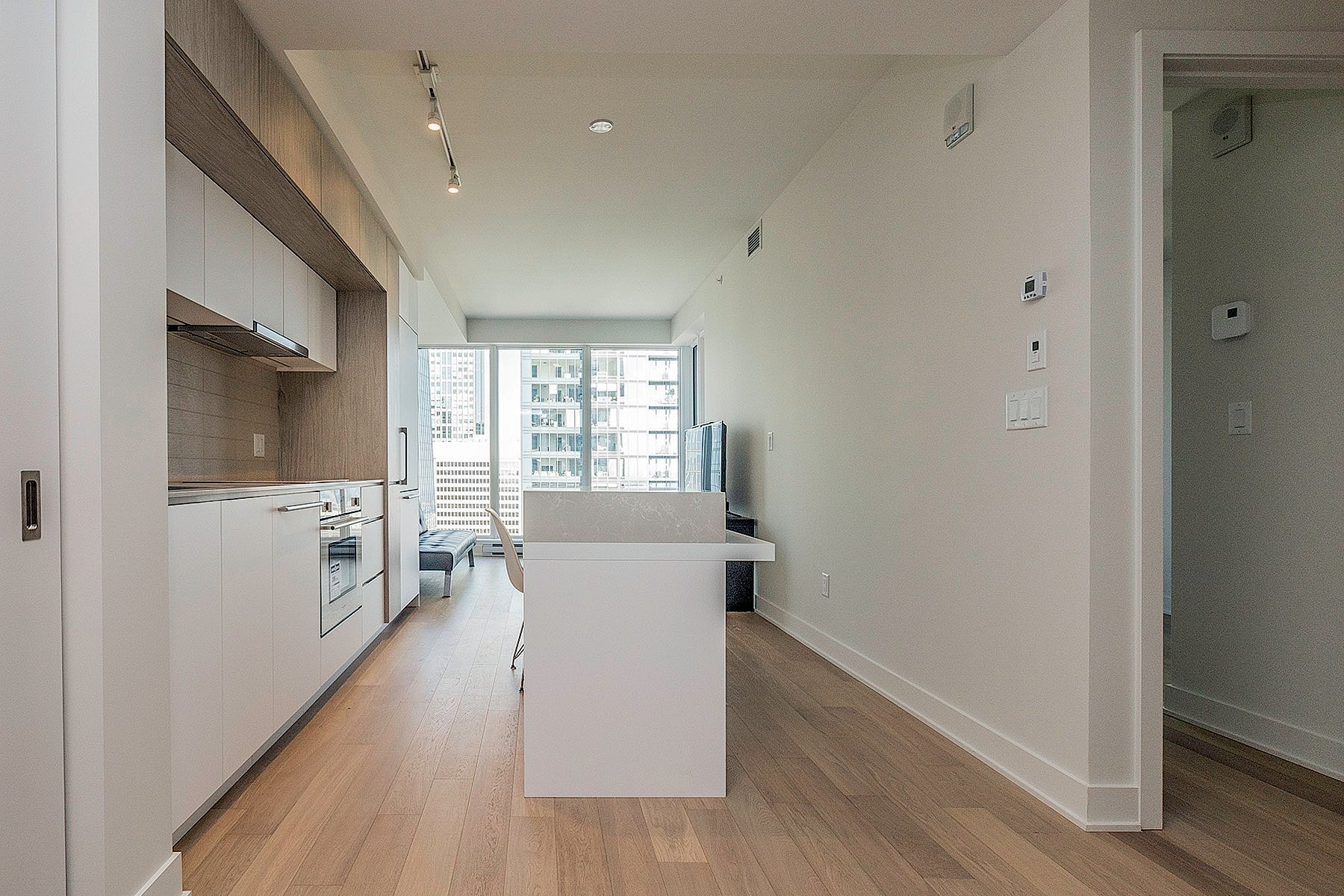 TDC3 33e étage, plafonds de 9', vue exceptionnelle! Condo moderne avec 1 chambre à coucher + bureau fermé entièrement meublé. Balcon, électros encastrés & rangement inclus. Orientation Est. Espaces communs exceptionnels: piscine, spa, sauna, terrasse, gym, salle de jeux, Skylounge, sécurité 24h. Pour occupation à partir du 1 février. Aucune autre date ne sera considérée.