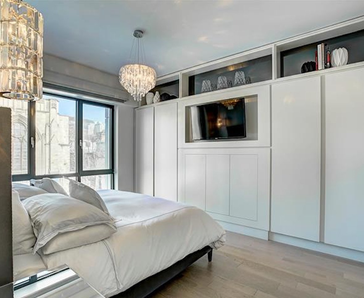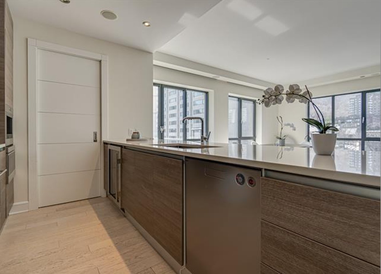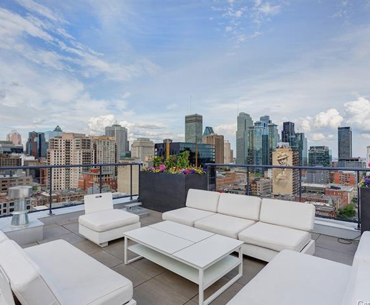 Luxurious condo located in the ORO building in the heart of the Mille Carré Doré district. Corner unit, northwest facing, very bright thanks to its large windows, featuring a large fully-equipped kitchen, dining room and open-plan living room. The master bedroom has a walk-in closet and private bathroom. A second bedroom could be converted into an office. The unit also includes a 2nd bathroom. To complete this condo, enjoy a 300sq.ft. private terrace overlooking Sherbrooke Street and its architectural monuments. Comes with 2 indoor parking spaces.