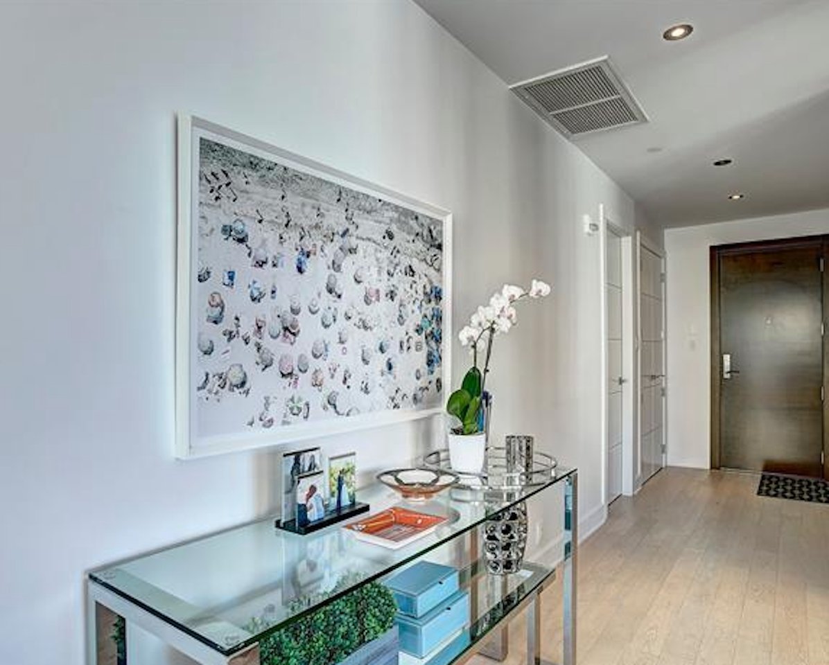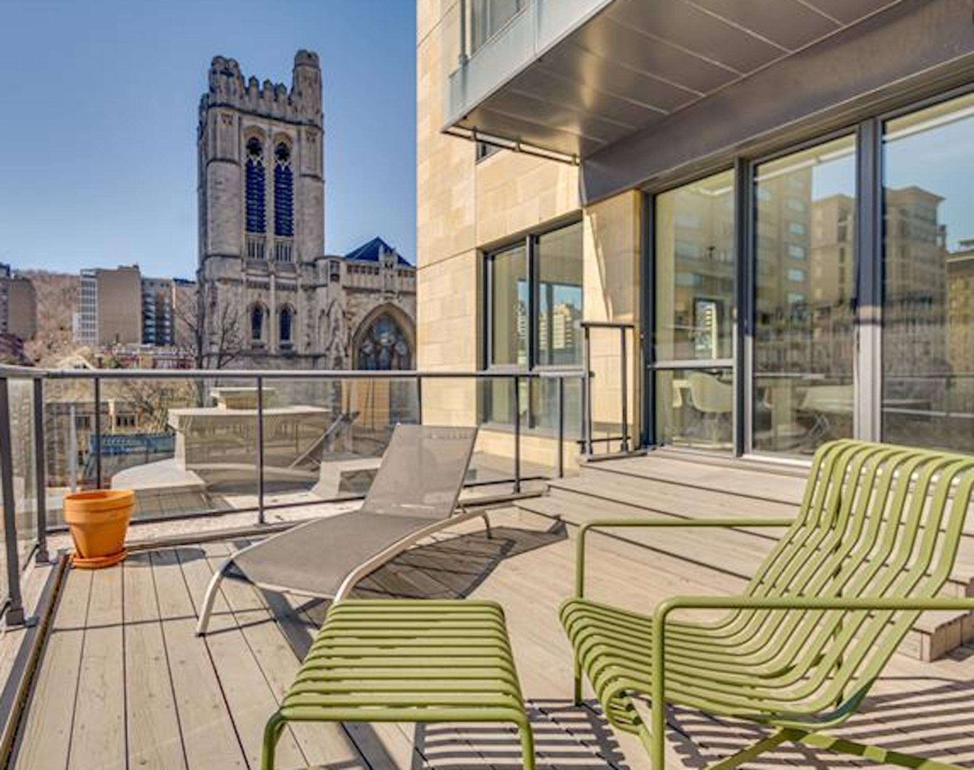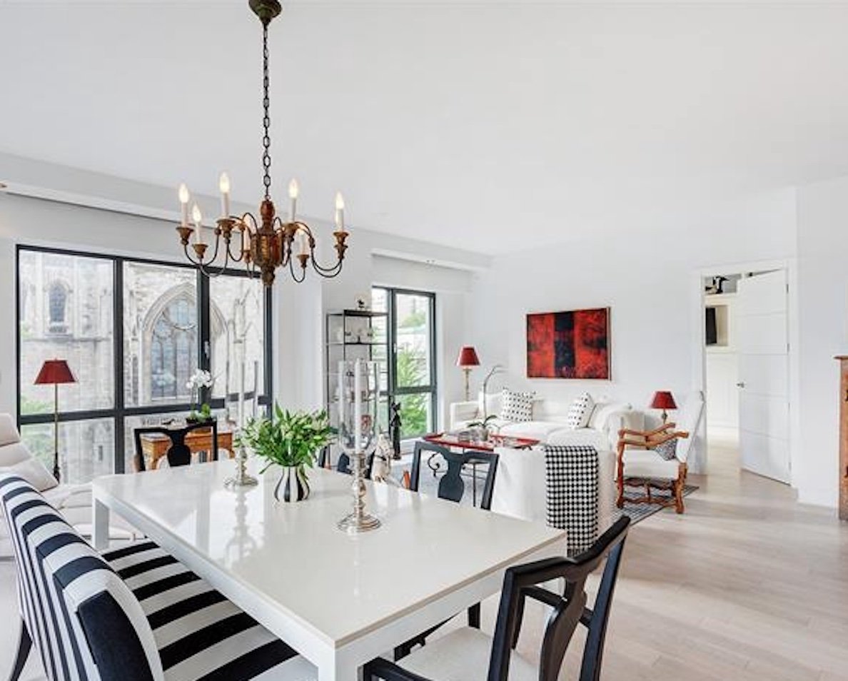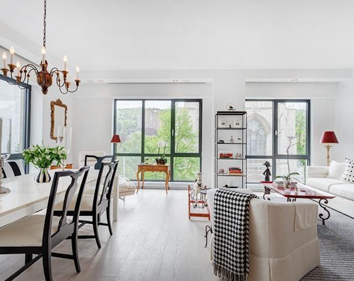 Luxurious condo located in the ORO building in the heart of the Mille Carré Doré district. Corner unit, northwest facing, very bright thanks to its large windows, featuring a large fully-equipped kitchen, dining room and open-plan living room. The master bedroom has a walk-in closet and private bathroom. A second bedroom could be converted into an office. The unit also includes a 2nd bathroom. To complete this condo, enjoy a 300sq.ft. private terrace overlooking Sherbrooke Street and its architectural monuments. Comes with 2 indoor parking spaces.