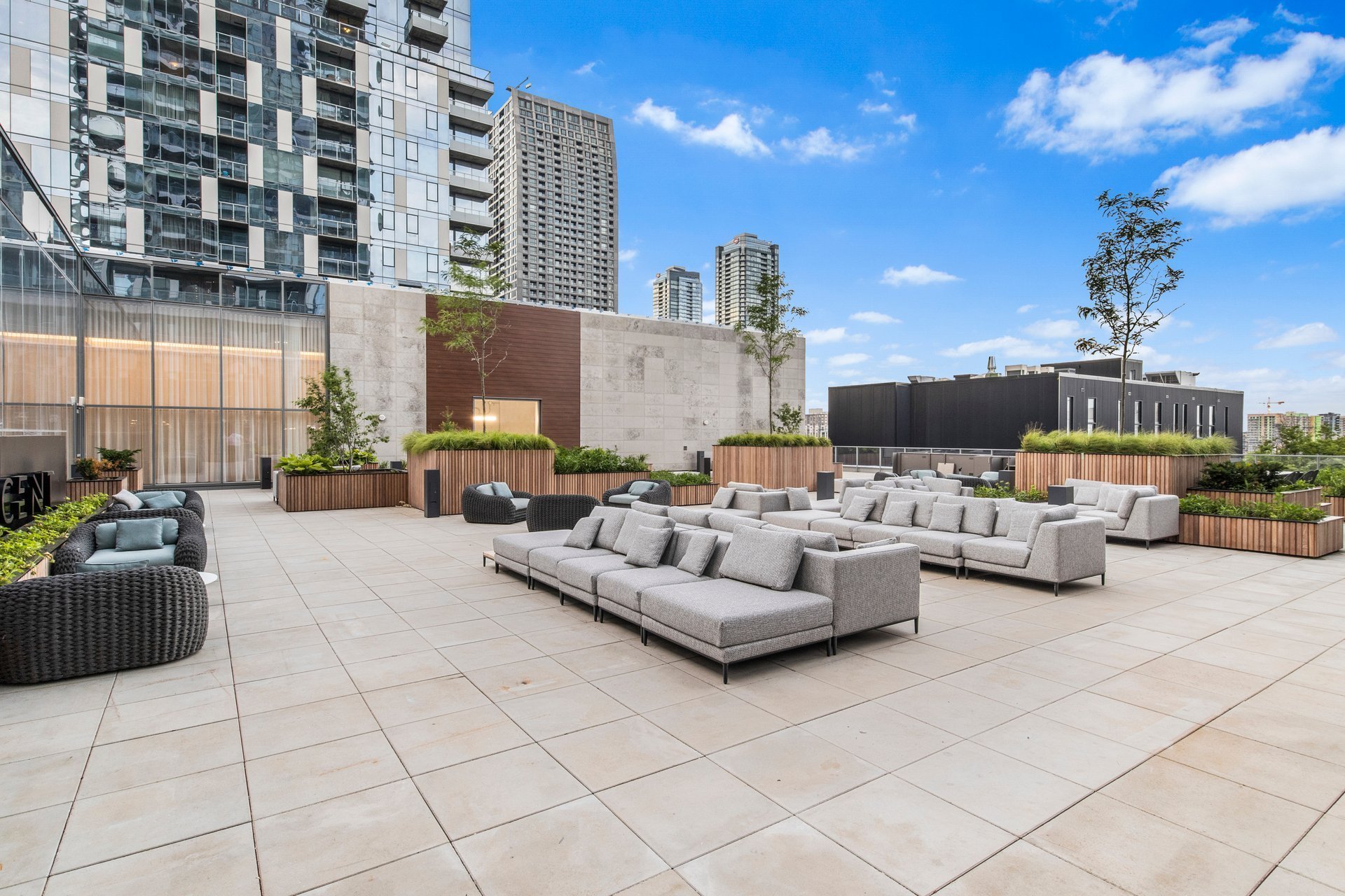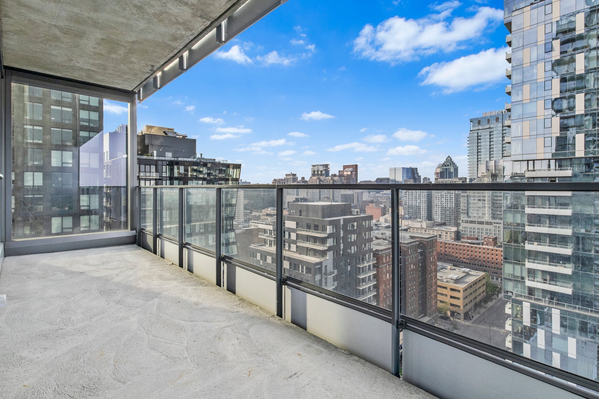 FULLY FURNISHED LUXURY CORNER UNIT with panoramic views of the city in new prestigious downtown high rise Quinzecent. PENTHOUSE PACKAGE upgrades (i.e. herringbone wood floors, brass fixtures, etc.). INCLUDED: furniture, light fixtures + fridge, stove, microwave, dishwasher, washer/dryer, heated bathroom floor, central air, large balcony + 1 locker. Amenities: 6000 sq ft terrace with cinema & fire pits + gym, lounge with fireplace, pool, sauna, yoga room, 24h security. Steps away from Concordia University, Bell Center, metro stations, shopping, restaurants. Parking is available for an extra $200/mth