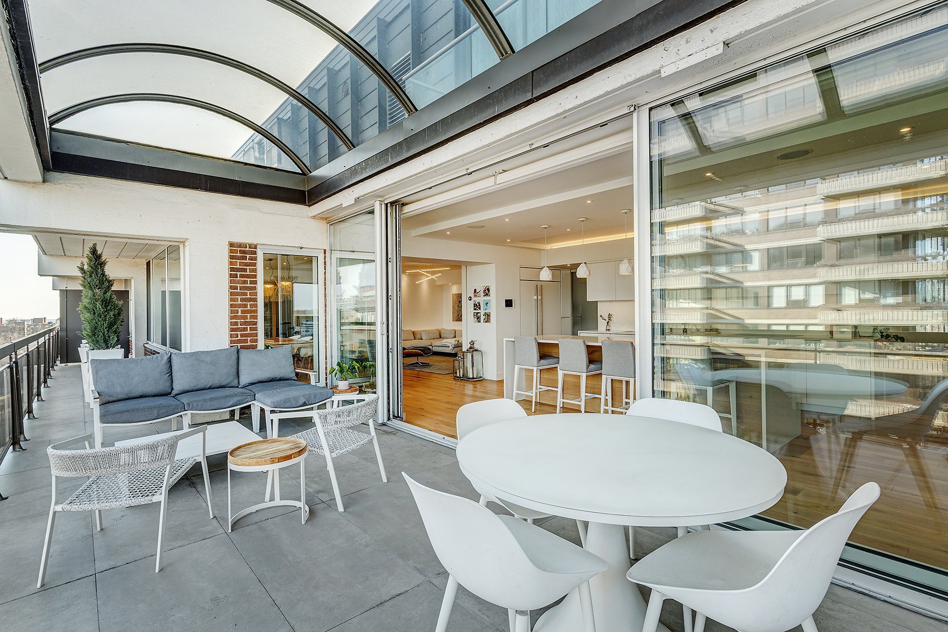 Bienvenue au 1545 Av du Docteur-Penfield, PH3. Entièrement rénové en 2018 après la fusion de deux unités, cette résidence luxueuse propose un design contemporain, une finition haut de gamme, et des matériaux de qualité. Le 11e étage accueille une cuisine moderne avec grand îlot, un espace de vie décloisonné baigné de lumière, une vaste terrasse aménagée, ainsi qu'une suite des maîtres avec balcon privé. Le 10e étage comprend deux chambres avec salles de bains attenantes, un coin télé, du rangement et un deuxième balcon. Escalier sur mesure, fenêtres, électricité, plomberie, Lutron, tout a été refait à neuf. Deux garages + deux casiers inclus.