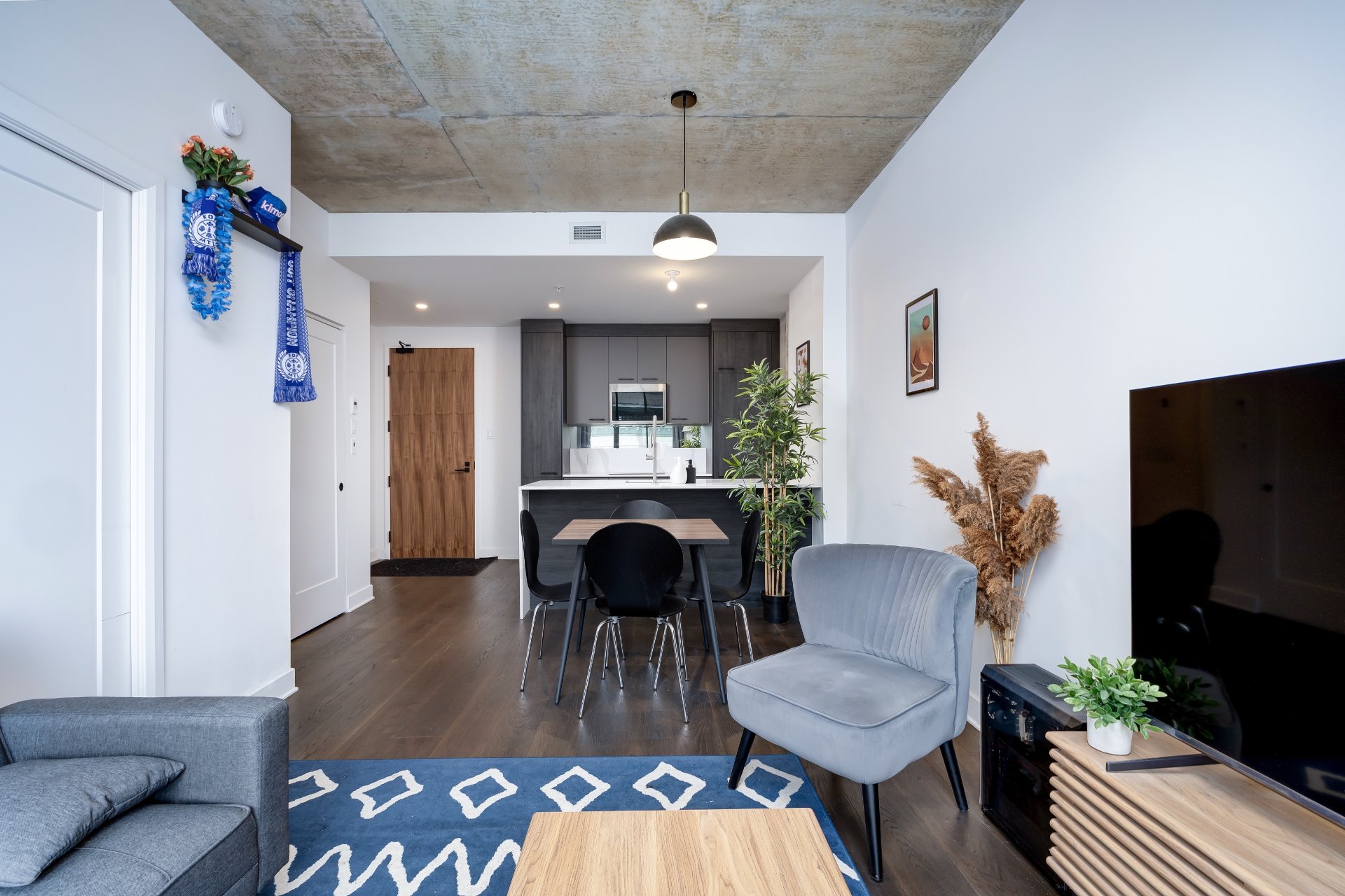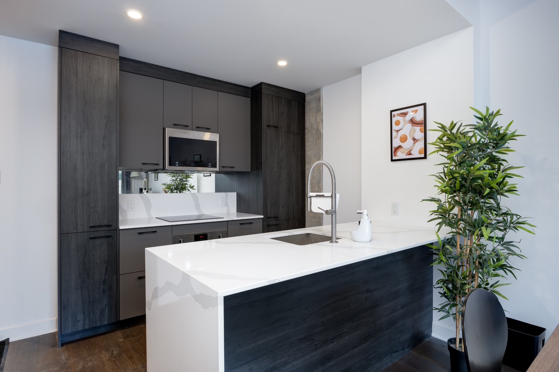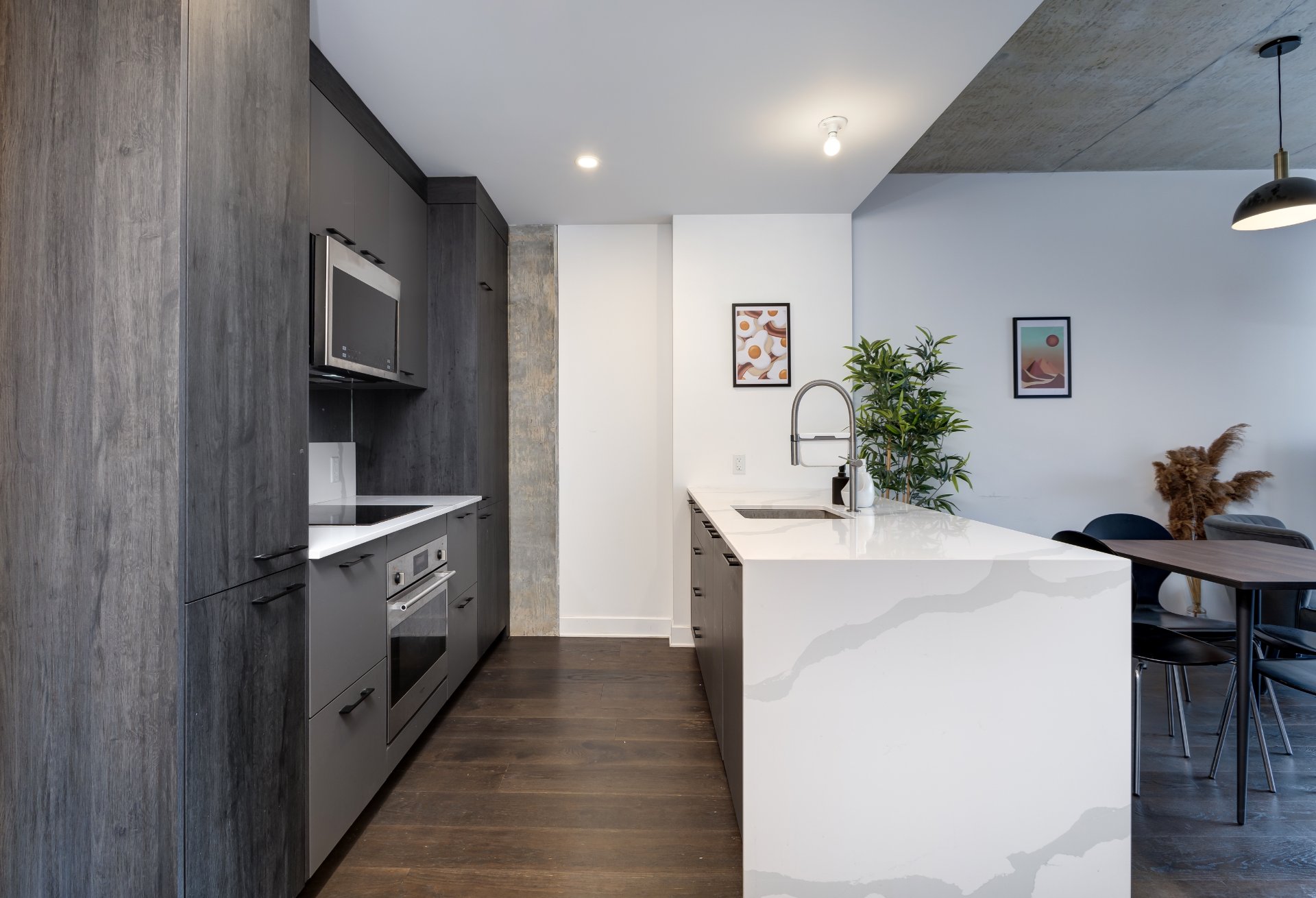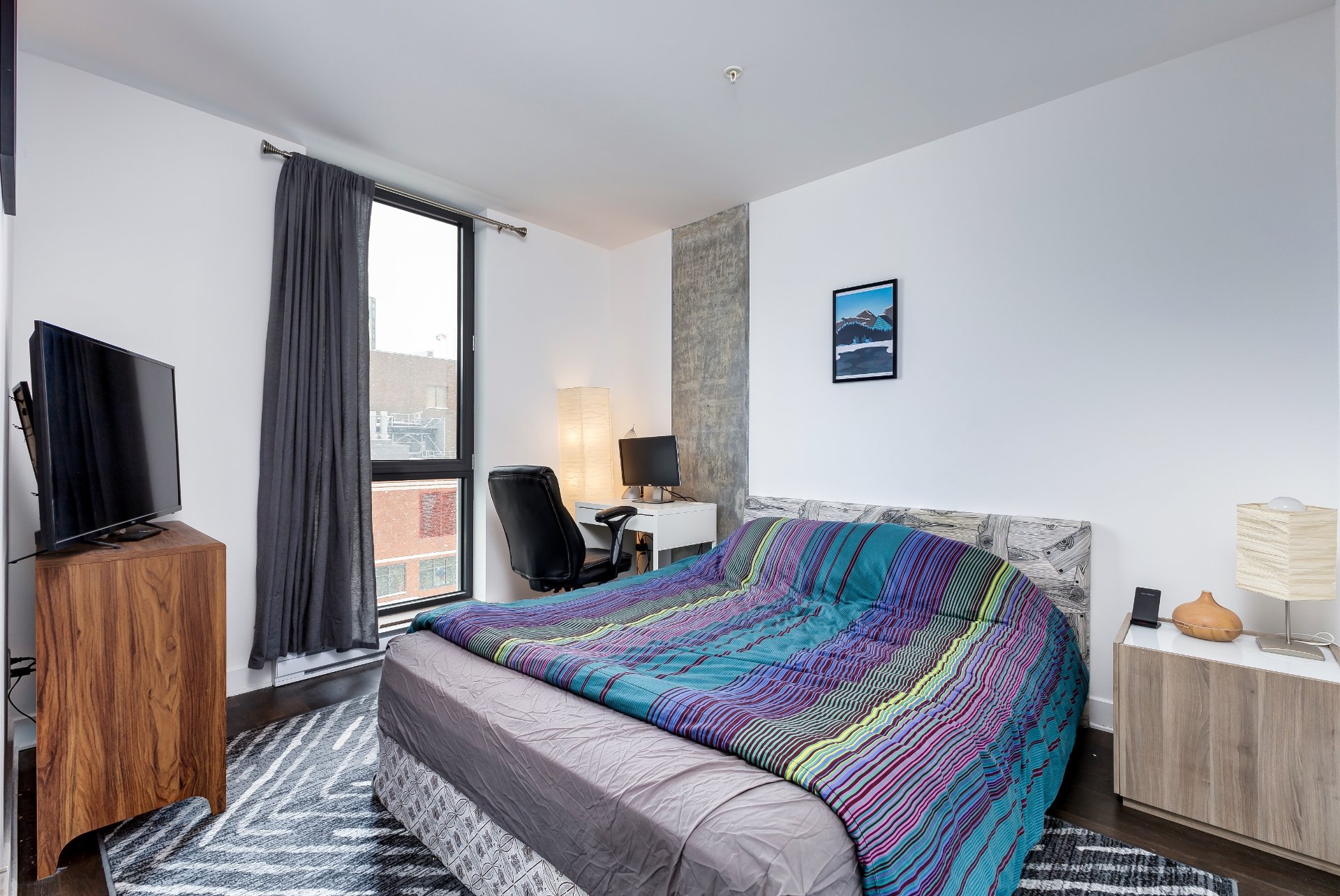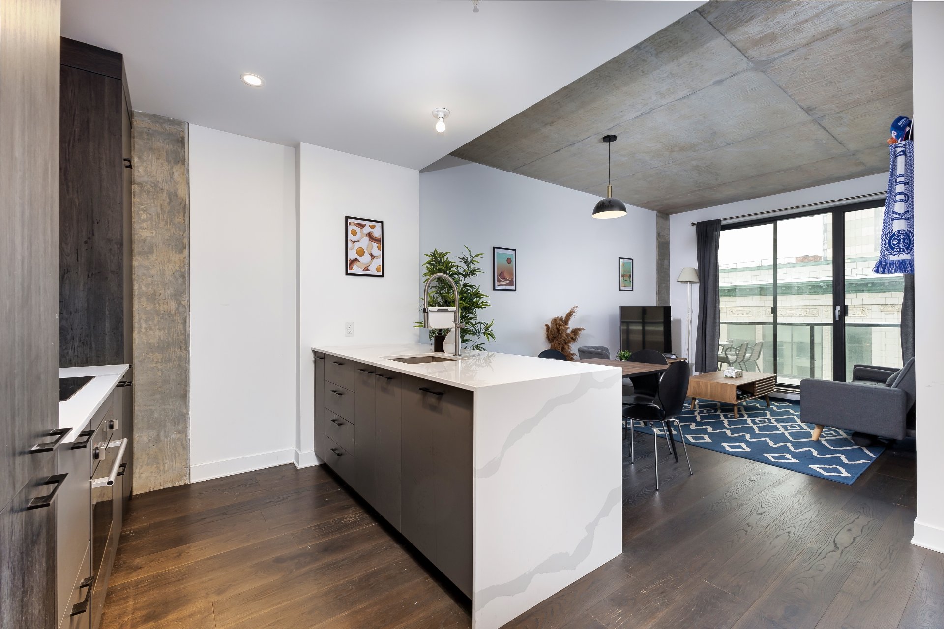 Belle unité lumineuse au 6e étage du Bourbon, un complexe résidentiel haut de gamme. Design bien pensé avec un salon baigné de lumière naturelle, salle à manger conviviale et superbe cuisine moderne deux tons avec îlot et multiples rangements. Chambre spacieuse avec grande fenêtre, salle de bain élégante avec douche vitrée et vanité double, espace buanderie pratique. Balcon privé. Vous aurez une terrasse sur le toit + piscine, salle de sport, et + encore. Situé dans le quartier animé du Village, avec un accès facile aux transports en commun et aux autoroutes!