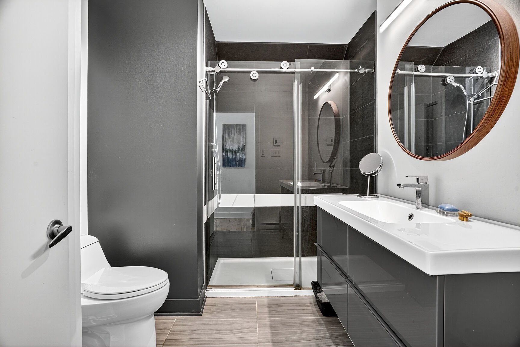 placard , salle de bain et douche vitrée indépendante .Une