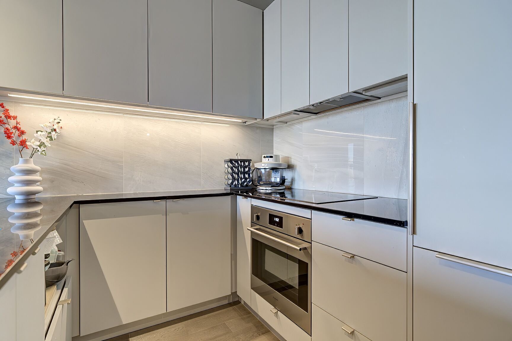 Cuisinière, hood, lave-vaisselle, réfrigérateur, laveuse, sécheuse