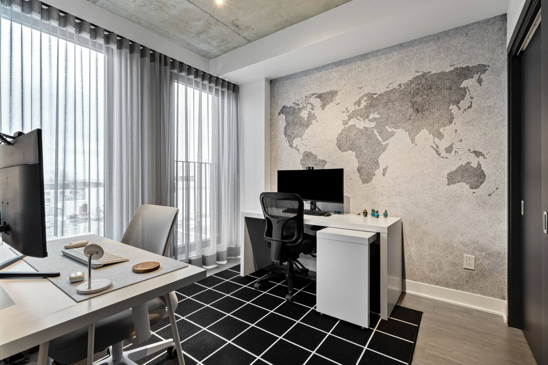 Superbe condo de 2 chambres au 6e étage du projet Esplanade Cartier, situé dans Ville-Marie. Unité au design contemporain avec finitions haut de gamme, aire ouverte conviviale et cuisine moderne (électroménagers inclus). Chambre principale avec walk-in, 2e chambre de bonne dimension et pièce polyvalente pouvant servir de bureau. Stationnement intérieur (prise pour recevoir une borne déjà présente sur place) et rangement inclus. Profitez de la terrasse sur le toit avec piscine et BBQ, du gym et du lobby avec espace de travail. Emplacement idéal, à deux pas du Village, du métro et du pont Jacques-Cartier!