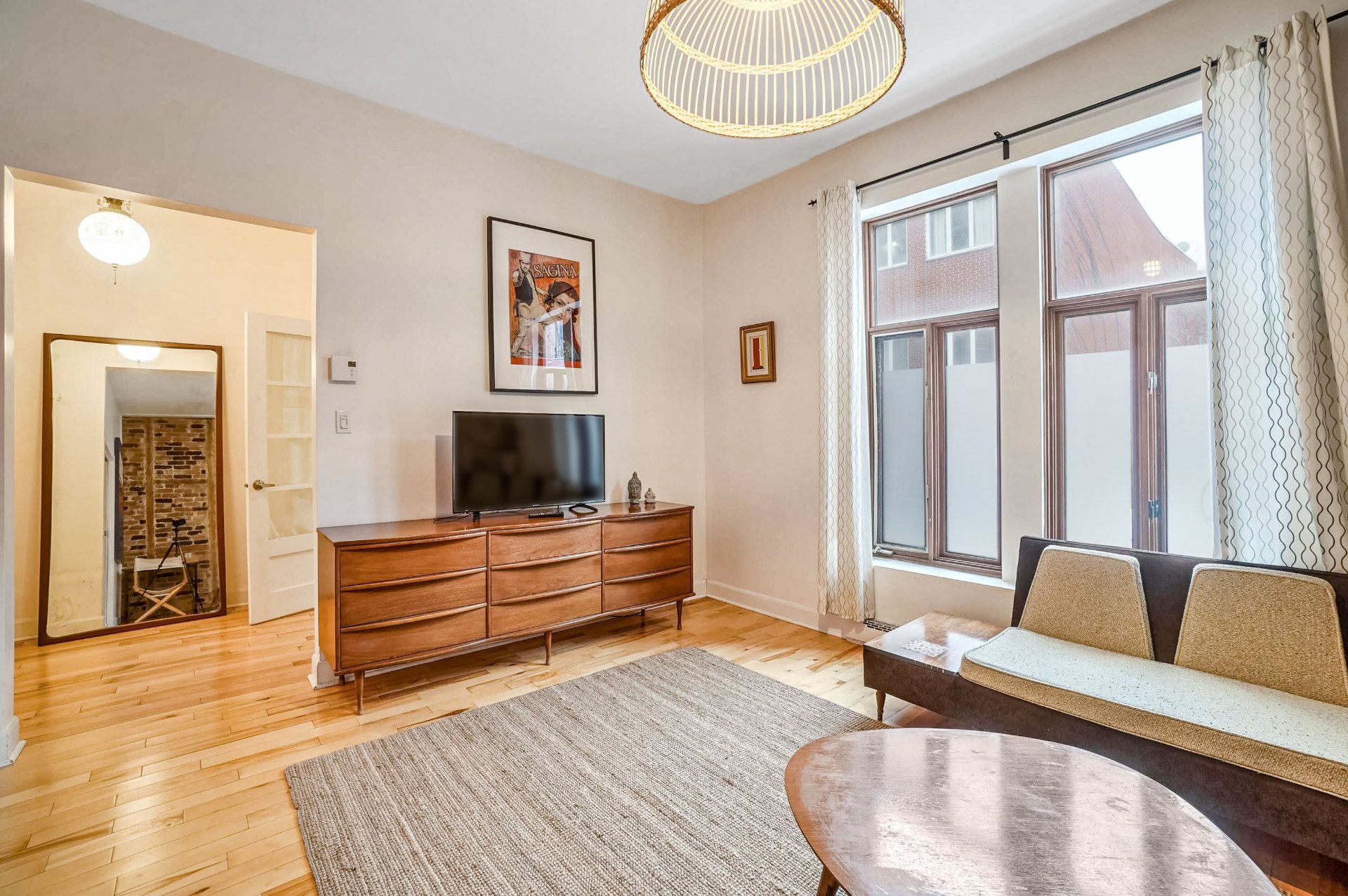 This bright and fully furnished apartment will charm you in many ways! It offers two bedrooms, access to the backyard (shared with the upstairs neighbors), a renovated kitchen and a large living room with a beautiful exposed brick wall. The price includes internet! Located downtown, on the edge of the Plateau Mont-Royal, you will be in the center of the action, within walking distance of Boulevard St-Laurent (restaurants, cafes, shops and grocery stores). Not to mention the St-Laurent metro station 500 meters away and Mount Royal about a fifteen-minute walk away. ***Available January 1st 2026***