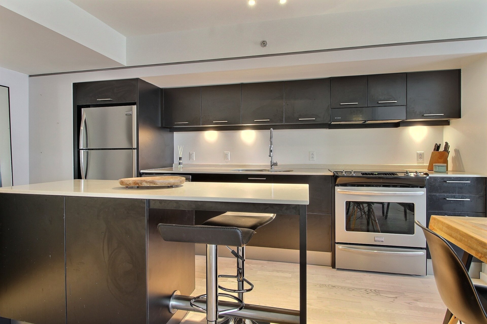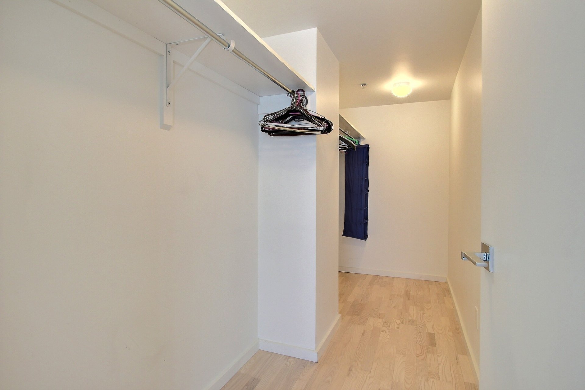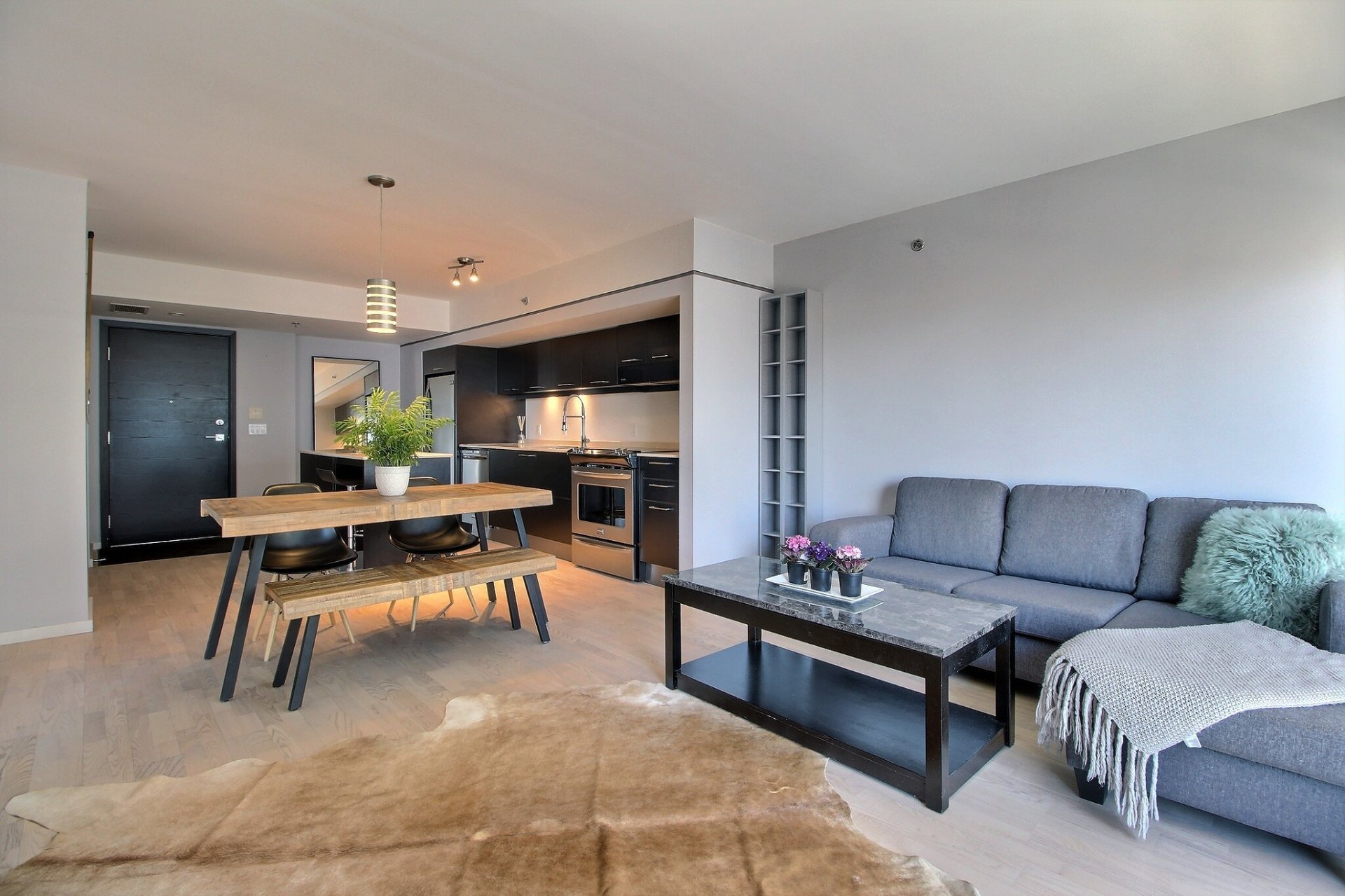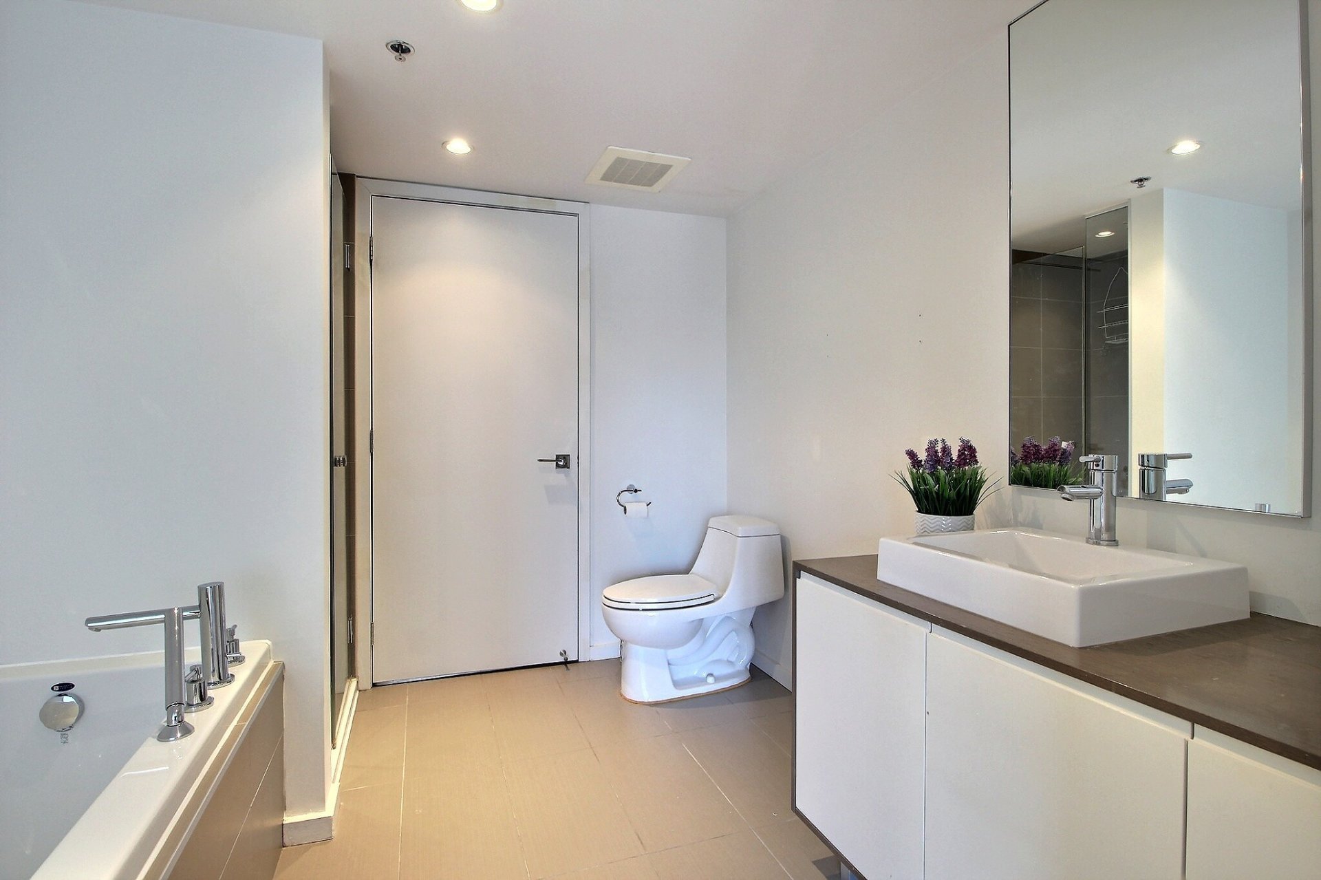 Impeccable condo on the 11th floor; ** Free Feb 1st 2026 occupancy ** A bedroom with adjoining bathroom -- walk-in closet; Living space without partitions -- dining room and kitchen; Appliances included as well as furniture; The common living areas include a library/living room giving access to the garden. A combined training room with swimming pool and sauna. 24 hour security guard in the lobby and common areas. Four elevators which are also monitored by cameras 24 hours a day. Exceptional location, in the heart of the Quartier des Spectacles.