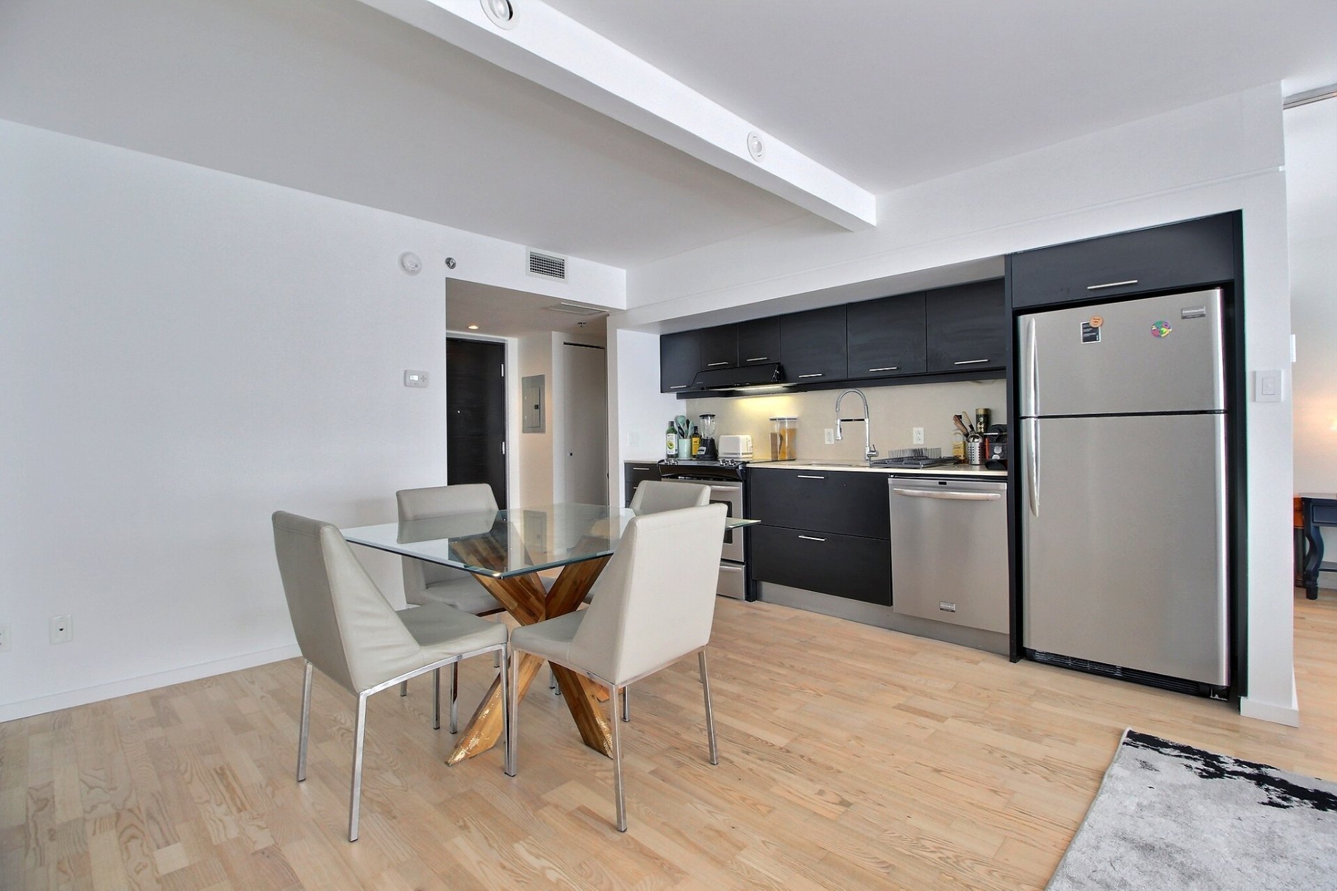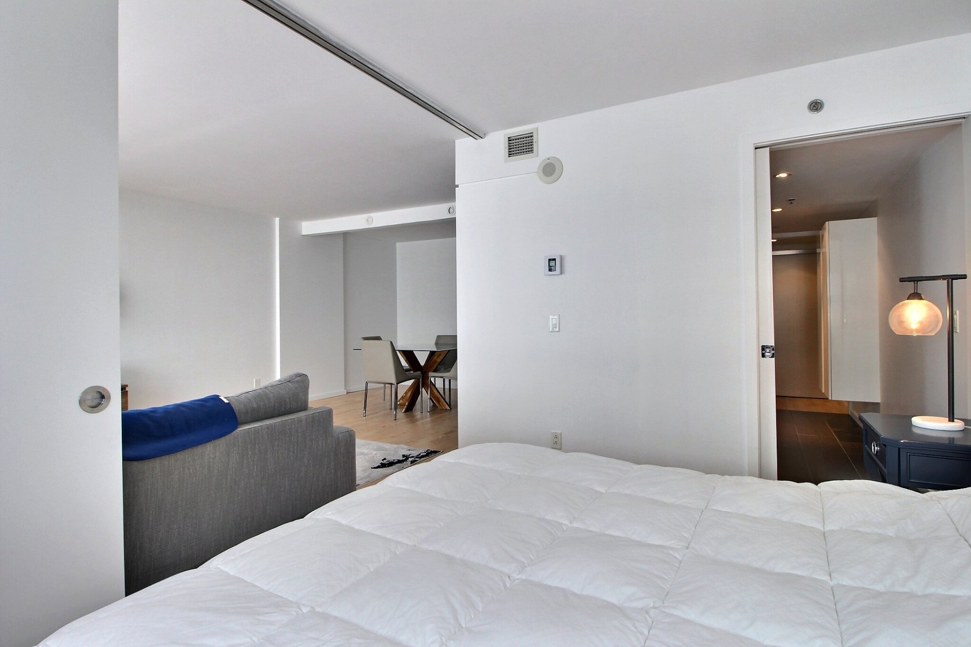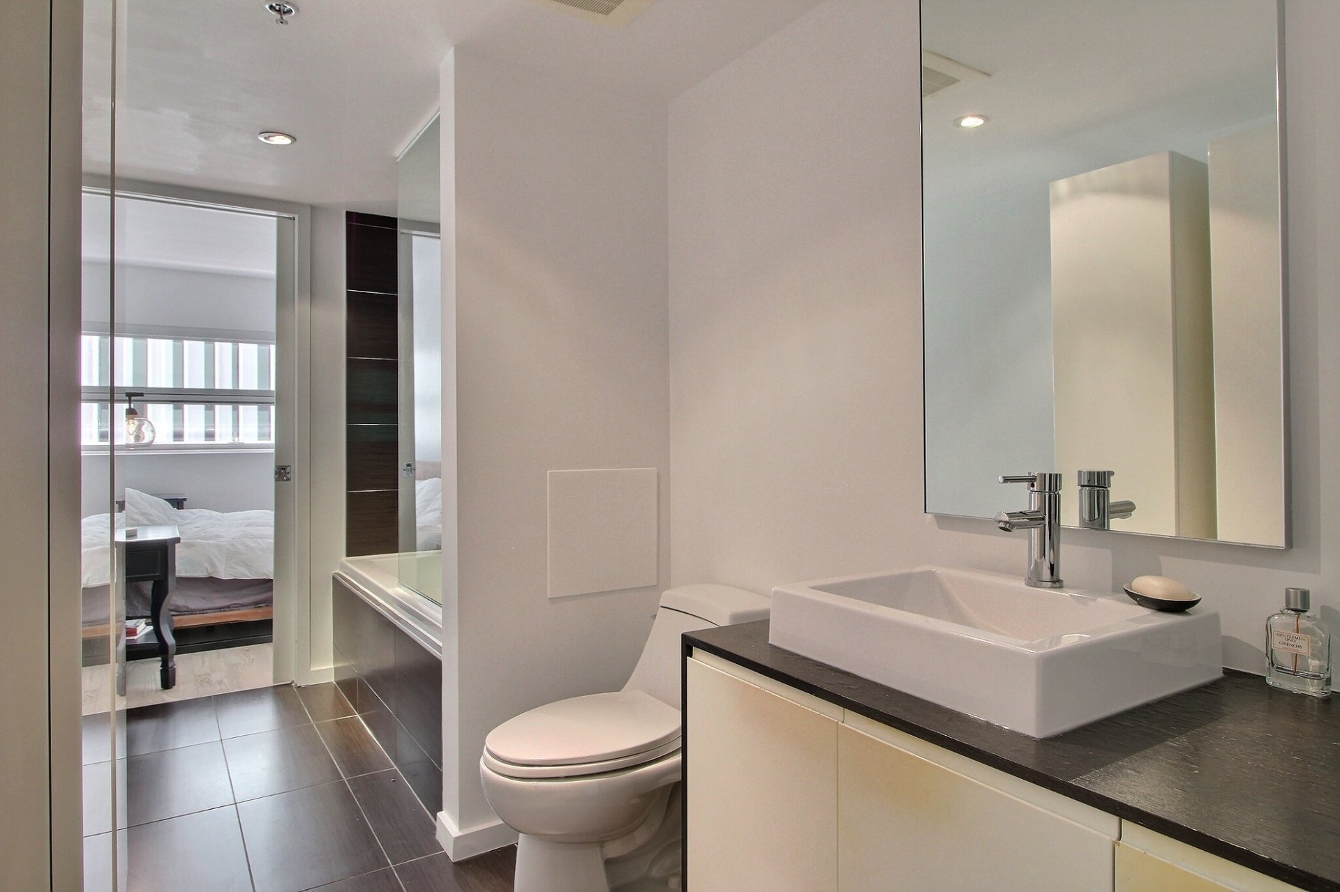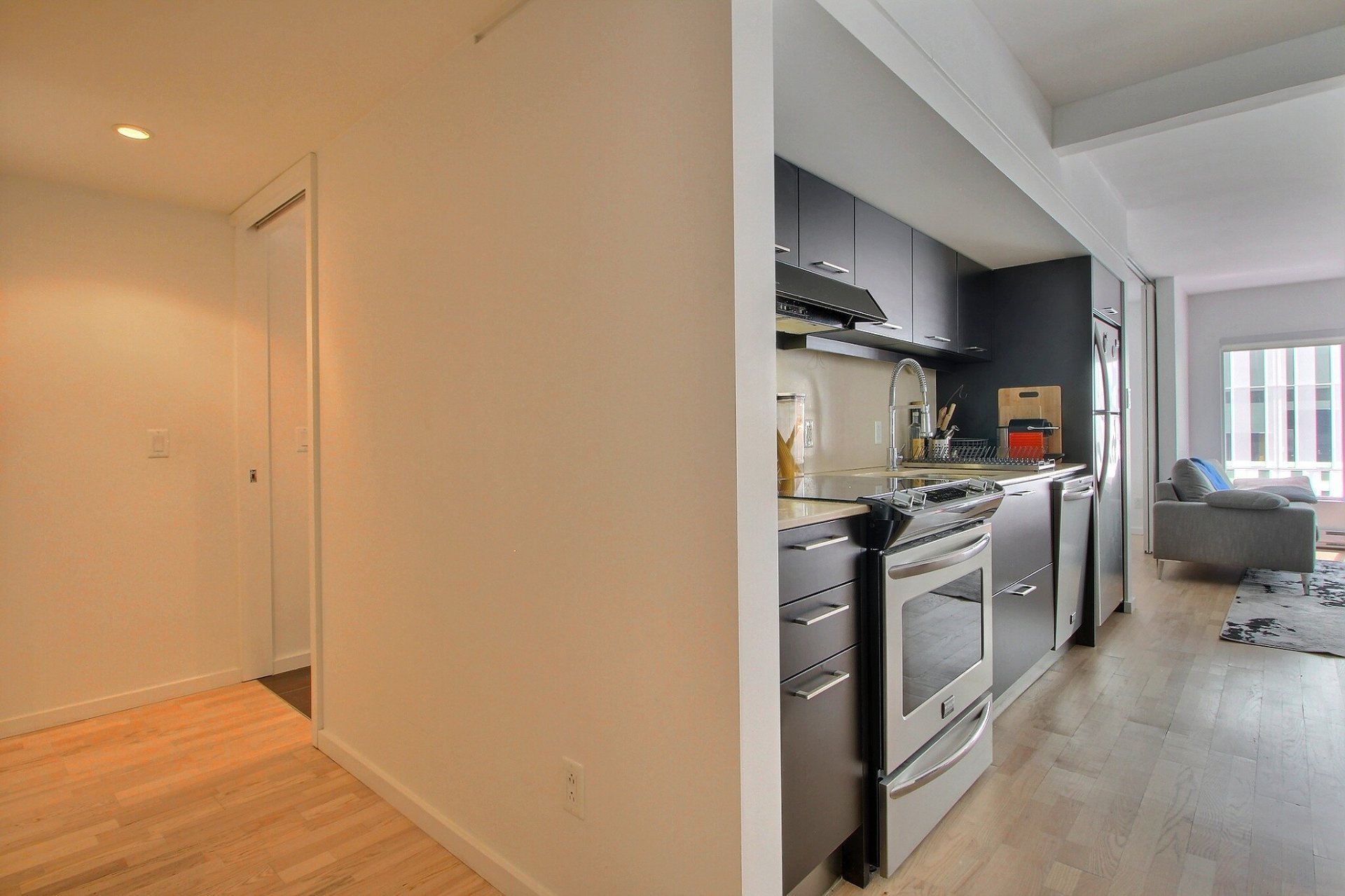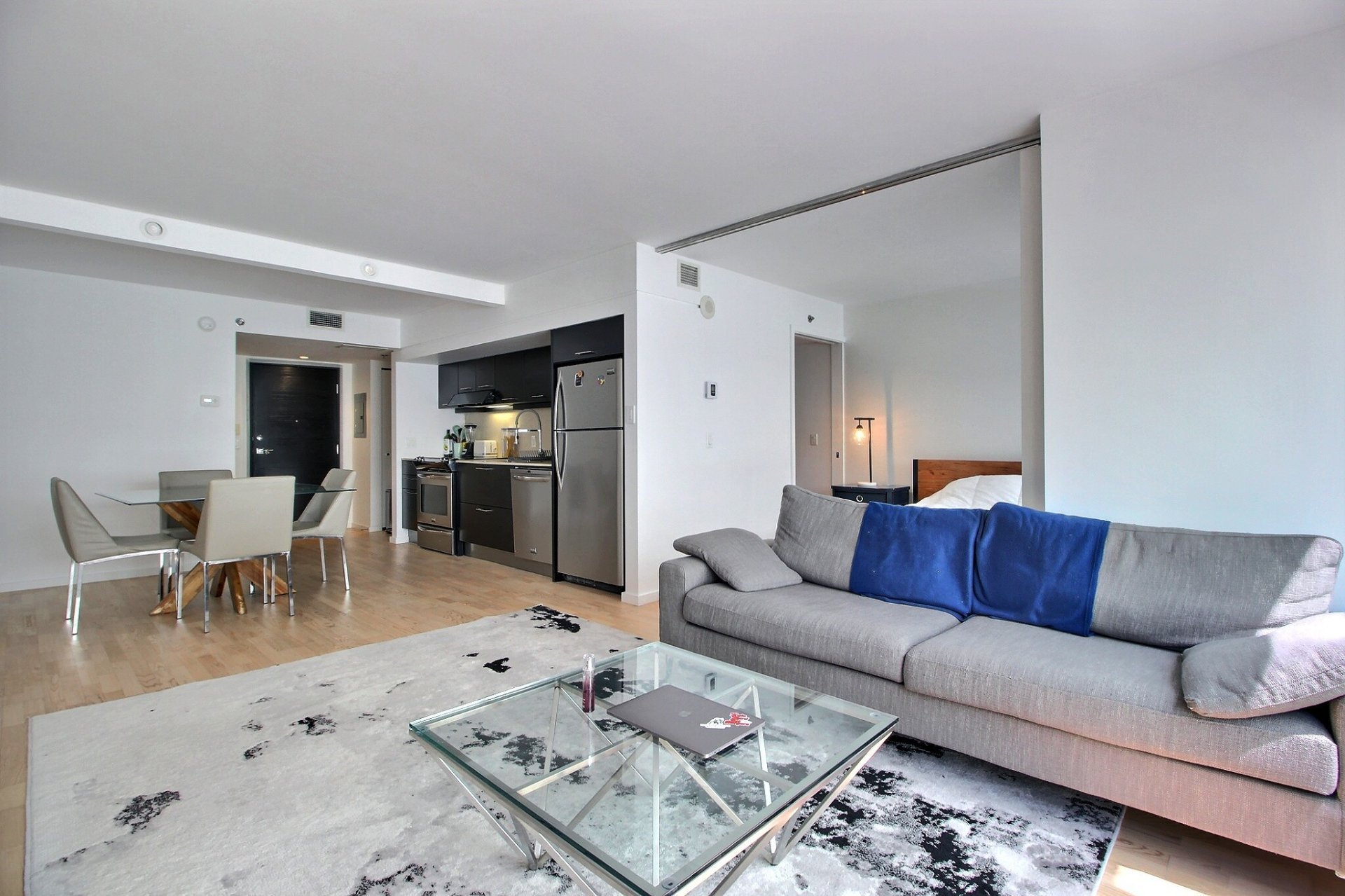 Au coeur du Quartier des Spectacles. L'unité comprend une chambre à coucher avec salle de bains attenante, une aire ouverte lumineuse (salon, cuisine et salle à manger), ainsi qu'un espace de rangement (#415). Tous les meubles sont inclus dans la vente. Profitez d'un accès direct à la station de métro Place-des-Arts, d'un service de sécurité 24/7, d'une piscine, d'un gym, d'un sauna, et d'un jardin-terrasse paisible. Une vie urbaine pratique et élégante, à distance de marche des meilleurs attraits culturels et commerciaux de Montréal. Occupation des lieux : 1er septembre. Stationnement inclus.