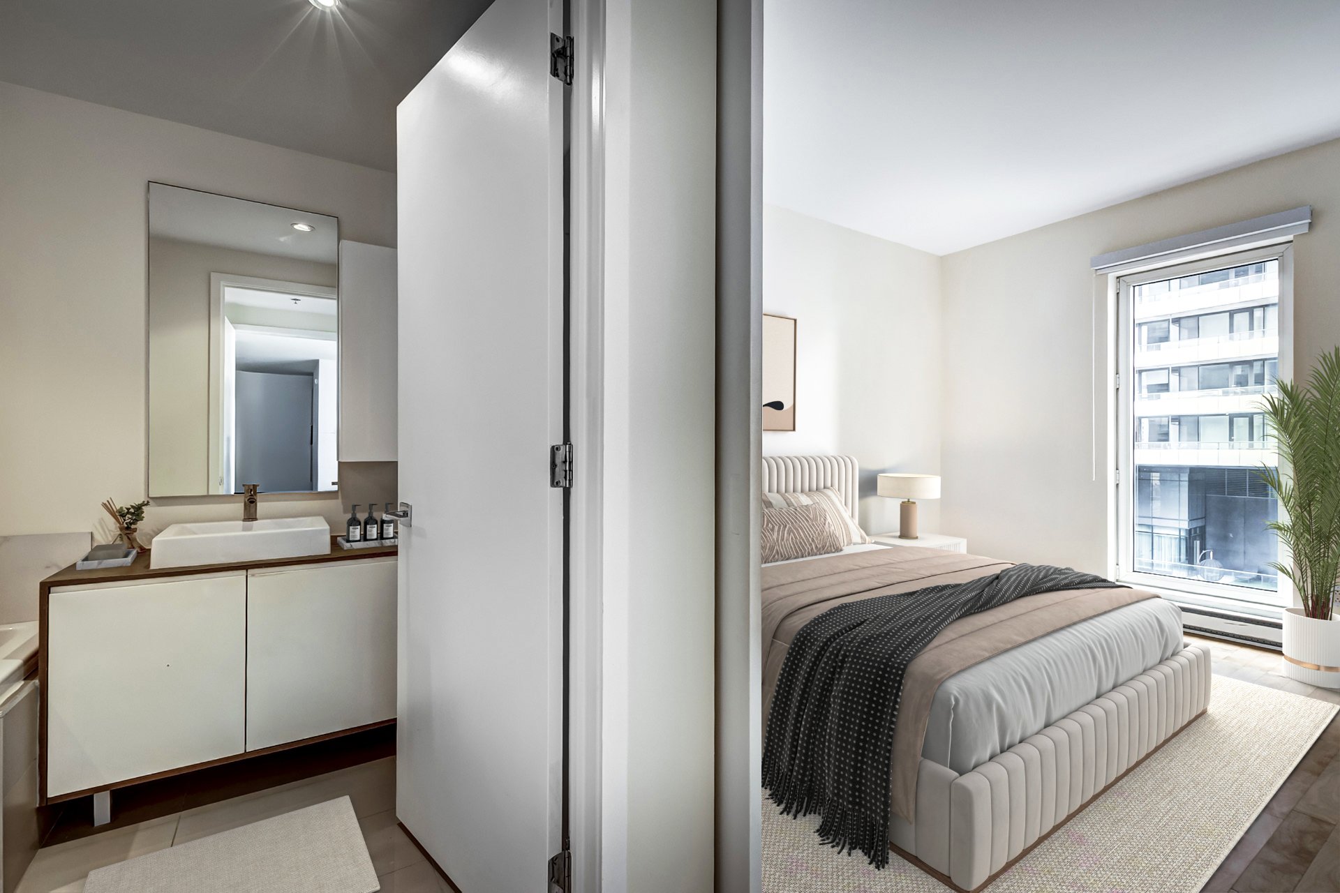 Découvrez la vie urbaine moderne dans ce condo contemporain situé au coeur du Quartier des Spectacles. Le salon spacieux et lumineux bénéficie d'un aménagement optimisé et de grandes fenêtres, la cuisine élégante est dotée de finitions haut de gamme et de nombreux rangements. Offrant deux chambres, une salle de bain attenante, ainsi qu'une salle d'eau. Une place de stationnement et un casier sont inclus. L'immeuble offre gym, sauna, piscine et magnifique jardin, avec un accès direct du métro Place-des-Arts! L'Université Concordia, l'Université McGill et le Vieux-Port sont tous accessibles à pied. Occupation immédiate et facile à visiter.