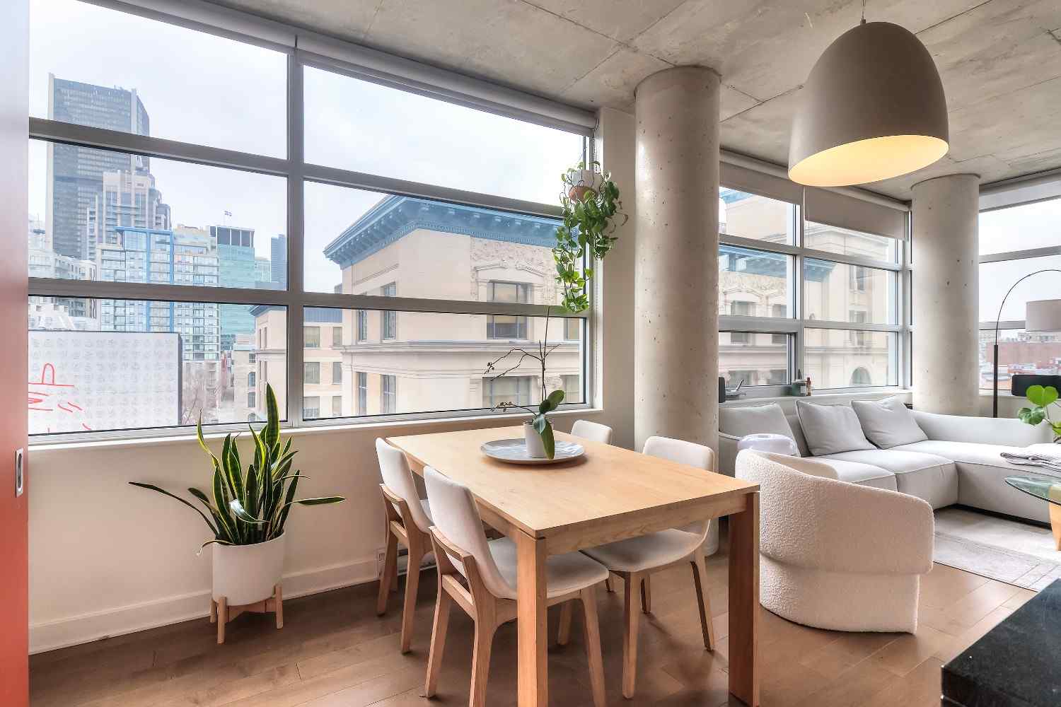 Bienvenue au Mcgill Lofts! À propos du condo : -Unité de coin entièrement rénovée -Grandes fenêtres offrant une abondance de lumière naturelle tout au long de la journée, avec une vue imprenable sur la rue McGill et la ville -Matériaux de haute qualité utilisés partout dans l'unité -Planchers en bois d'ingénierie partout -Cuisine bien pensée sur mesure avec comptoirs en quartz et grand îlot -- parfait pour recevoir -Deux salles de bain entièrement rénovées -La chambre principale comprend un grand garde-robe et une salle de bain attenante -La deuxième chambre offre un grand garde-robe et un lit escamotable inclus (*À noter : il n'y a pas de fenêtre, juste une panneau de verre pour laisser entrer la lumière.) -Stationnement intérieur et espace de rangement inclus À propos de l'immeuble : -Construction 2006 -Salle d'entraînement -Cour intérieure À propos de l'emplacement : -Situé au coeur de la Cité Multimédia -À deux pas du Vieux-Port, des pistes cyclables et des parcs -À proximité des meilleurs restaurants, boutiques et plus encore -À quelques pas des transports en commun : REM, métro, autobus et train Autres déclarations et conditions : -Un minimum de 24h de préavis est requis pour toute visite -Toute promesse d'achat doit être accompagnée d'une préapprobation bancaire valide et de la déclaration du vendeur dûment signée À voir absolument!