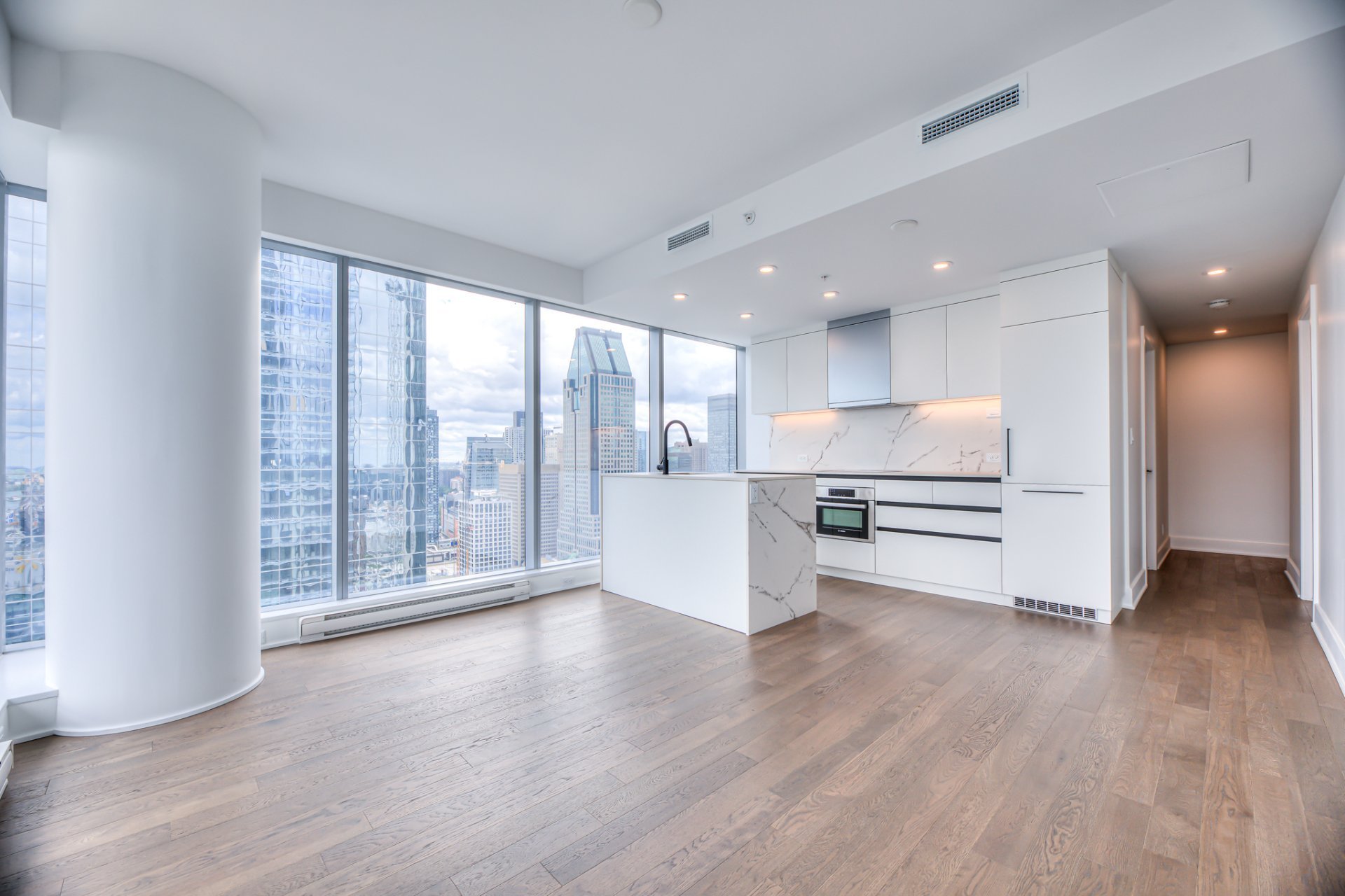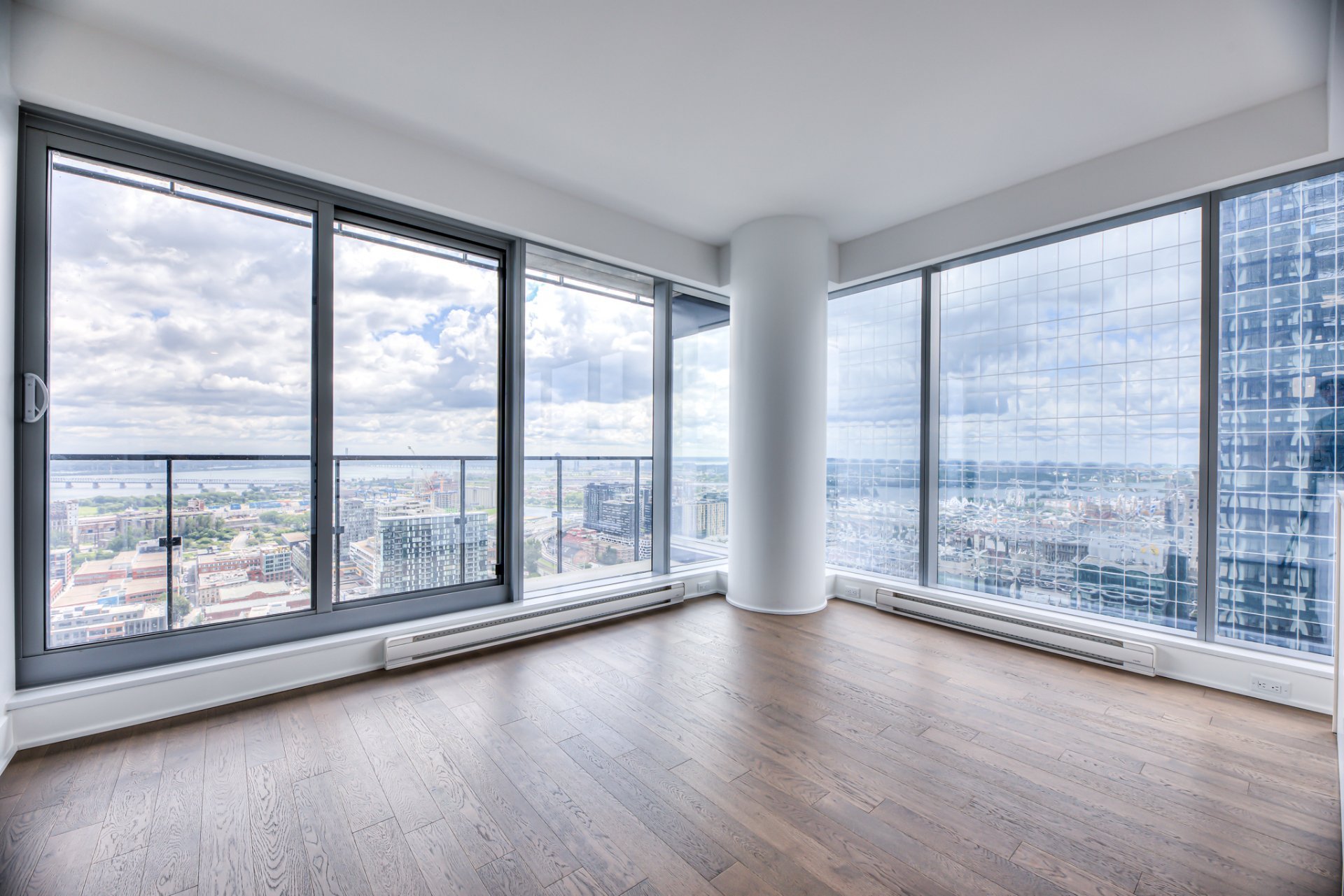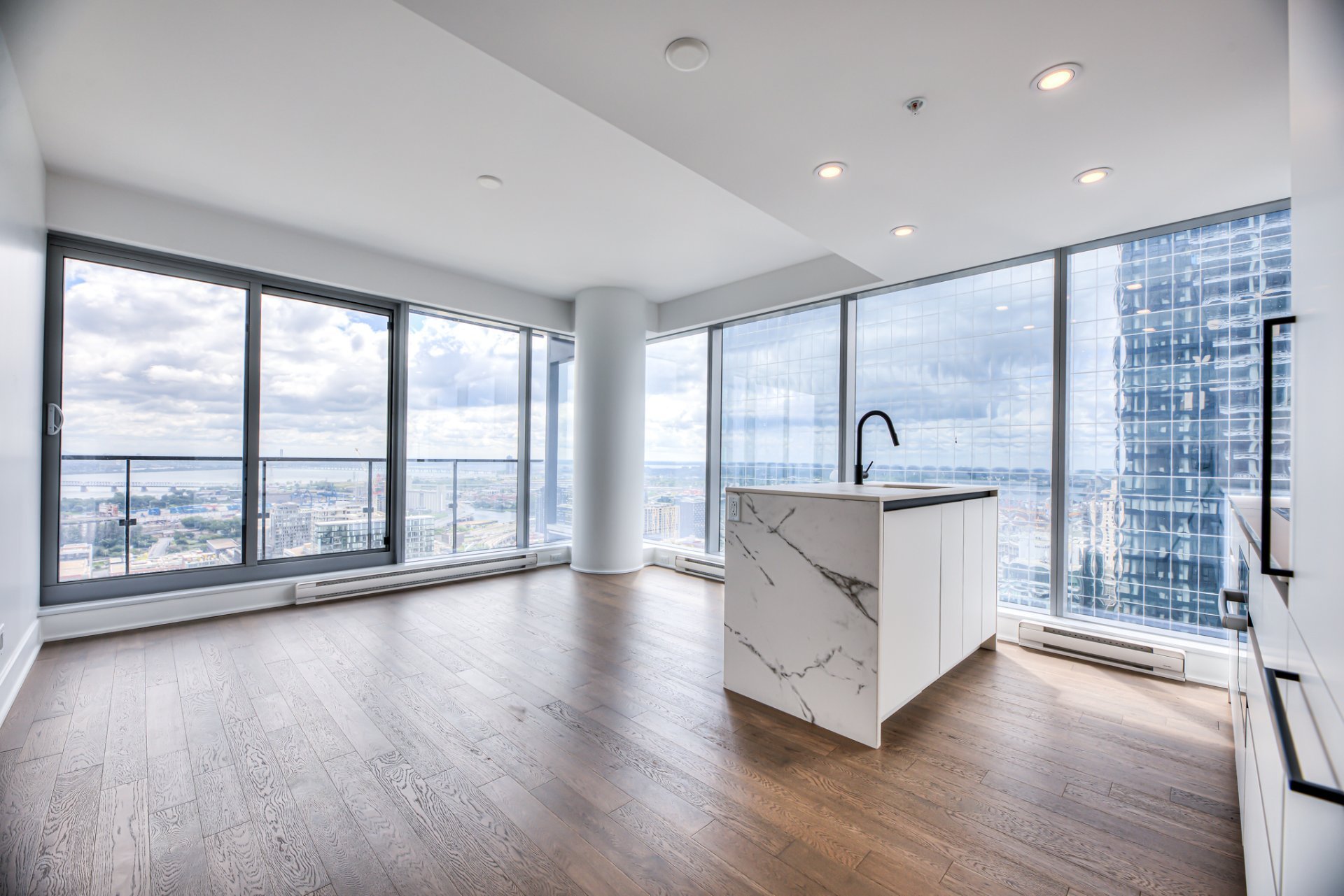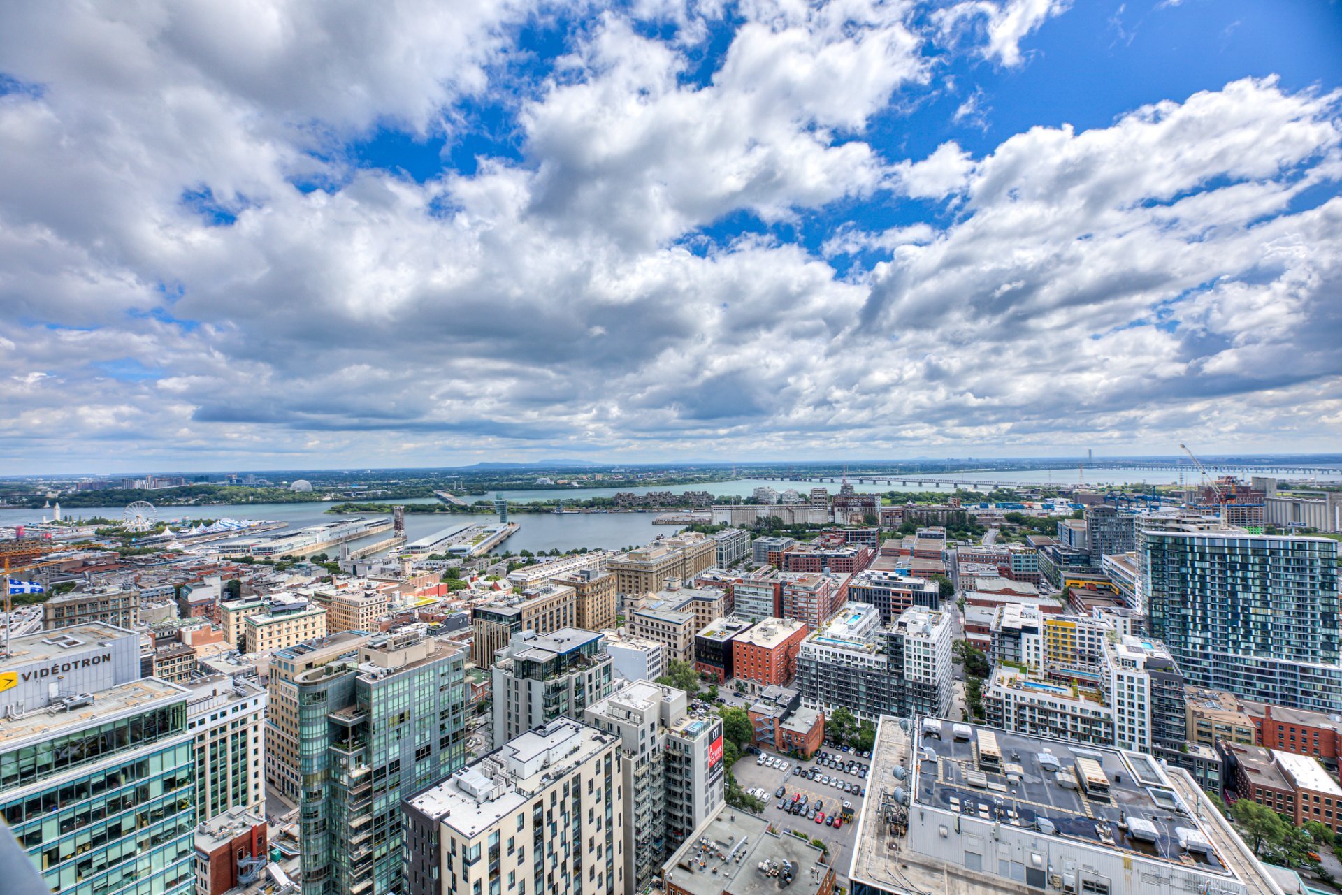 ** VICTORIA SUR LE PARC ** Luxurious 2-bedroom, 2-bathroom condo located on the 34th floor. This modern, sun-filled unit offers a coveted southwest orientation with spectacular views of Old Montreal, the river, and downtown. You'll be charmed by its floor-to-ceiling windows, high-end finishes, and open-concept living space. The spacious primary bedroom features an ensuite bathroom and a walk-in closet. The building offers over 10,000 sq. ft. of upscale amenities, including indoor and outdoor pools, a fully equipped gym, yoga room, elegant urban lounge, and 24/7 security. A chic, prime location not to be missed! Available October 1st 2025
